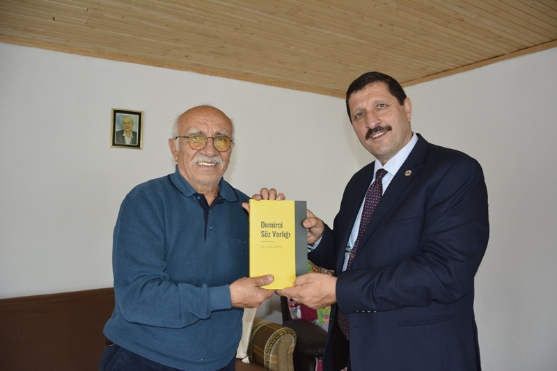 Başkan Selçuk ziyaretlerinde emekli öğretmenlerin öğretmenler gününü kutlarken, belediyenin kültür hizmeti olan " Demirci Söz Varlığı " kitabını da hediye etti.