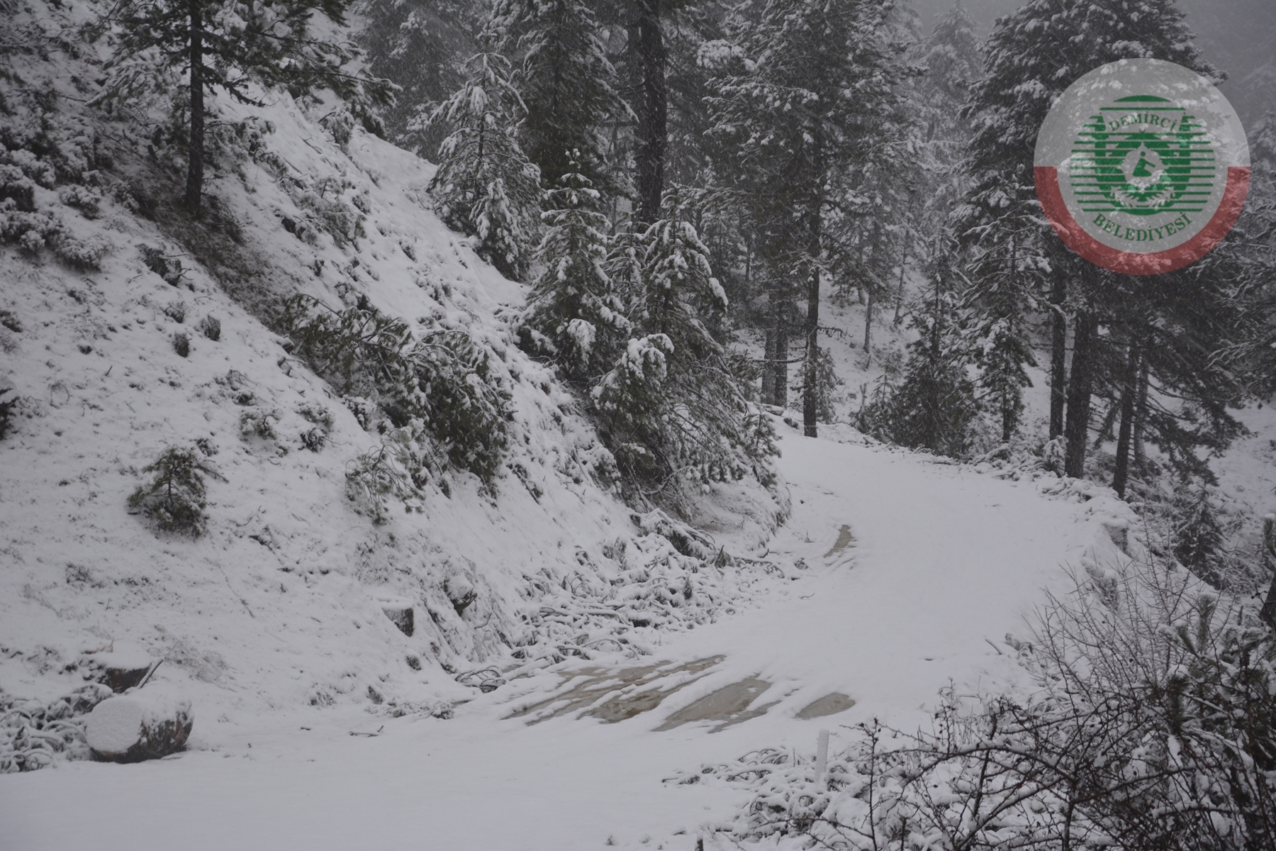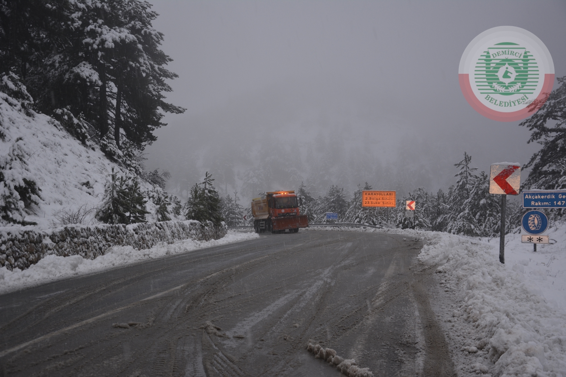 Yetkililer kar yağışının etkili olduğu Demirci - Simav karayolunda akşam saatlerinde soğuk hava ve yağış sebebiyle buzlanmaya karşı sürücüleri uyardı