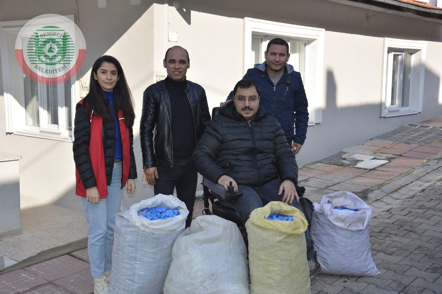 Demirci Belediyesi Kent Konseyi Engelliler Meclisinde de yer alan Said Arslan, içerisinde 50 Bin mavi kapağın bulunduğu 5 çuvalı Gençlik ve Spor İlçe Müdürlüğü yetkililerine teslim etti.