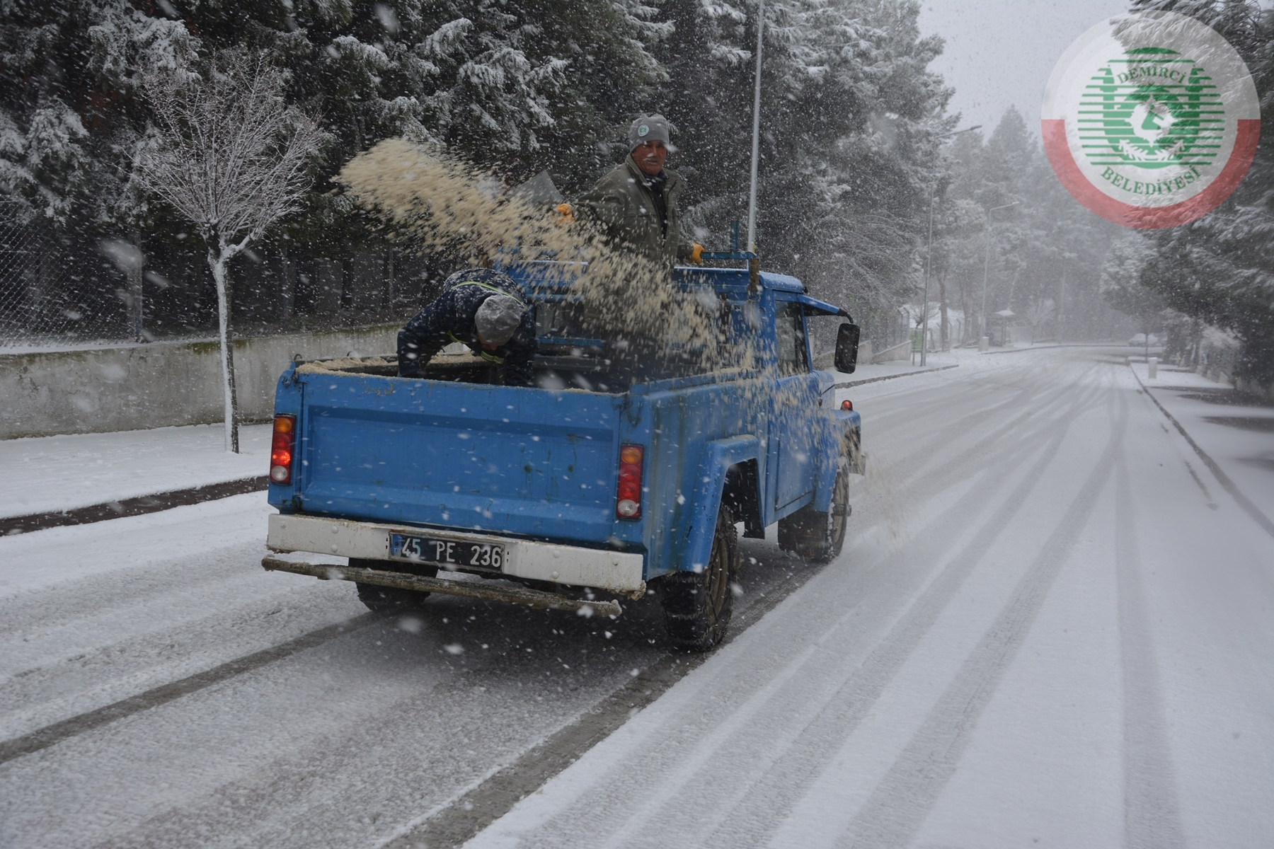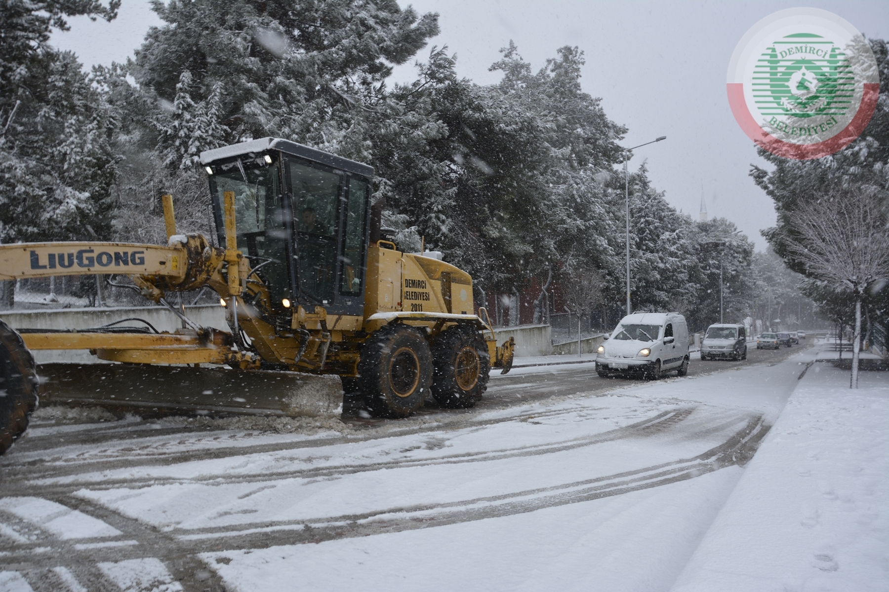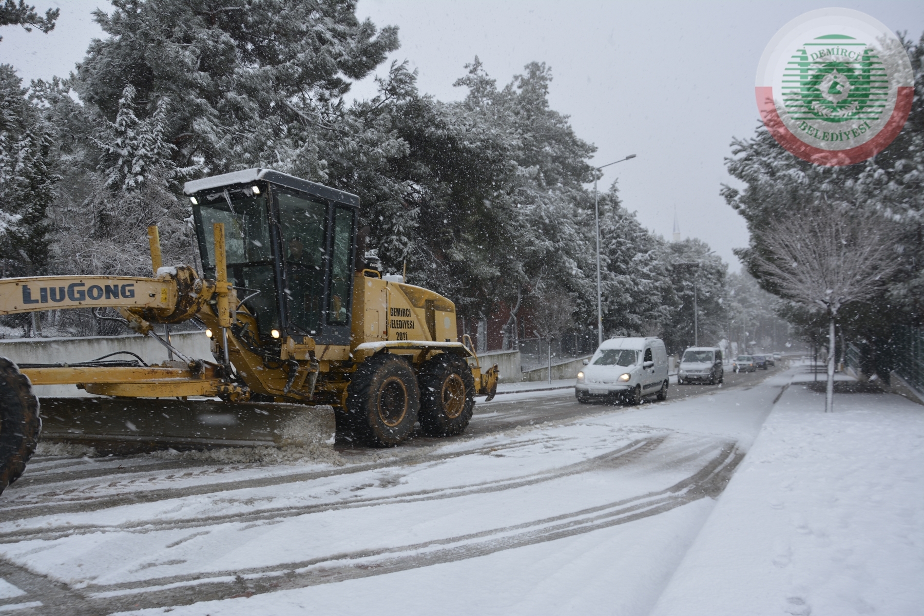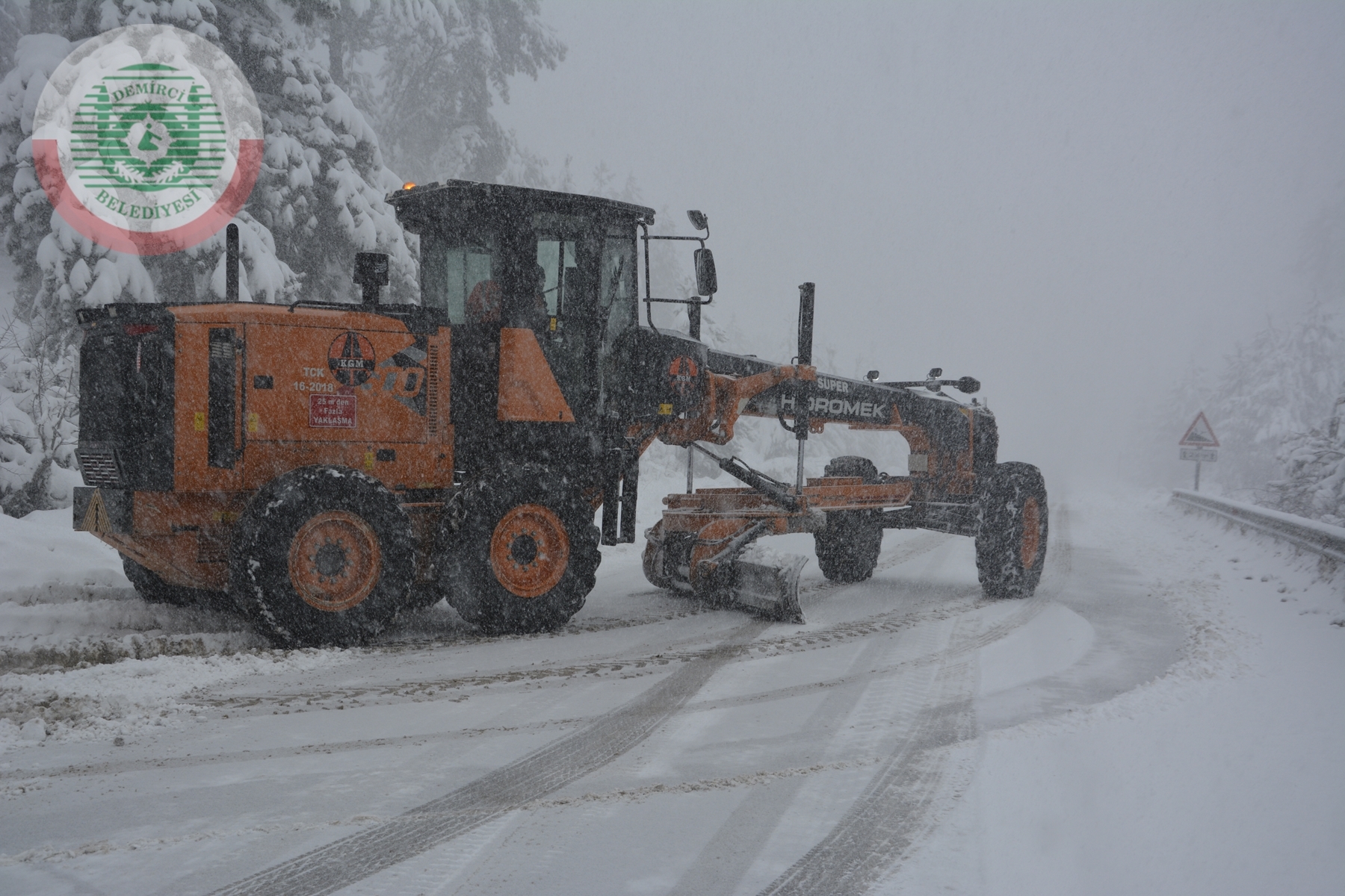 Demirci Belediyesi ilçe merkezinde 3 kar temizleme aracı ve 3 tuzlama aracı ile karla mücadeleyi sürdürürken, karayolları ekipleride 3 kar küreme aracı ile Demirci - Simav karayolu 1470 rakımlı Akçakertik mevkiinde çalışma yapıyor.