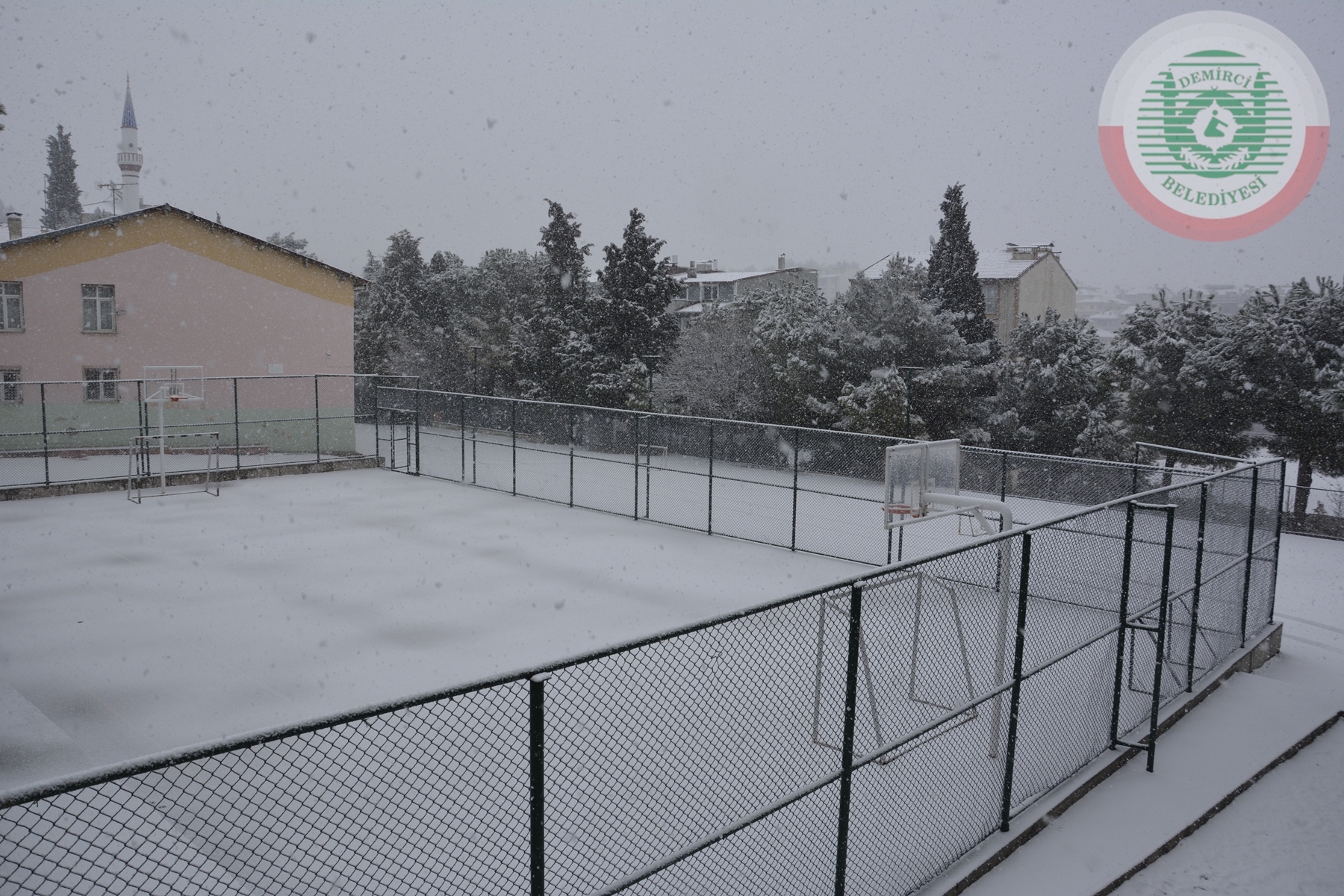 Demirci ilçe merkezinde sabah saatlerinde sağanak yağmurun ardından başlayan kar yağışı ilçe merkezi ve yüksek kesimleri beyaza bürüdü.