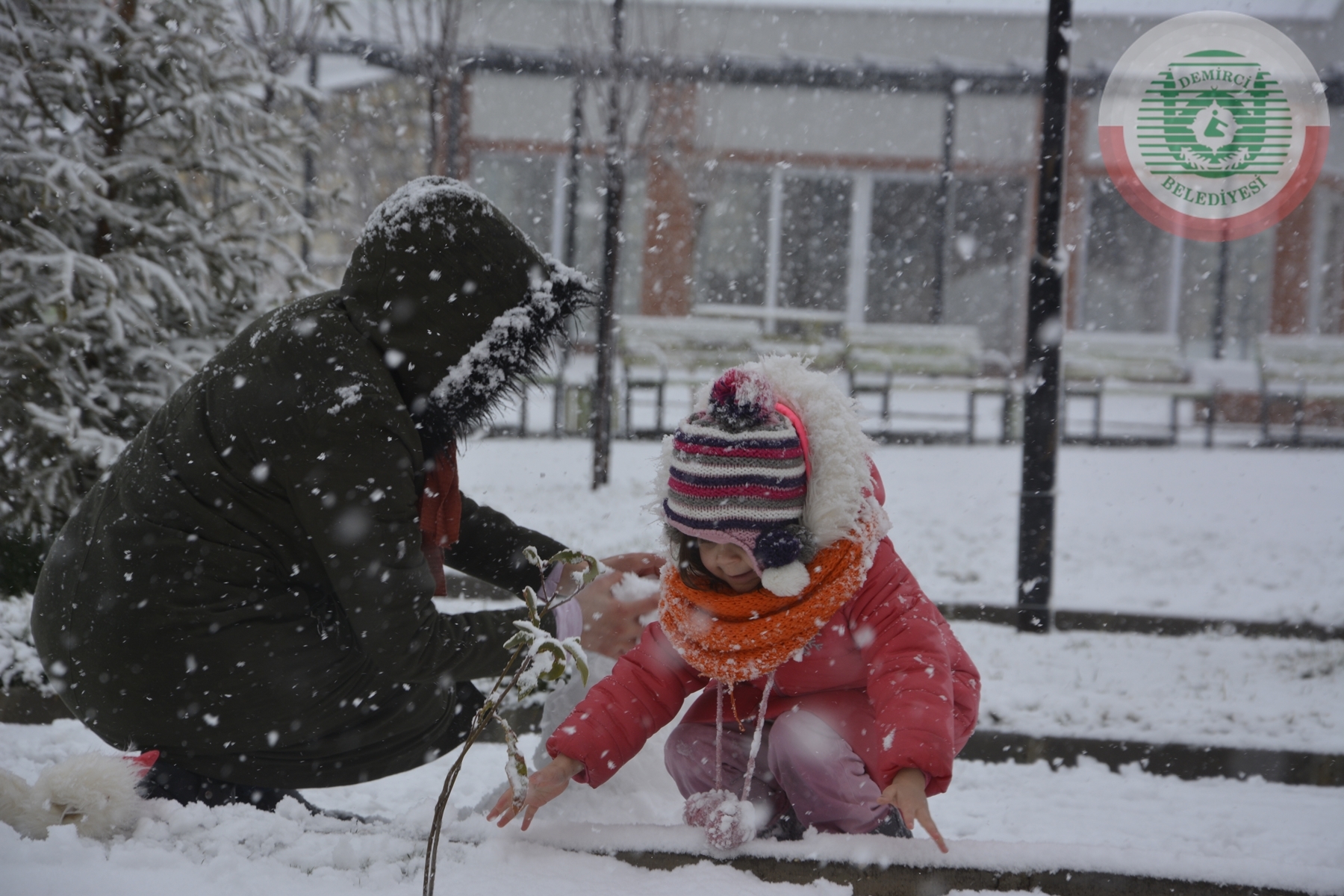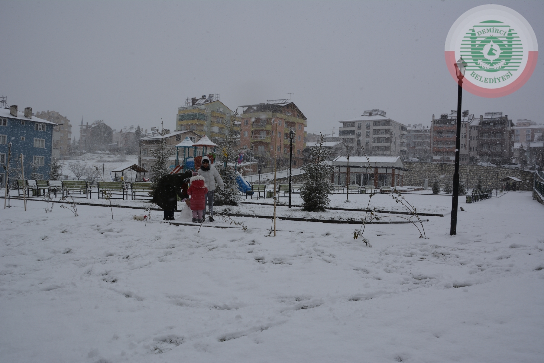 Çocuklarda aileleri ile birlikte kartopu oynadı ve kardan adam yaptılar.