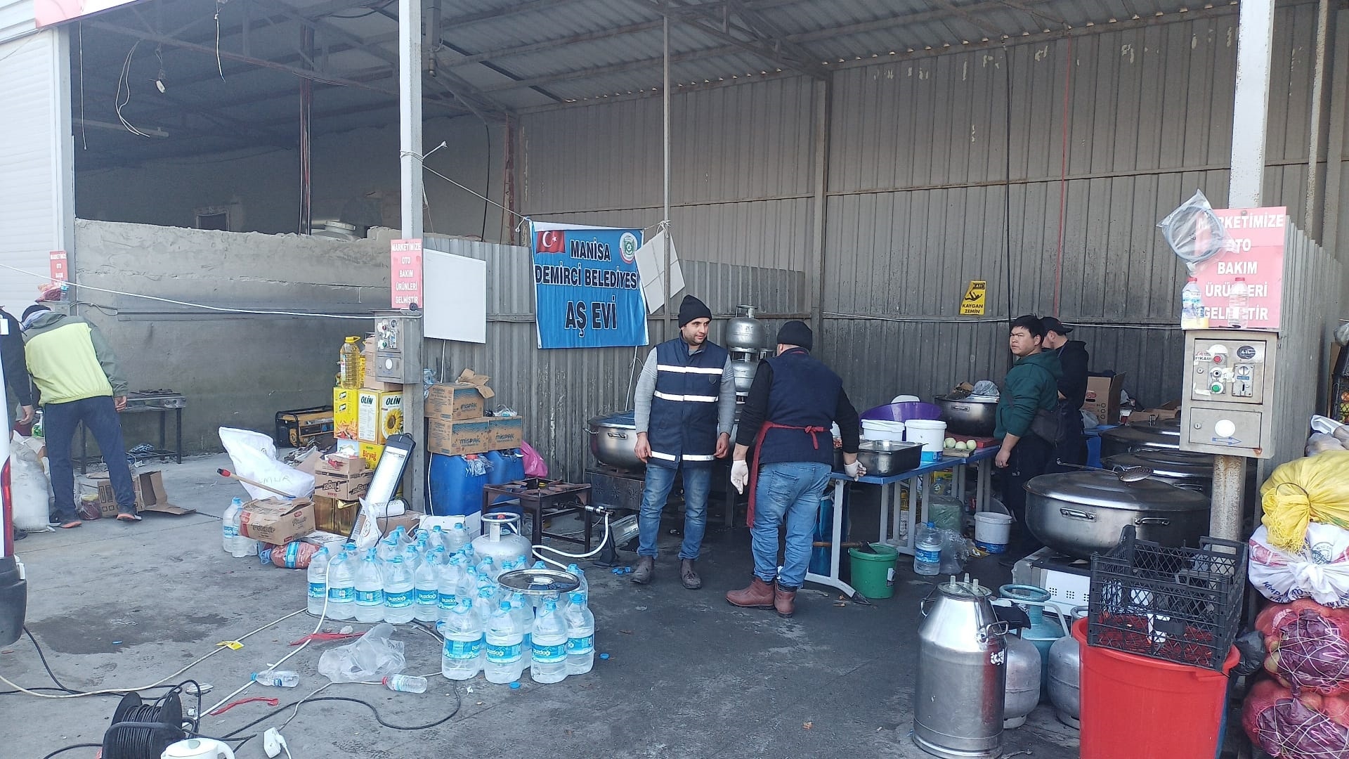 Demirci Belediyesi ayrıca deprem bölgesine Demirci İlçe Milli Eğitim Müdürlüğü ve Demirci Sabancı Öğretmenevi işbirliği ile Aşevi kurarak yemek hizmetine başladı.