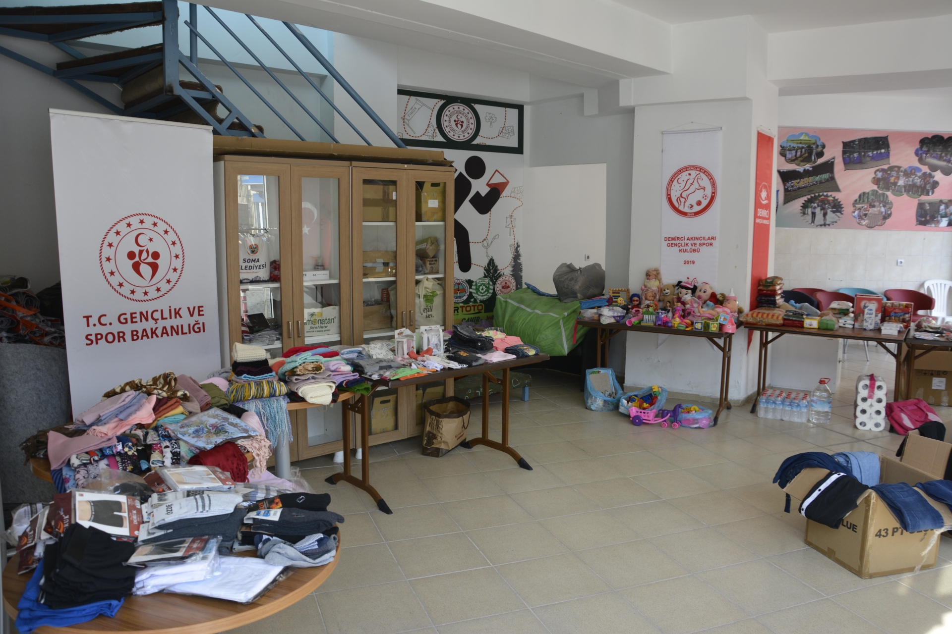 Demirci ilçesinde Gençlik ve Spor İlçe Müdürlüğünce gençlik merkezinde ilçeye gelen depremzedeler için sosyal market oluşturuldu.