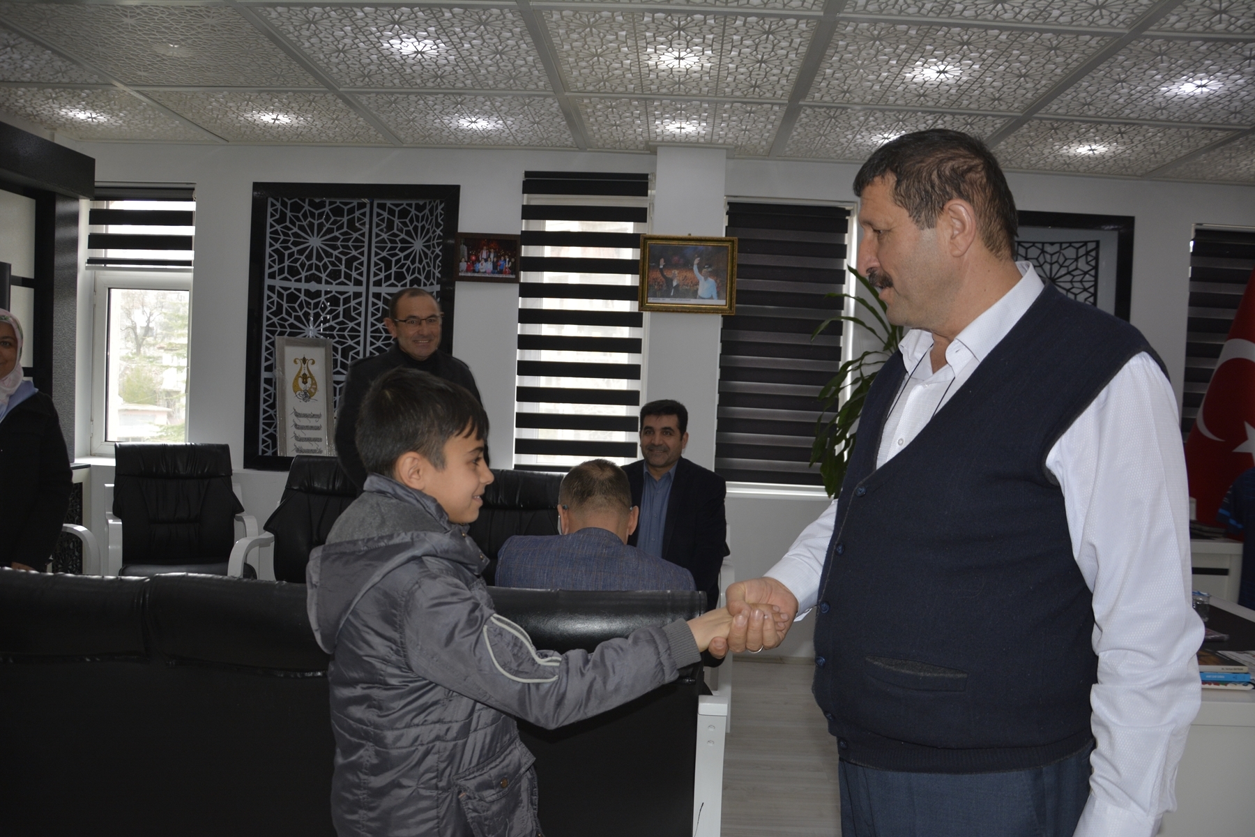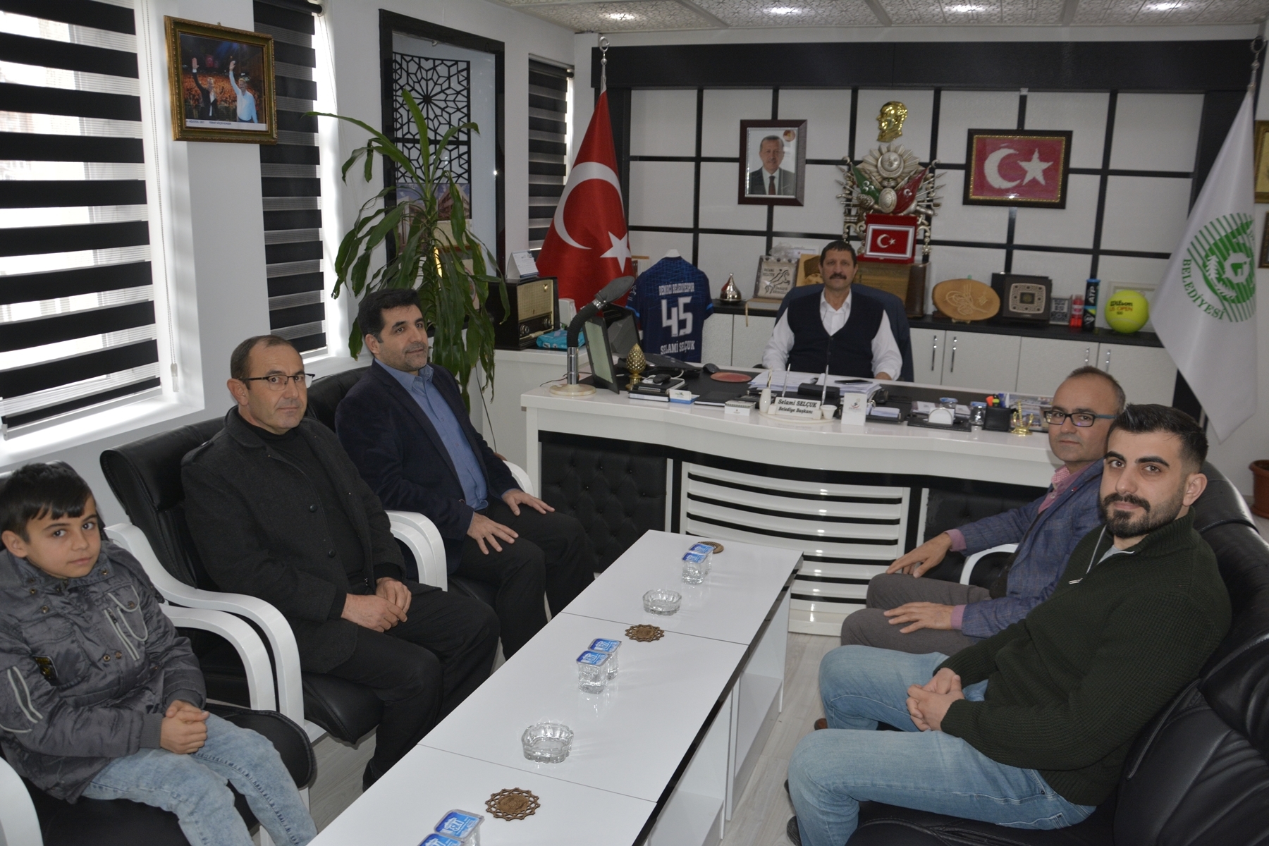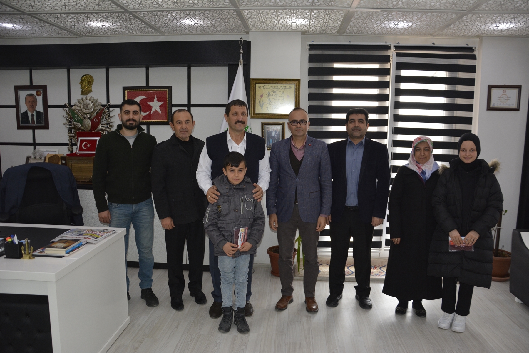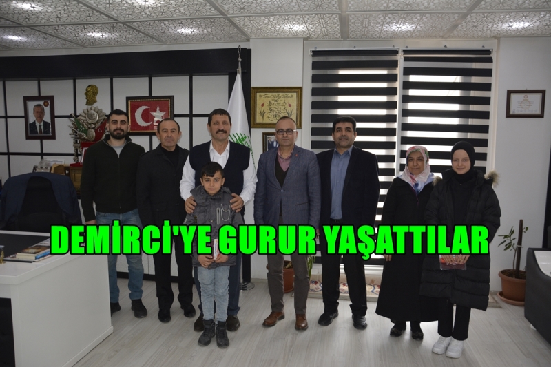 Demirci Belediye Başkanı Selami Selçuk'ta yarışmalarda birinci olan öğrencilerini, öğretmenlerini ve İlçe Milli Eğitim Müdürü Yüksel Kocabaş'ı makamında misafir etti.