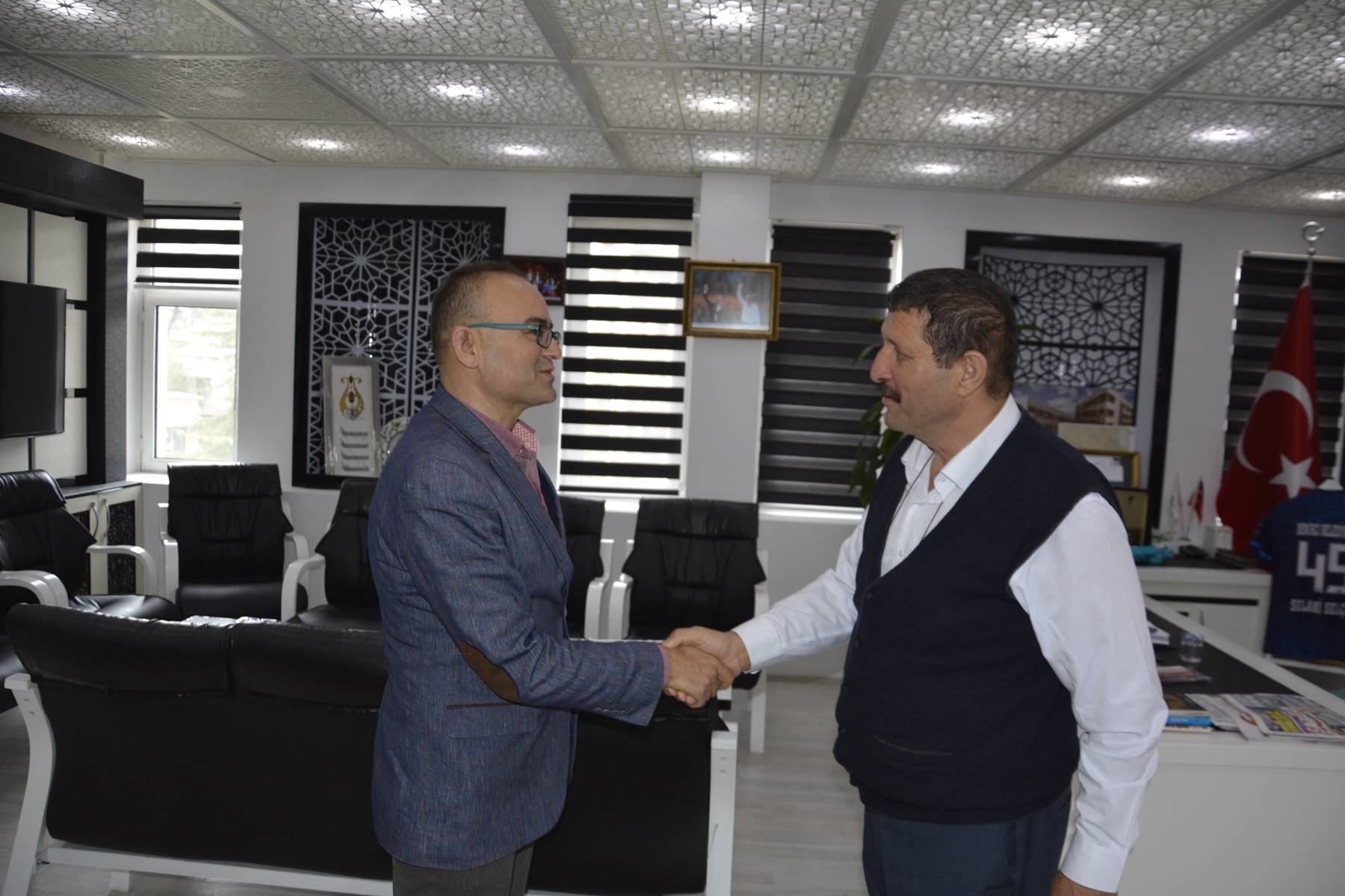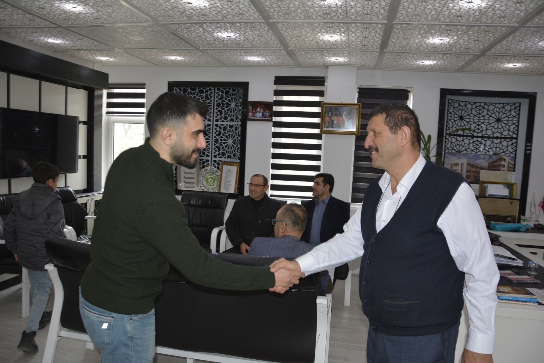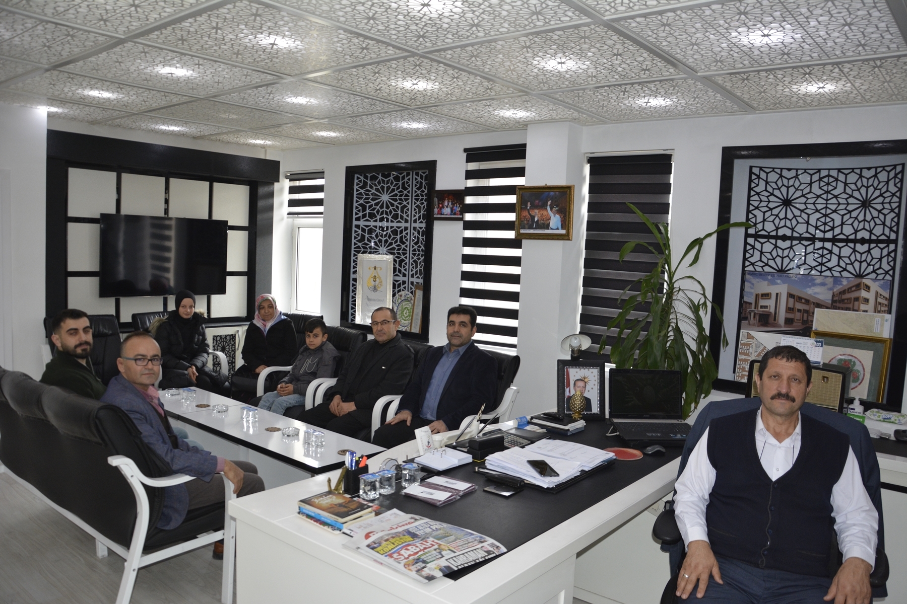 Demirci Belediye Başkanı Selami Selçuk'ta yarışmalarda birinci olan öğrencilerini, öğretmenlerini ve İlçe Milli Eğitim Müdürü Yüksel Kocabaş'ı makamında misafir etti.