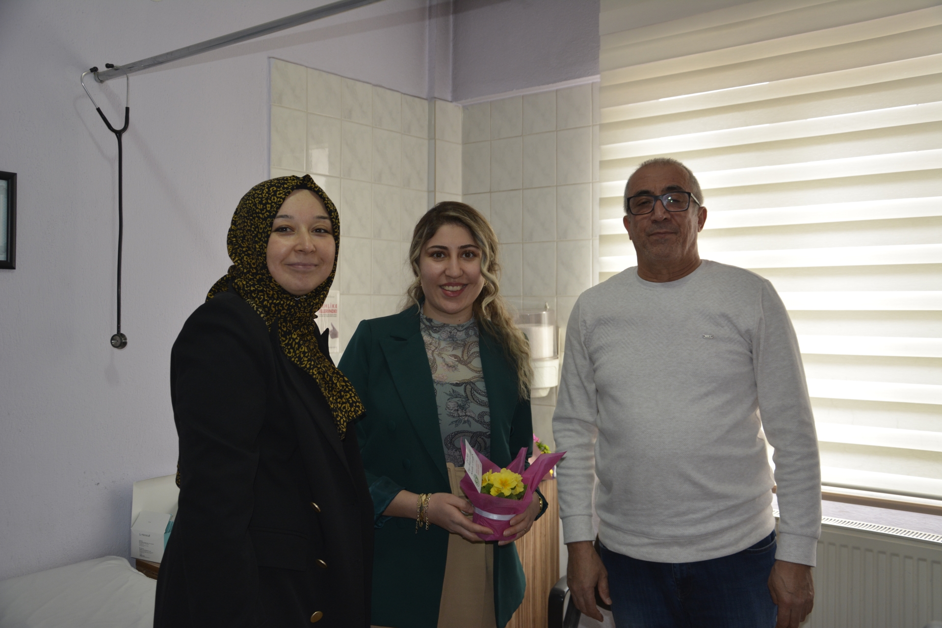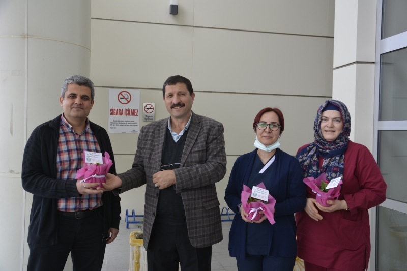 Belediye Başkanı Selami Selçuk daha sonra İlçe Devlet Hastanesine geçerek buradaki doktor ve sağlık çalışanlarında günlerini kutladı.