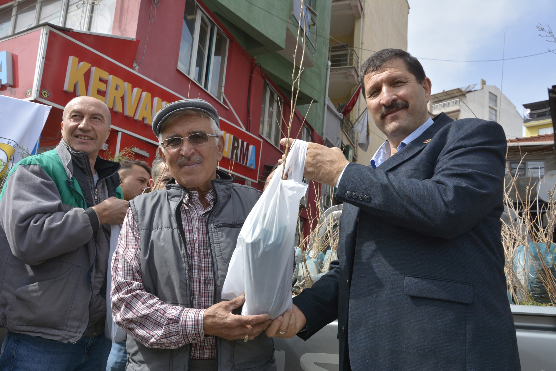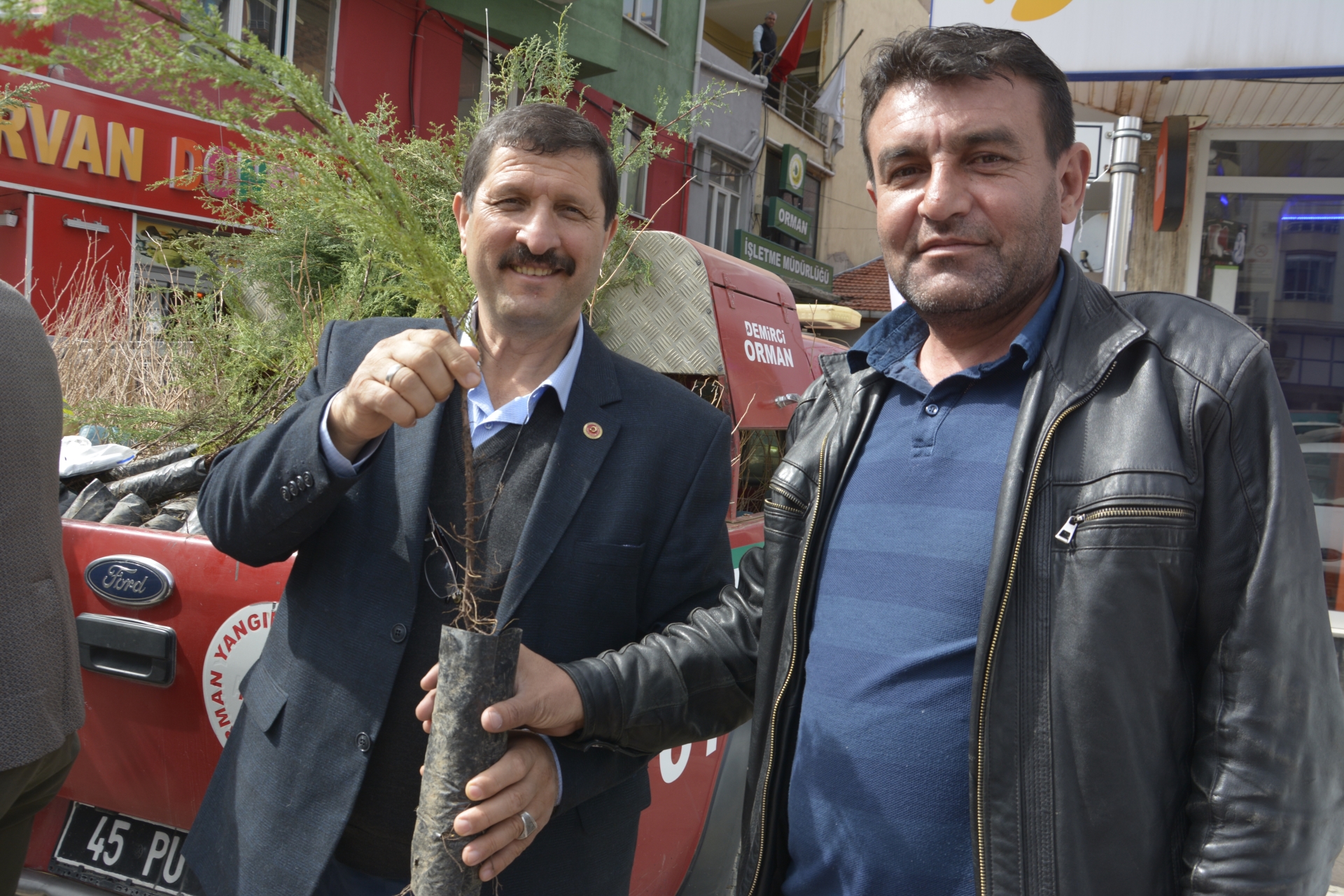 Çereşe meydanında Demirci Orman İşletme Müdürlüğü ekiplerince temin edilen fidanlar Demirci Kaymakamı Adem Kaya, Belediye Başkanı Selami Selçuk, AK Parti İlçe Başkanı Mehmet Acar ve İlçe Orman İşletme Müdürü Tayfun Doğan tarafından vatandaşlara dağıtıldı.