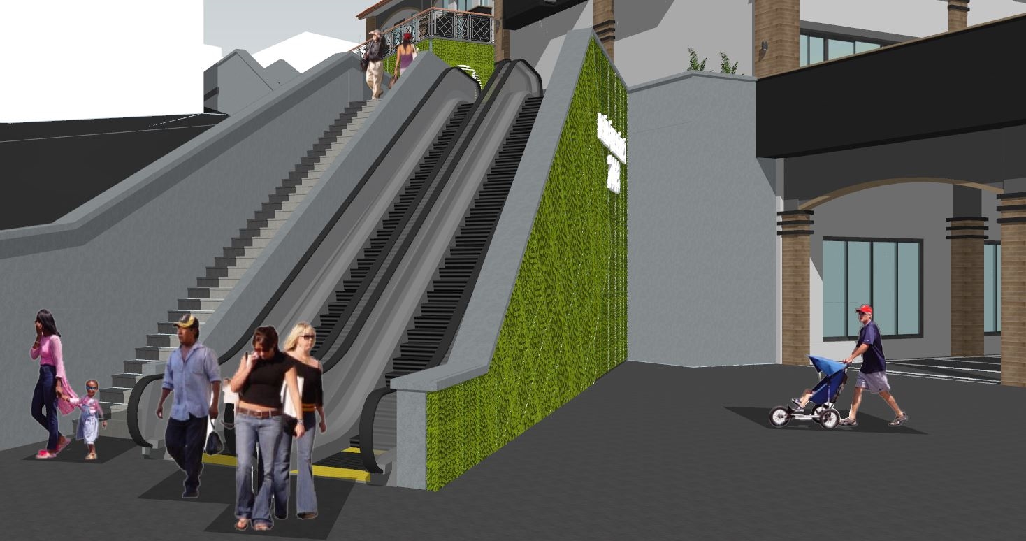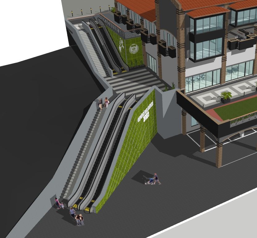 Kent merkezi yanından pazaryeri alanına iniş için 2 ayrı bölümlü toplamda 27 metre uzunlunda, gençlik merkezi yanına da 21 metre uzunluğunda iniş ve çıkışı olan yürüyen merdiven yapılacak.