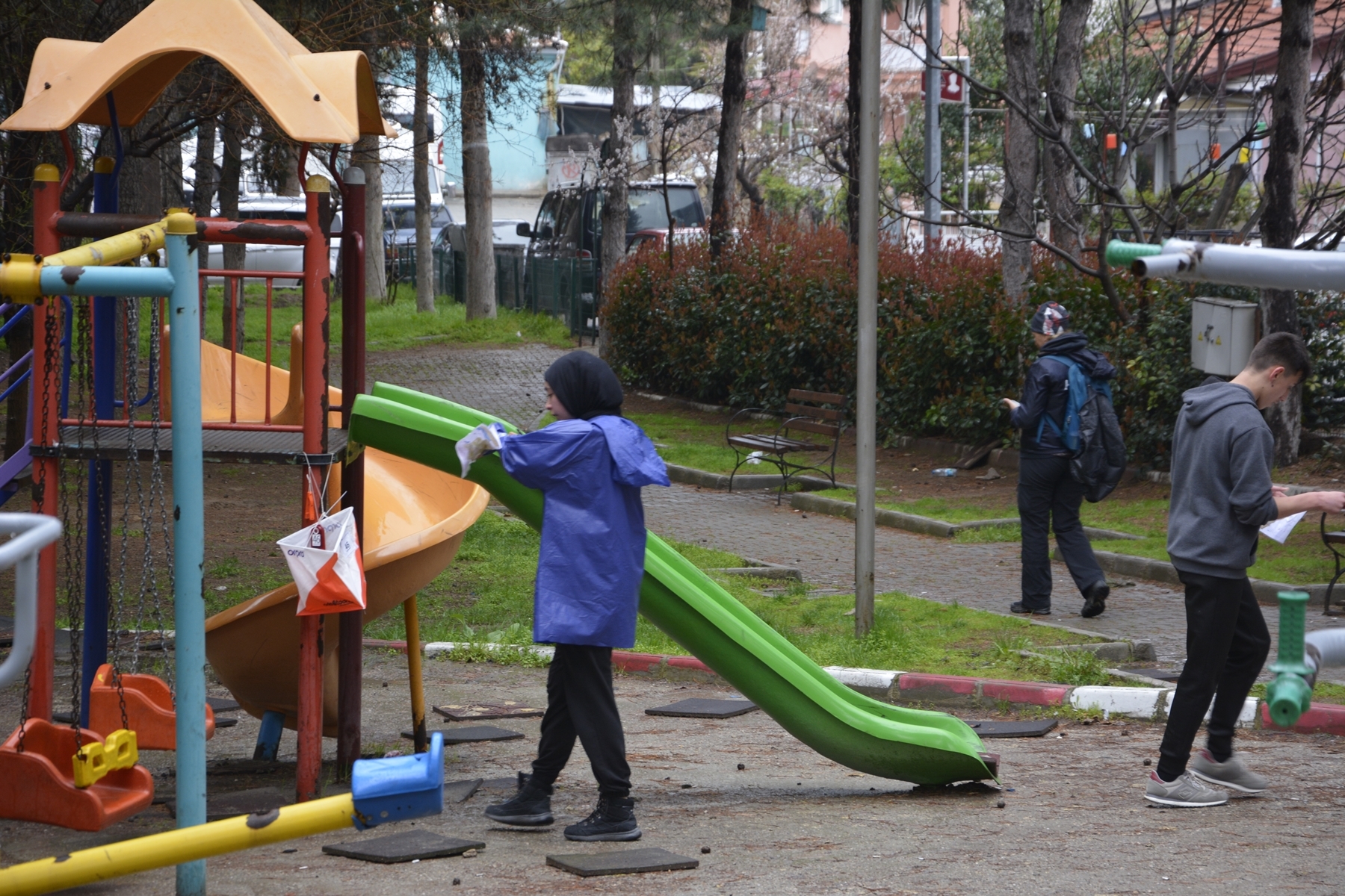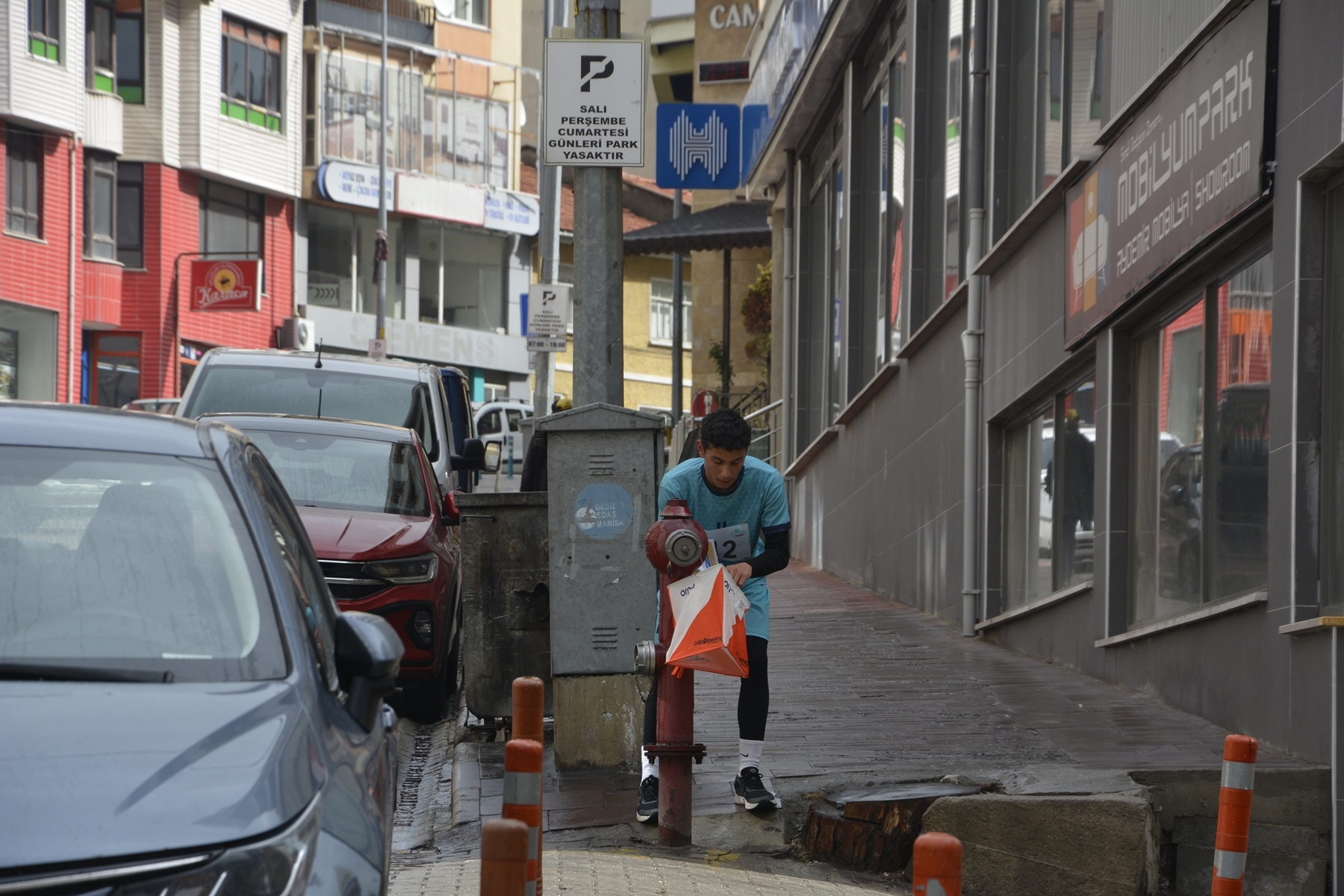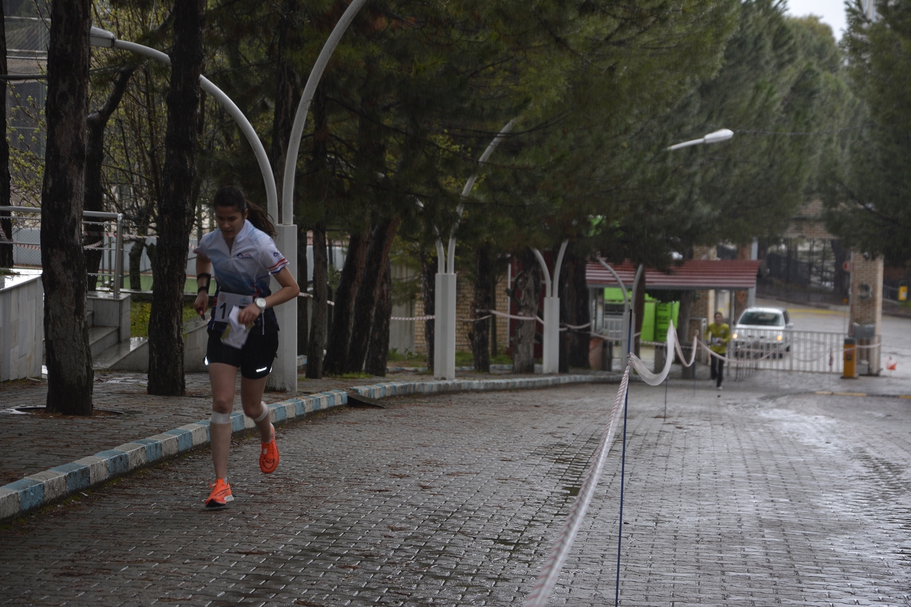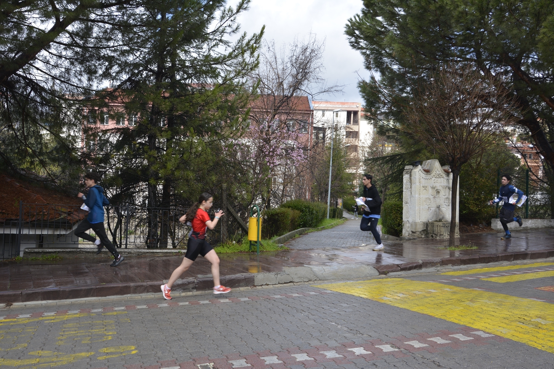 Sporcular ilçe merkezinde farklı noktalardaki hedefleri tamamlayabilmek için sağanak yağmur altında yarışları tamamladılar.