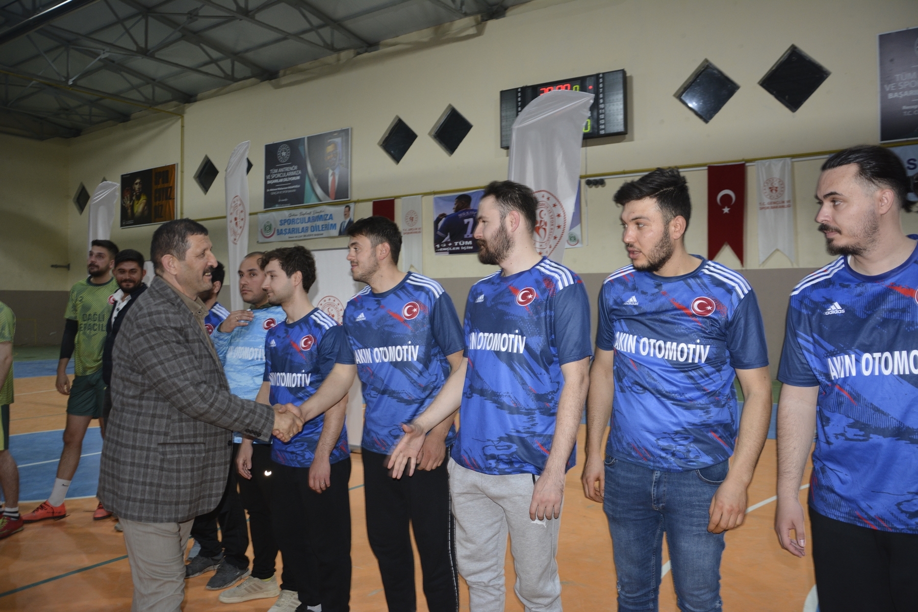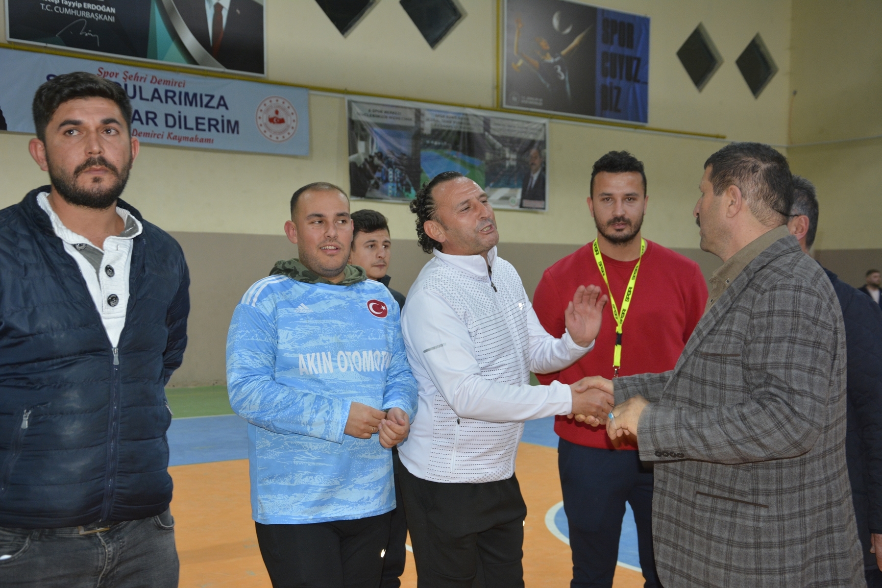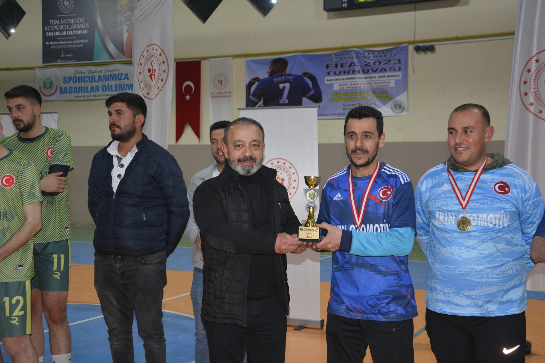 MHP Demirci İlçe Başkanı Ümit Kanyılmaz turnuvada 3. olan Akın Otomotiv takımına, Belediye meclis üyesi Mustafa Yiyen 2. olan Ayaks takımına kupa ve madalyalarını takdim ettiler.