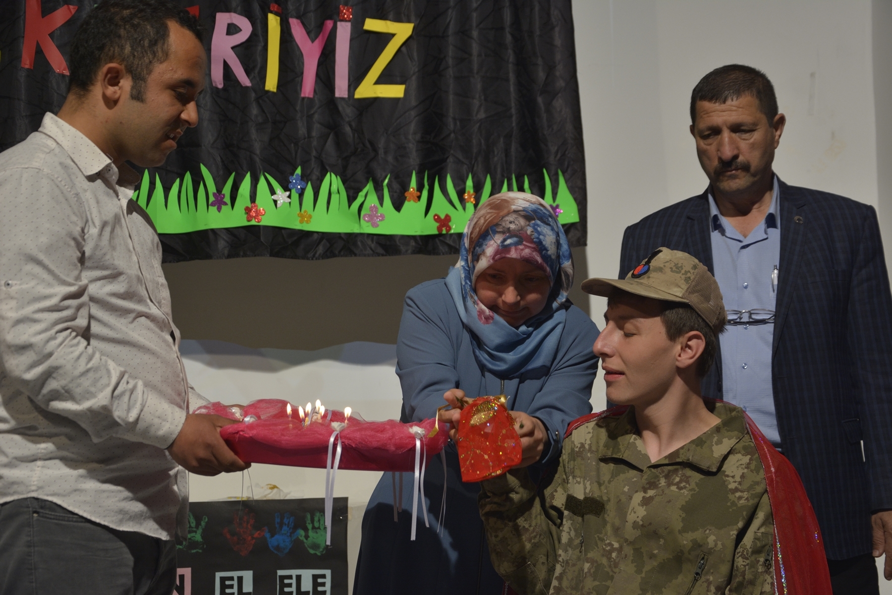 Programın sonunda Ahi Evran MTAL Özel Eğitim Sınıfı Mezunu Adnan Çakıcı için öğretmenleri koordinesinde İlçe Jandarma Komutanlığı, Askerlik Şube Başkanlığı bilgisi ve desteğiyle asker kına merasimi yapıldı.
