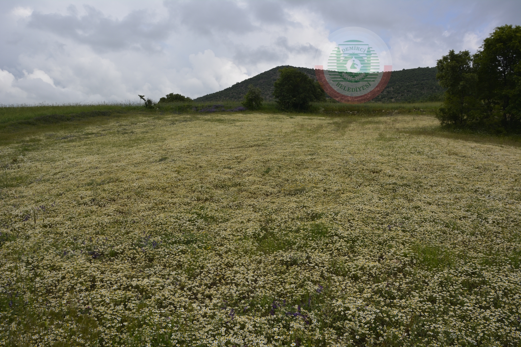 Demirci yaylalarında bahar yağmurlarıyla boy veren papatyaların yaylaları kaplamasıyla, bölgede kırsal mahallelerde yaşayan kadınlar da sabahın erken saatlerinde traktörlere binip yaylalara çıkarak, kır papatyalarını gelecek sene tekrar yetişmesi için özenle topluyor.