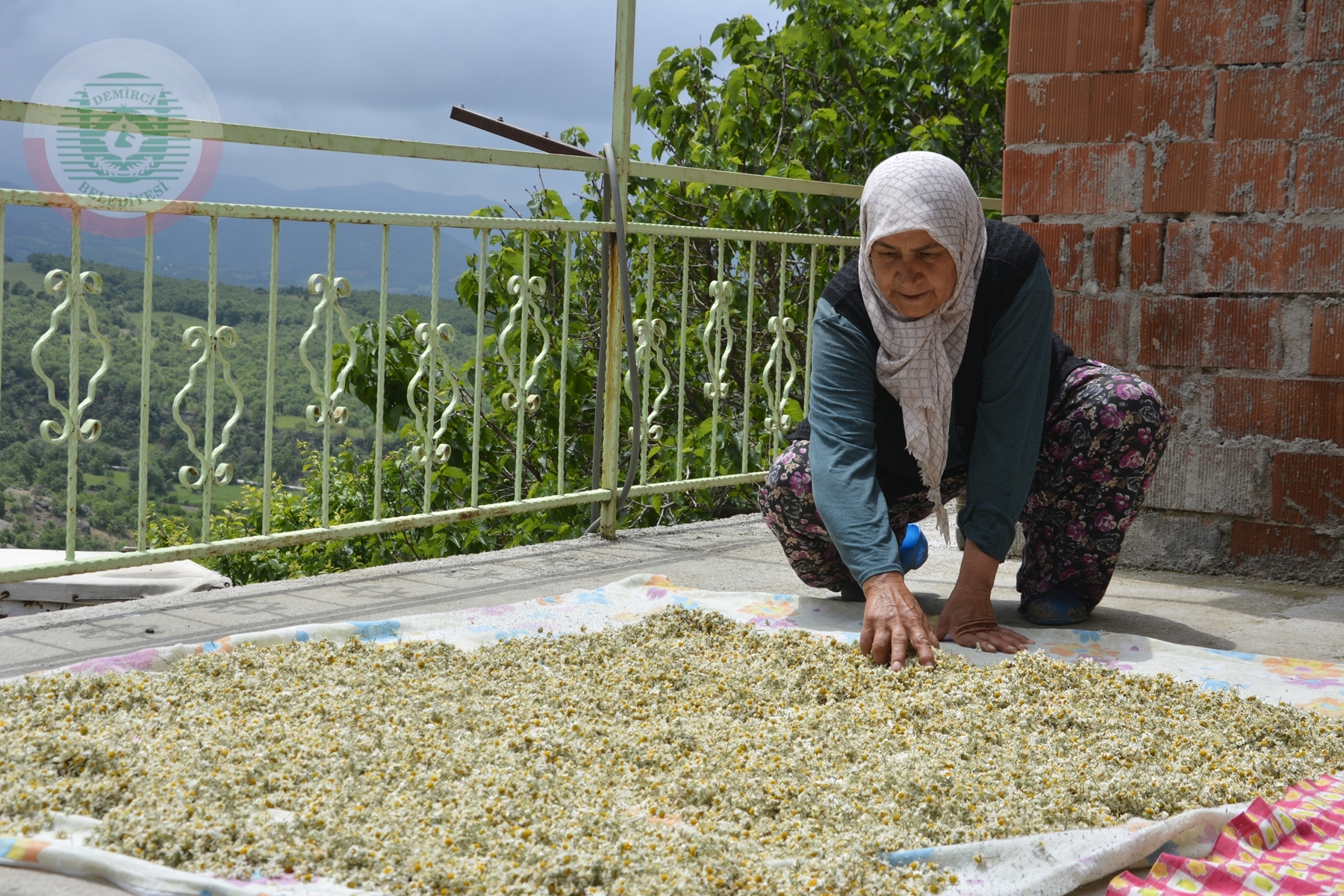 Özellikle kırsal mahallelerden Elek, İmceler, Kuzeyir, Kışlak, Rahmanlar, Ulacık ve Danişmentler'de yaşayan kadınlar, türküler eşliğinde, kestikleri papatyaları, evlerine getirerek, teraslarına serdikleri örtülerin üzerinde kurutuyor.