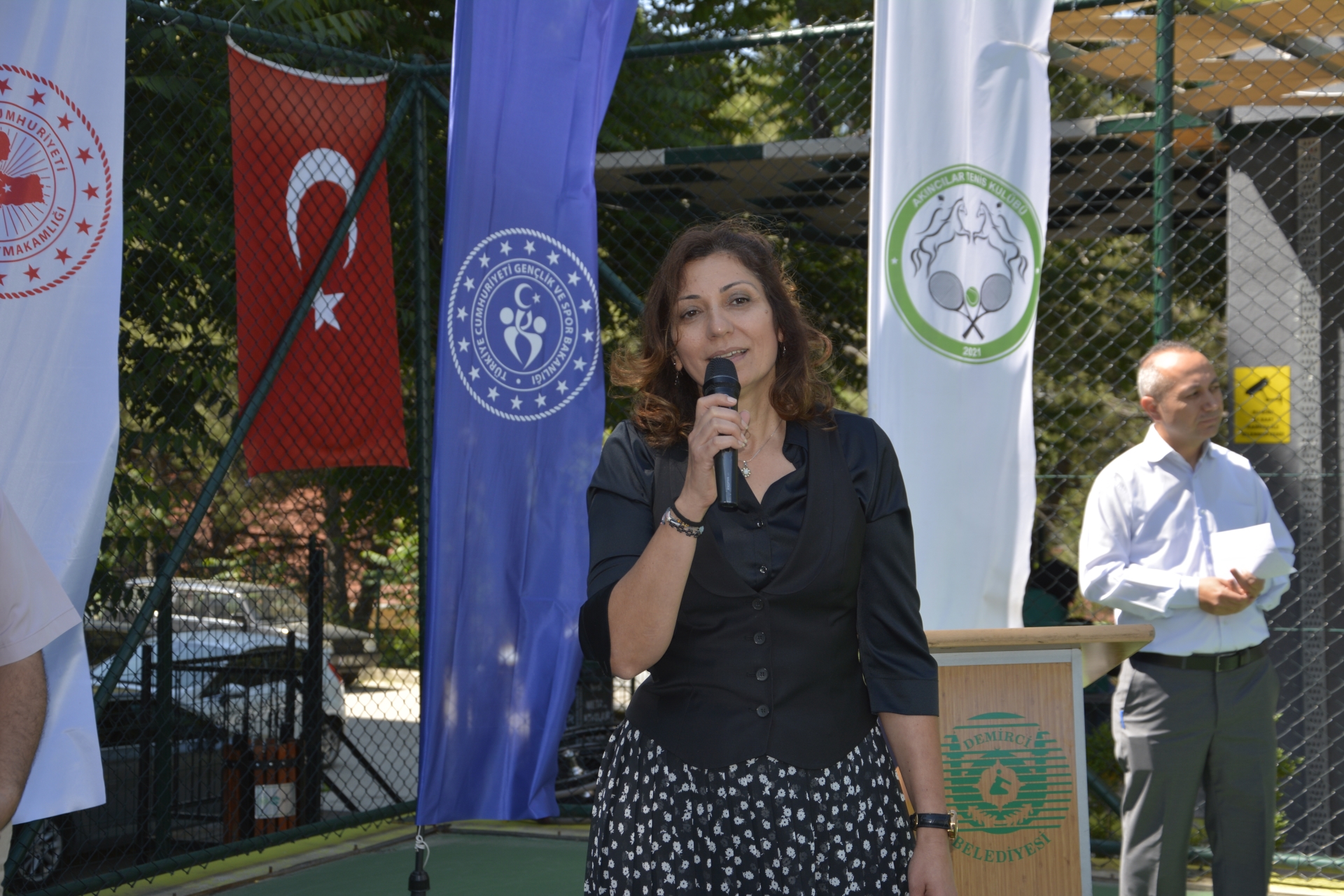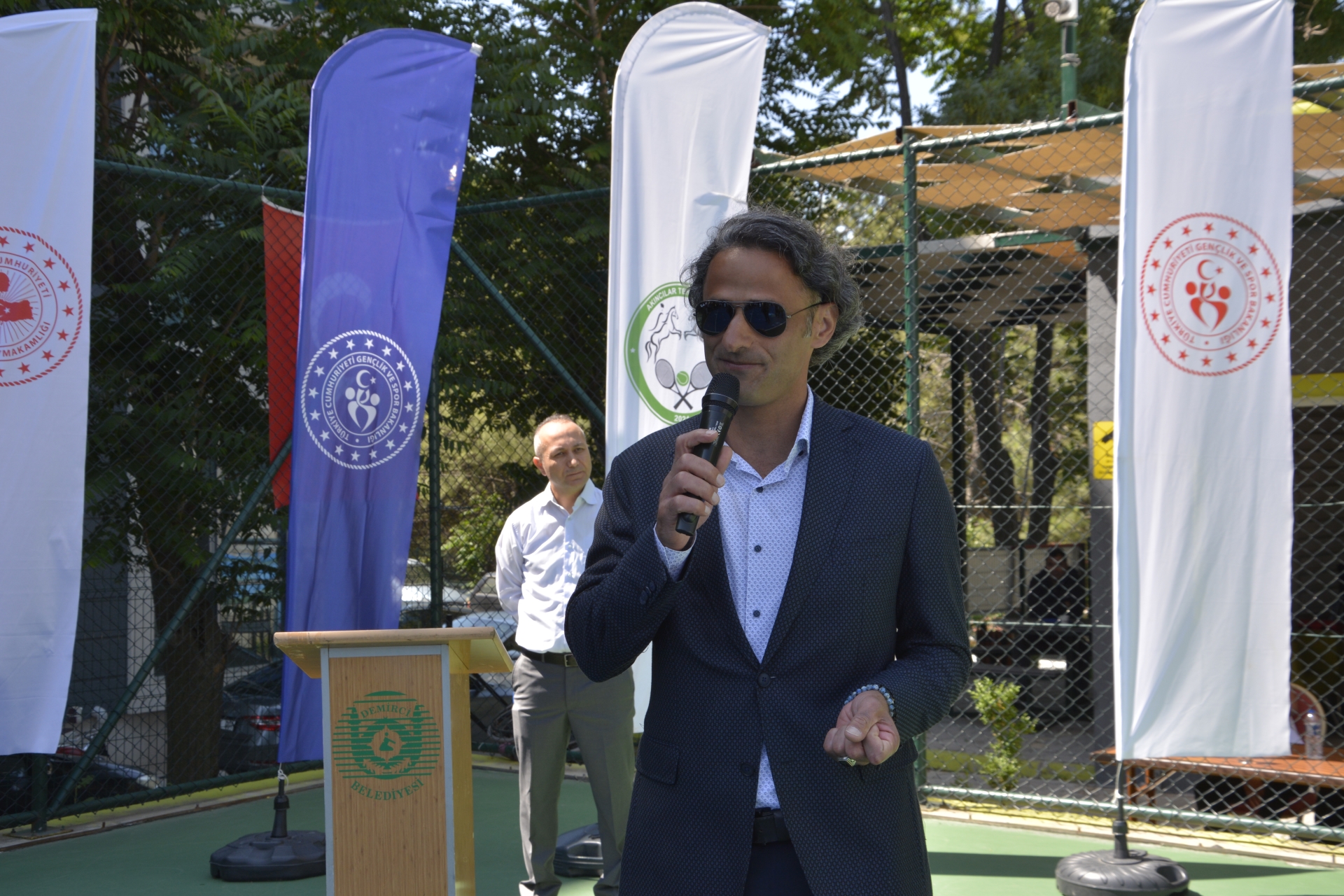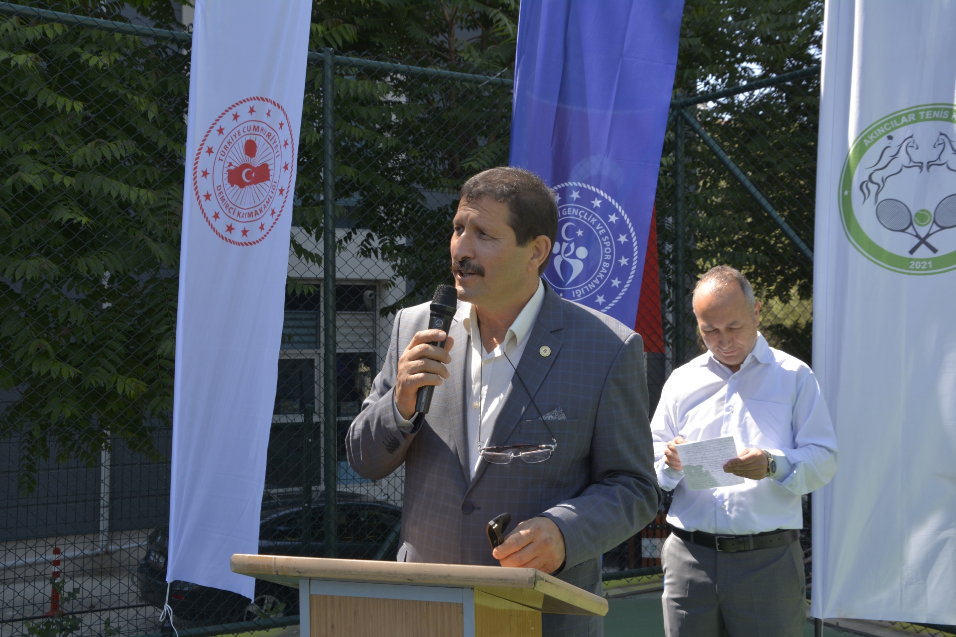 Saygı duruşu ve İstiklal marşının okunmasının ardından törende konuşan Türkiye Tenis Federasyonu Yönetim Kurulu Üyesi, Demirci Kaymakamı Adem Kaya" Halının başkenti, Akıncılar şehri ve sporunda başkenti olma yolunda da emin adımlarla ilerliyoruz. Haziran ayında teniste şampiyonalara ev sahipliği yapıyoruz. Temmuz ayında da ilçemizde şampiyonalar olmaya devam edecek. Spor altyapımızı her geçen daha da güçlendiriyoruz. Gençlik ve Spor Bakanlığımızın destekleri ile Kaymakamlık ve Belediye olarak hedefimiz daha büyük organizasyonlara ev sahipliği yapmak " dedi.