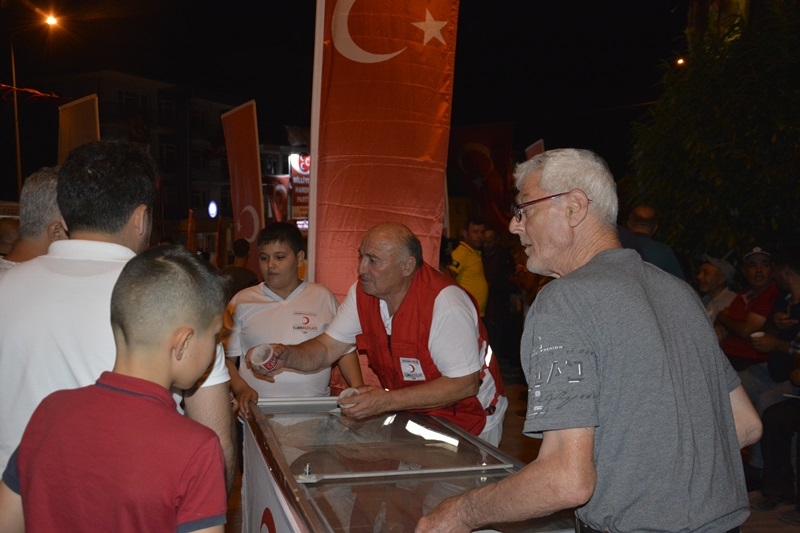 Öğrenciler tarafından programda 15 Temmuz'un anlam ve önemini belirten şiirler okunurken, Kızılay Demirci Şubesi tarafından da vatandaşlara çeşitli ikramlar yapıldı.
