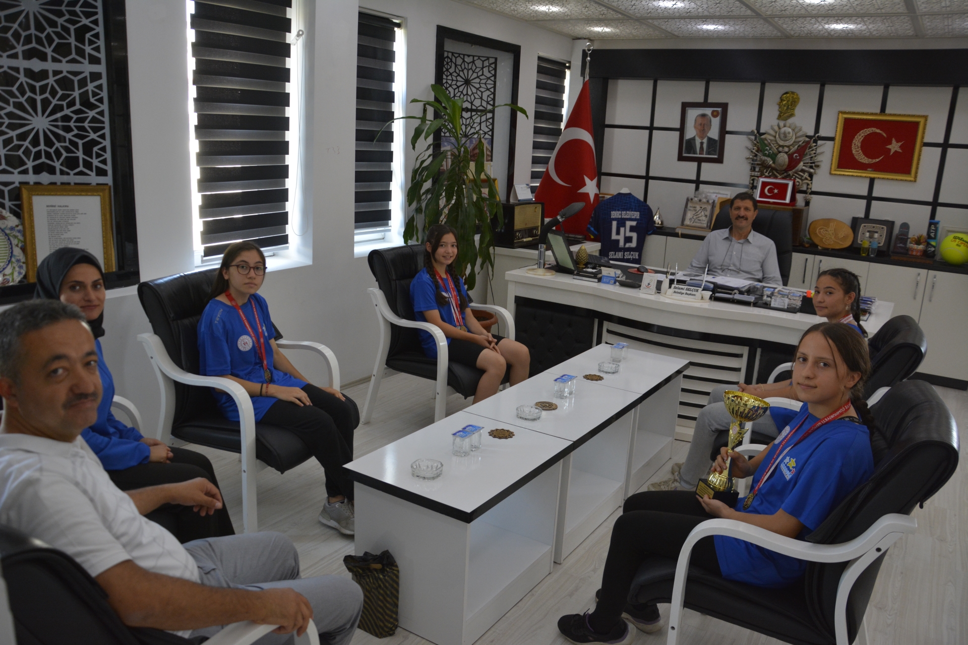 Türkiye Şampiyonu olan sporcular, İlçe Gençlik ve Spor Müdürü Bilal Yılmaz ve Antrenör Hatice Adıbelli ile birlikte Belediye Başkanımız Selami Selçuk’u ziyaret ettiler.