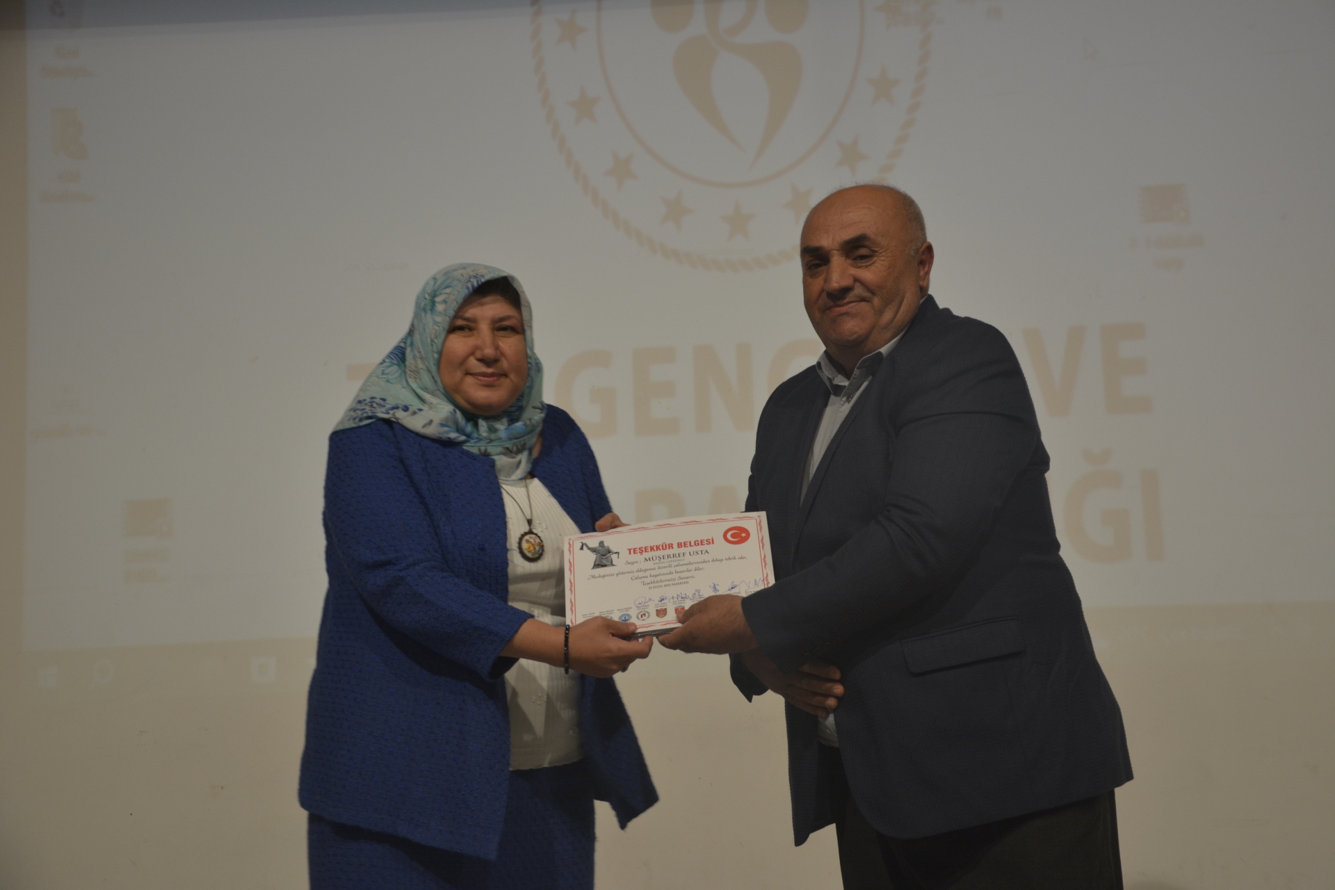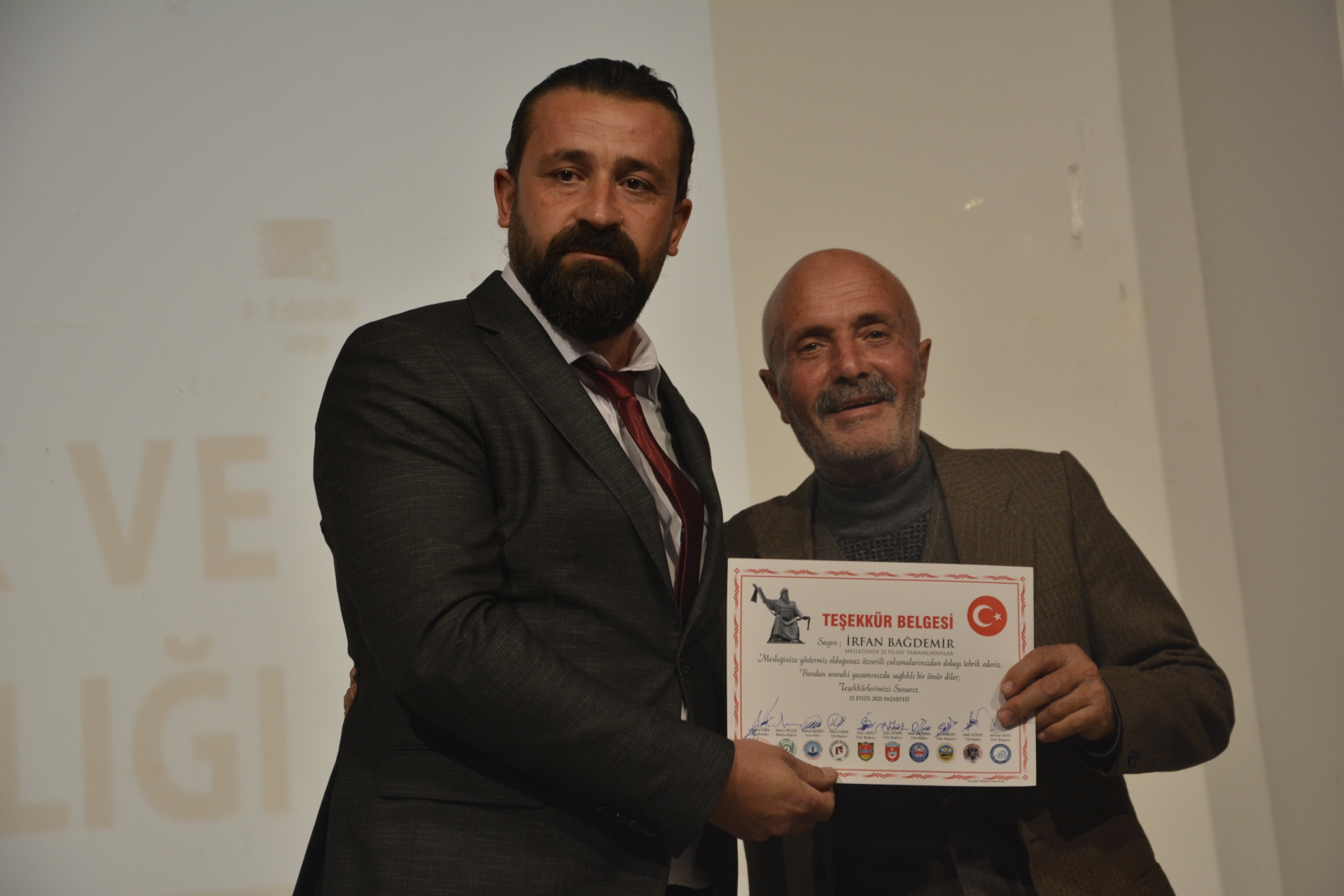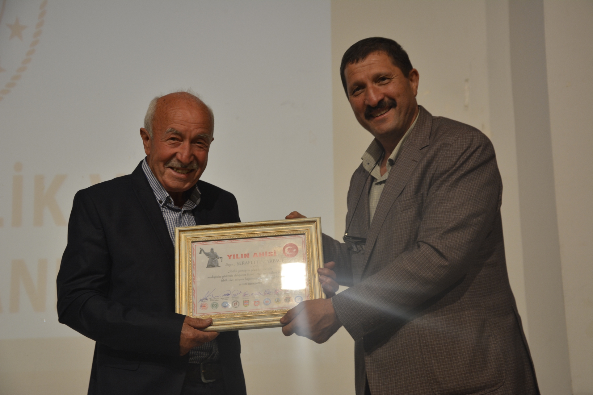 Ahilik ve Ahilik Kültürünü yaşatma programında meslek odaları tarafından belirlenen Genç Girişimci, Kadın Girişimci ve Mesleğinde 25 Yılını tamamlamış esnaf ve sanatkara belge takdimi yapıldı.