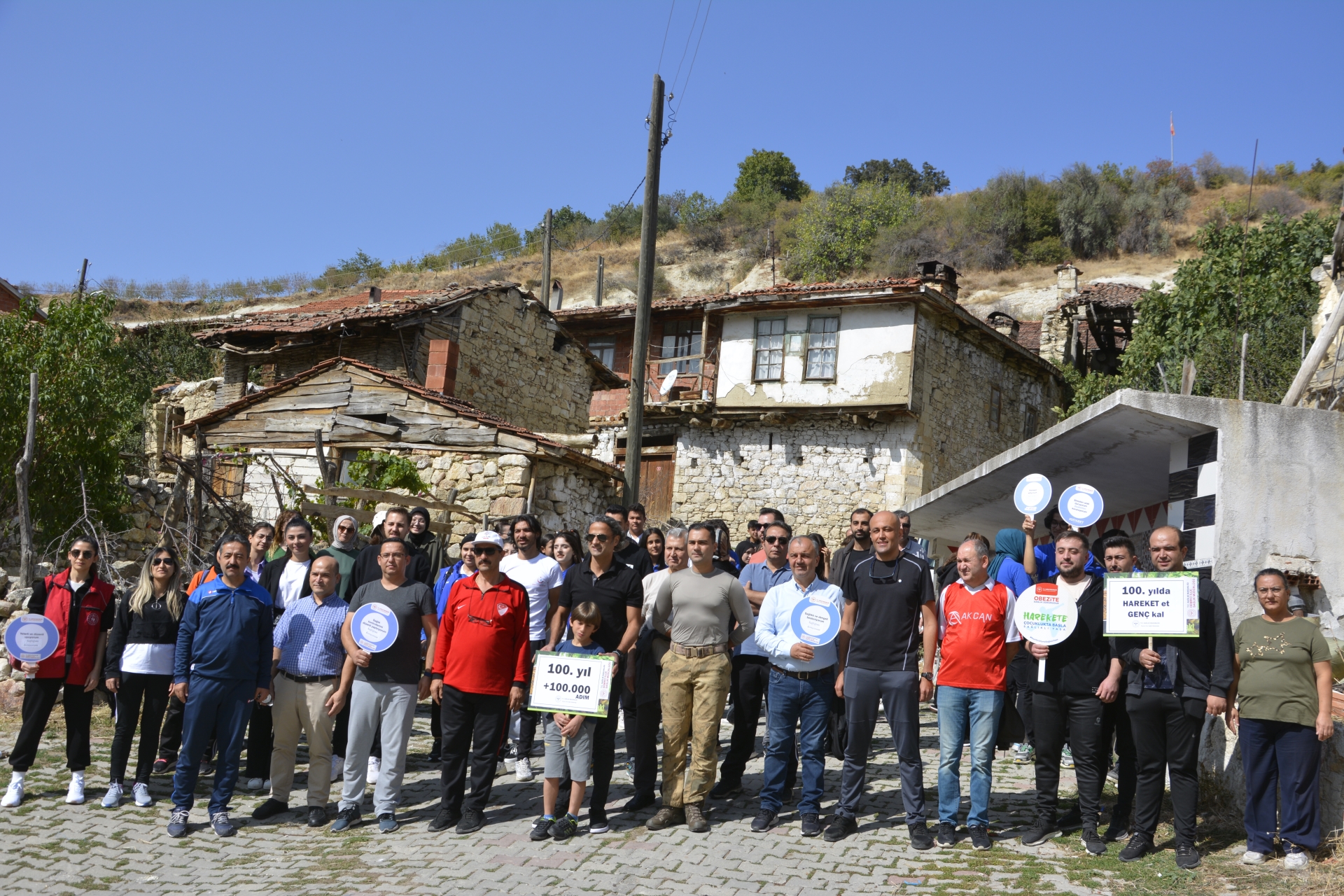 Öğrenciler “ Hareket et genç kal”, 100. Yılda 100.000 adım “ dövizleri ile yürüyüşte farkındalık yarattılar.