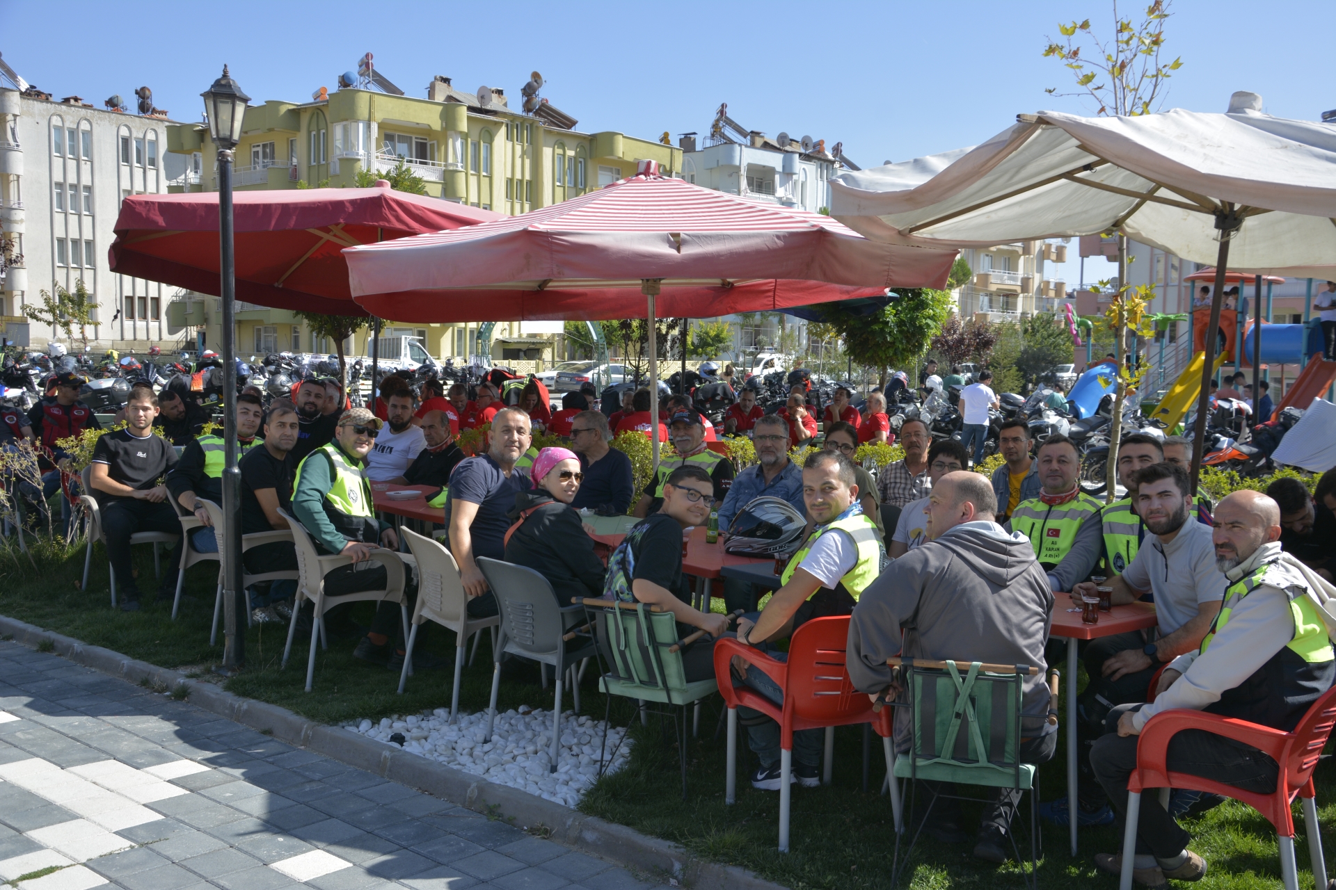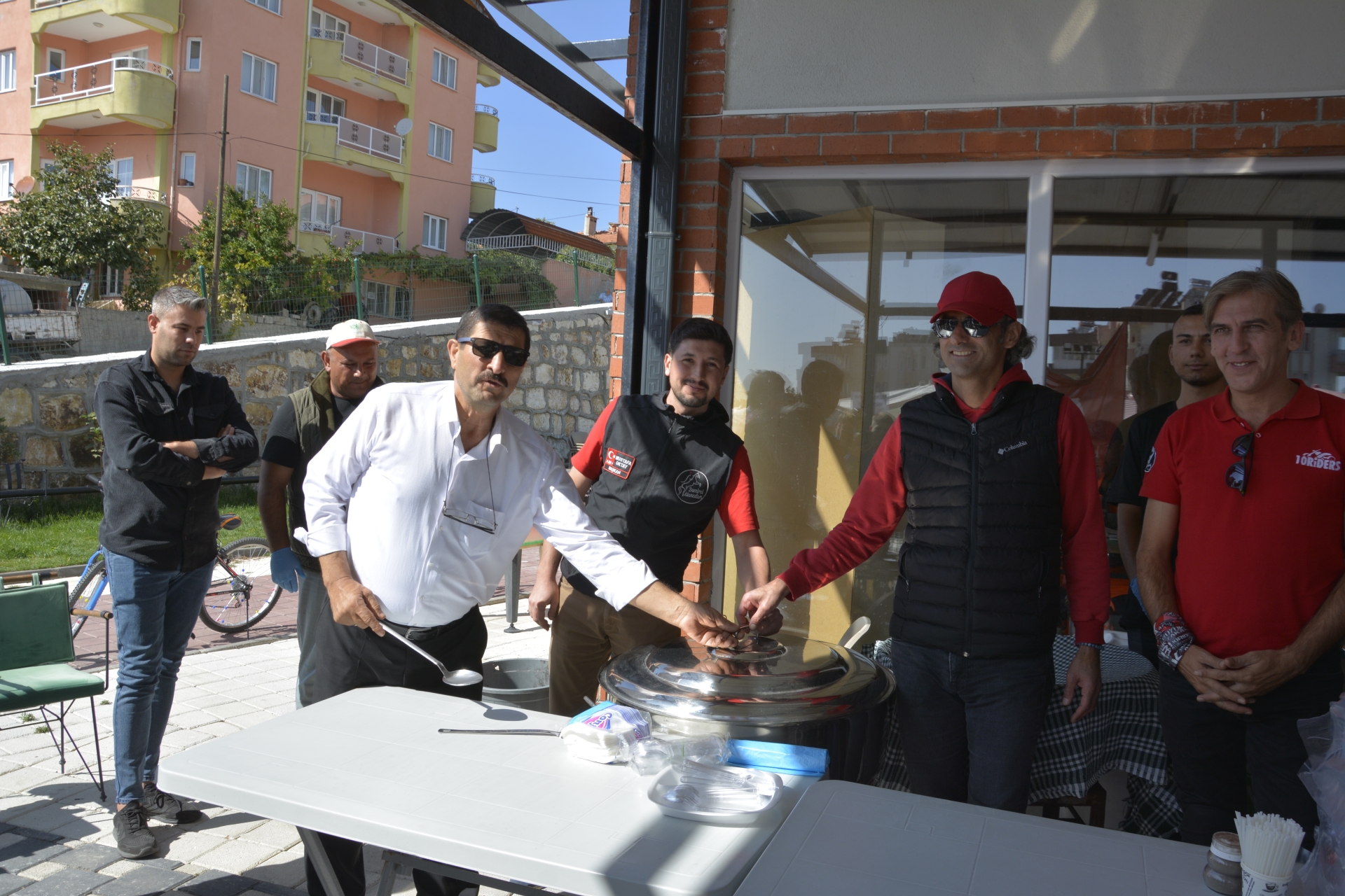 Konuşmaların ardından motosiklet tutkunlarına ilçenin yöresel lezzeti olan keşkek ve helva ikramında bulunuldu.