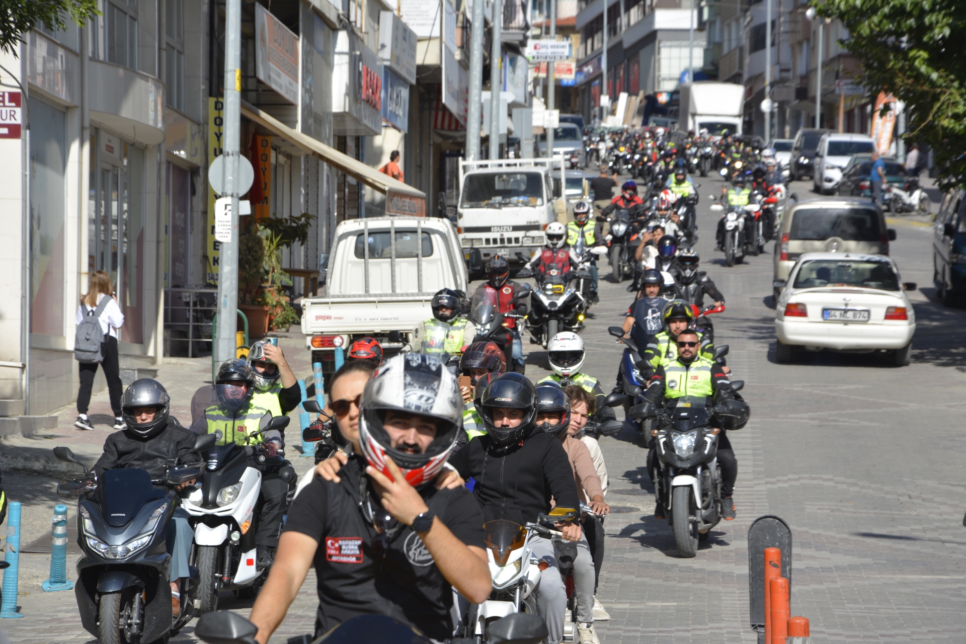 Daha sonra motosiklet tutkunları ilçe merkezinde kortej sürüşü yaptıktan sonra milli mücadelenin yapıldığı Demirci dağı, Hışır ve Sarıçayır mevkilerinde sürüş gerçekleştirdiler.