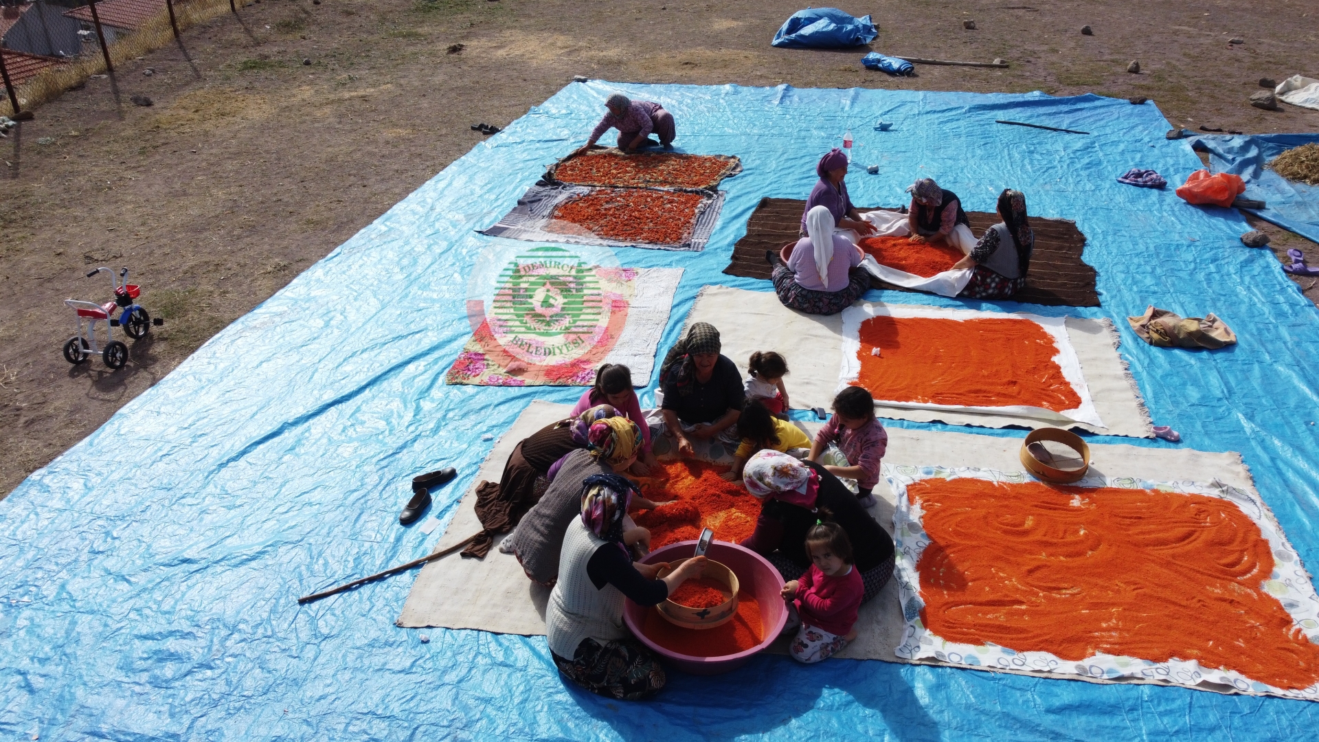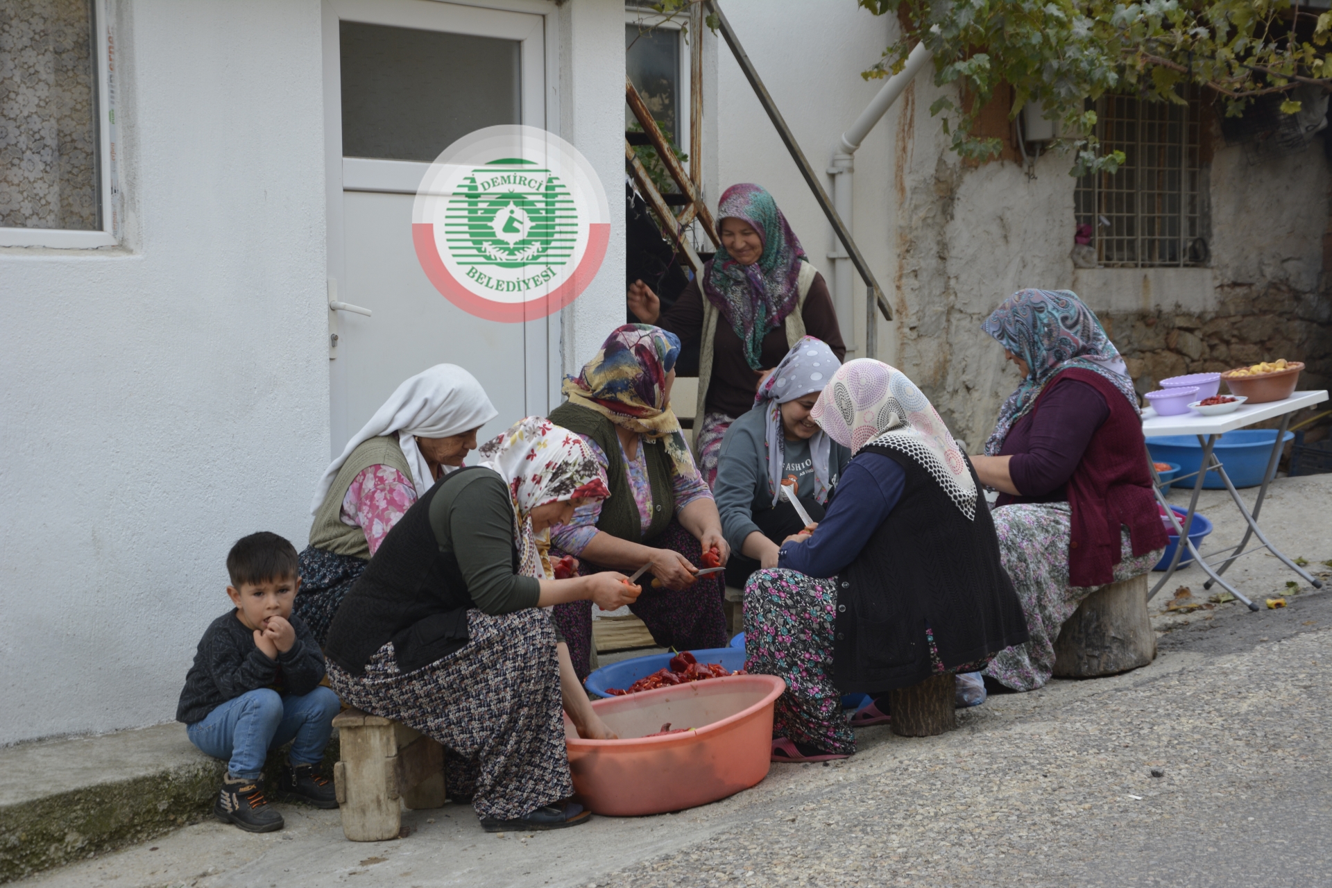 Sevinçler mahallesindeki kadınlar kışa hazırlıklarını imece usulü ile yapıyorlar.