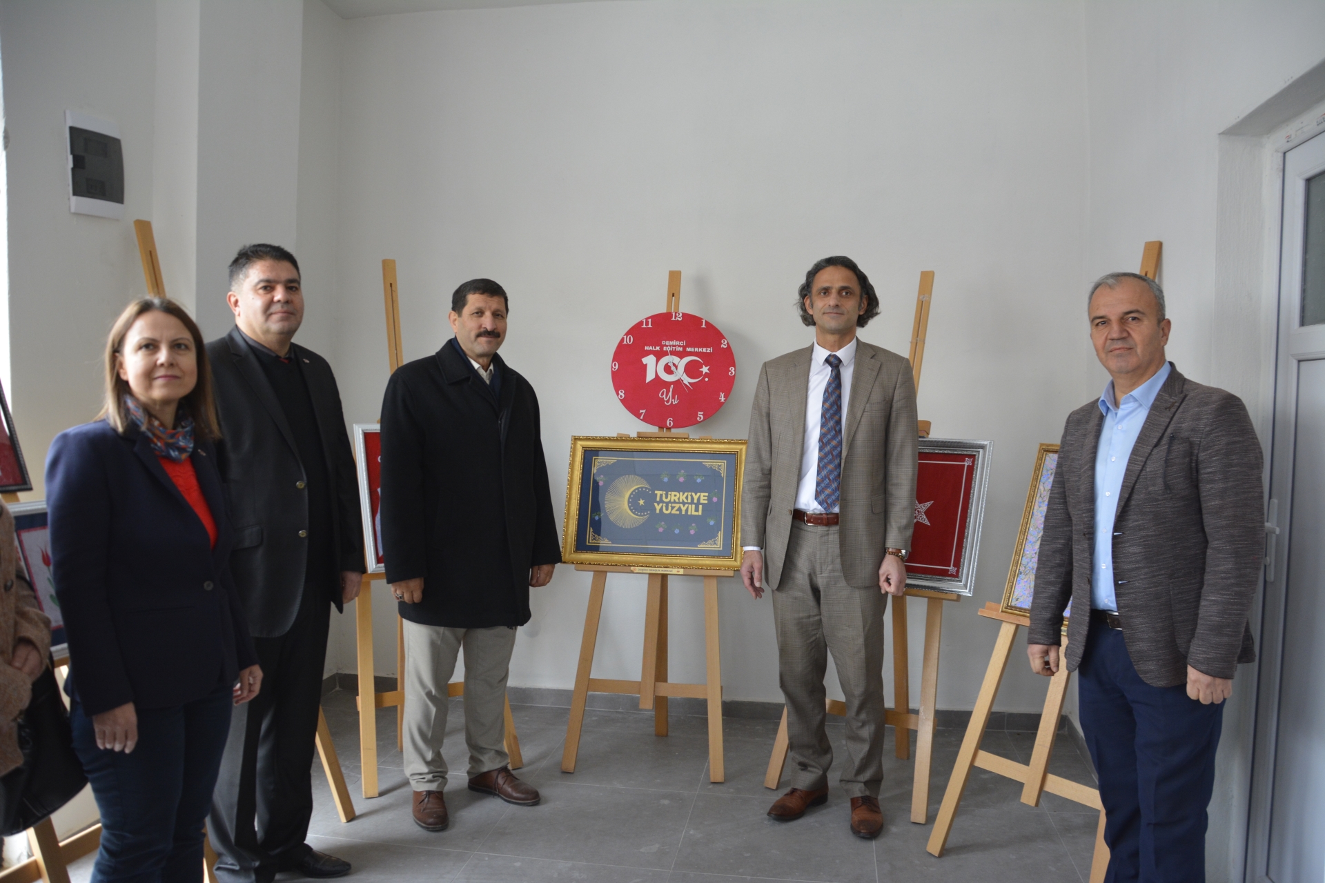 Demirci Halk Eğitimi Merkezi Müdürlüğü, Cumhuriyetin 100. Yılına özel sergi çalışması yaparak, kursiyerlerin yaptığı eserleri beğeniye sundu.