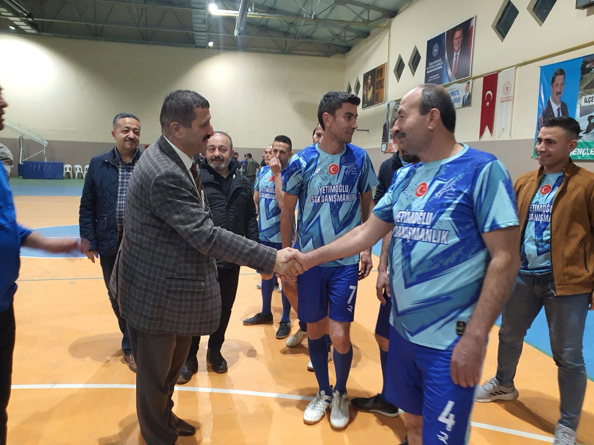Demirci Belediye Başkanı Selami Selçuk, MHP İlçe Başkanı Ümit Kanyılmaz ve Ülkü Ocakları İlçe Başkanı Burak Özçil final maçı öncesi sahaya inerek sporcularla selamlaştı.