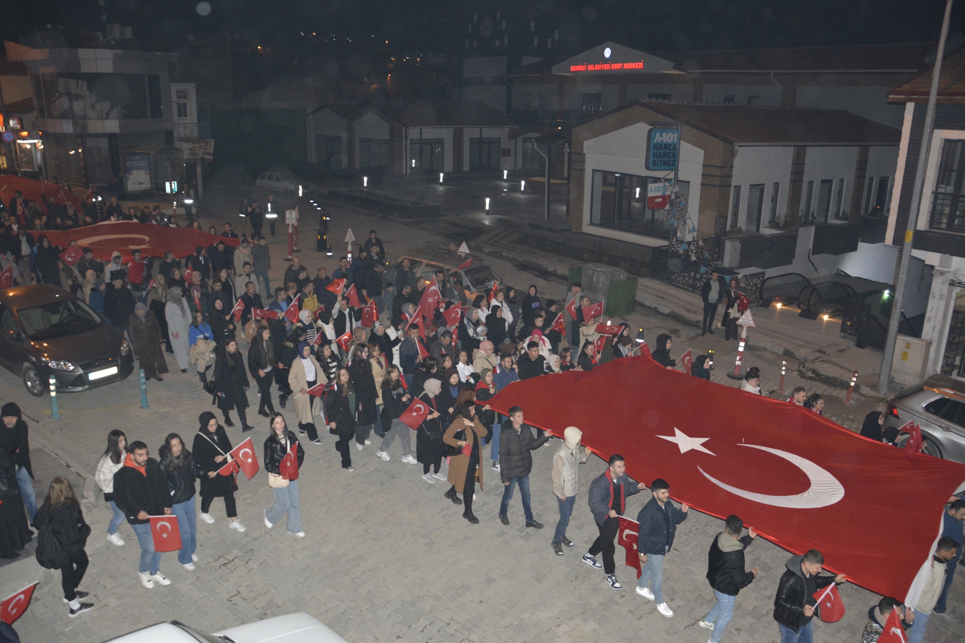Çereşe meydanında bir araya gelen çok sayıda genç ve halk ellerinde Türk bayrakları ile terörü lanetleyen yürüyüş yaptı.