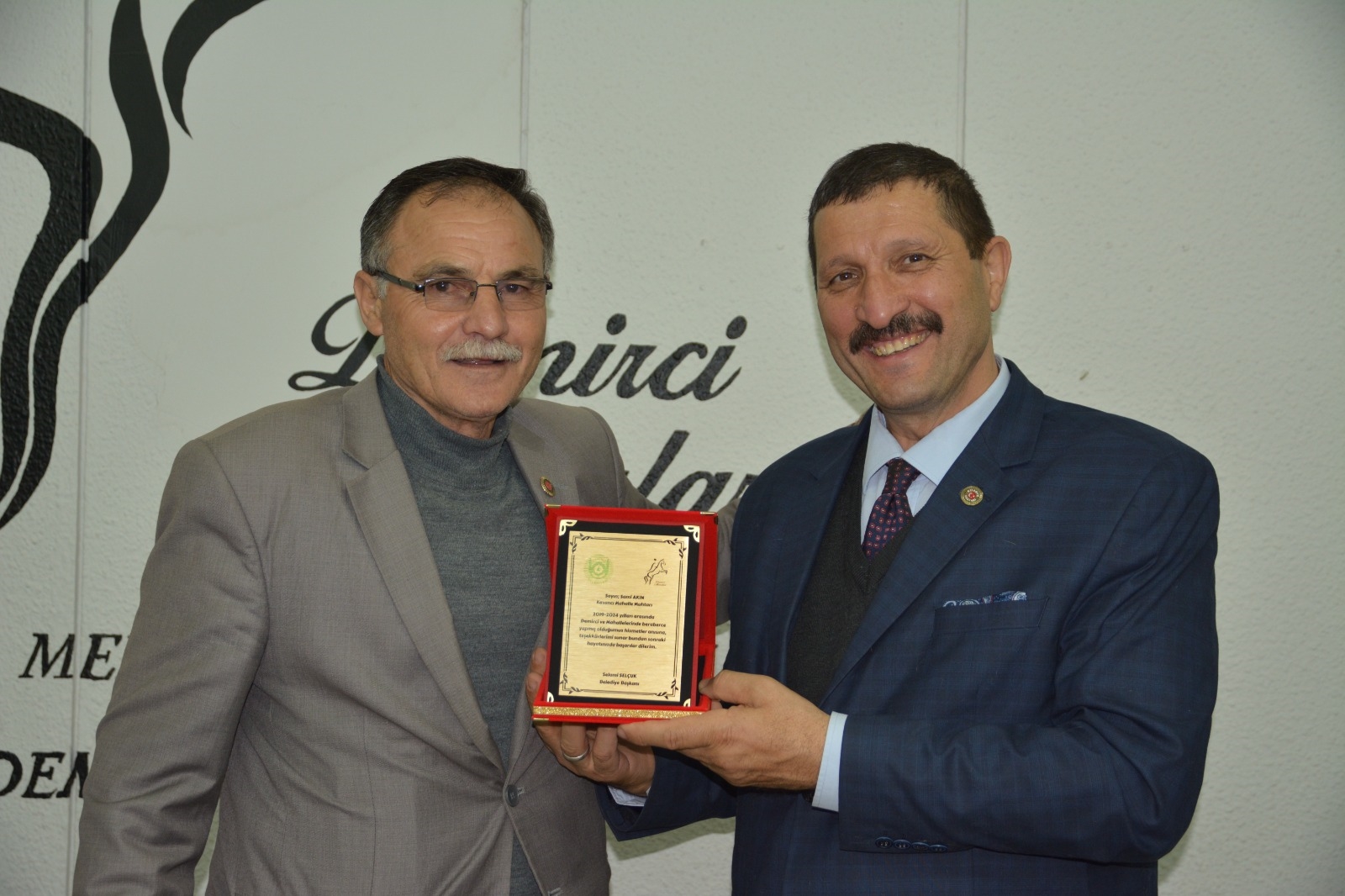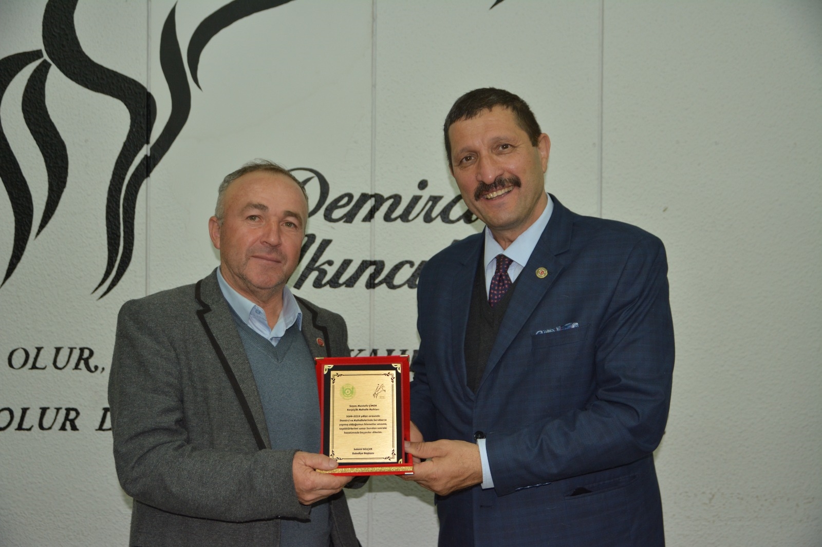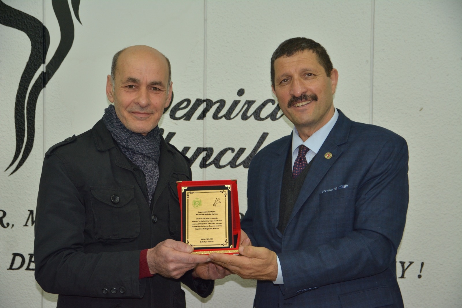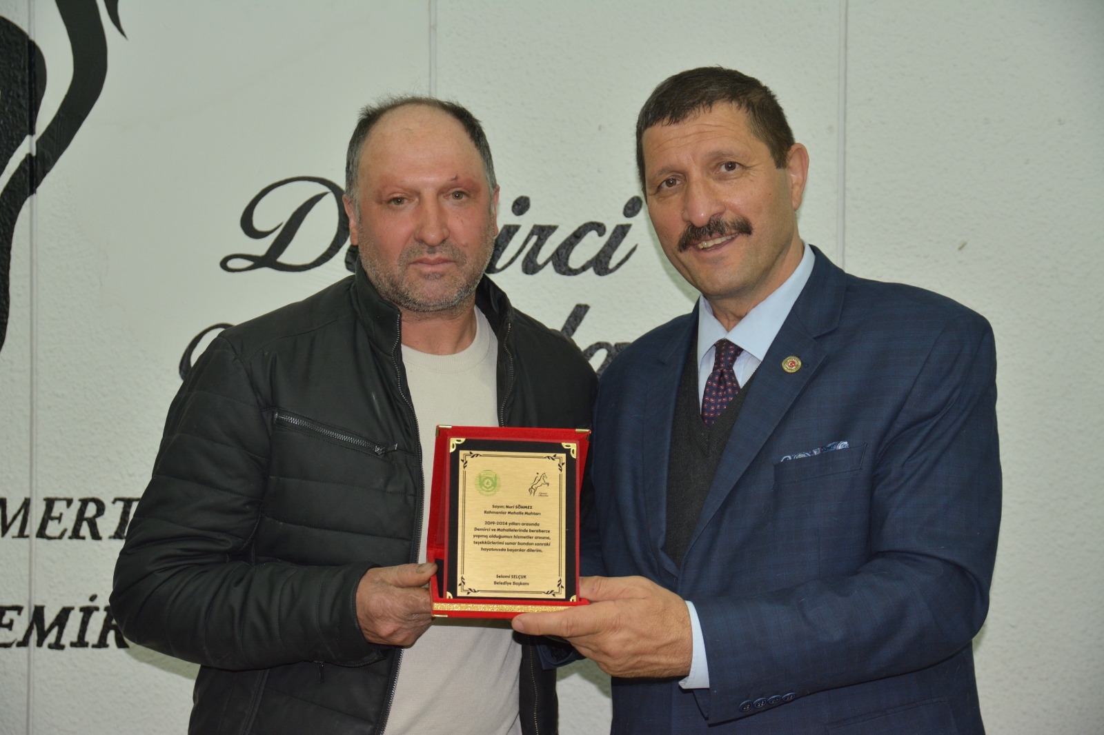 Demirci Belediye Başkanı Selami Selçuk, ilçe merkezi ve kırsal mahalle muhtarları ile bir araya gelerek teşekkür plaketi takdim etti.