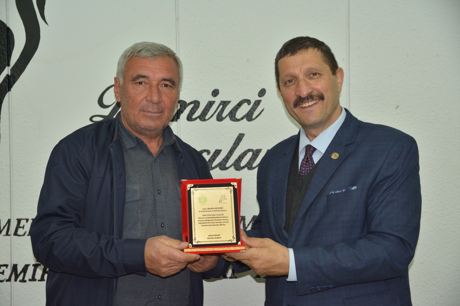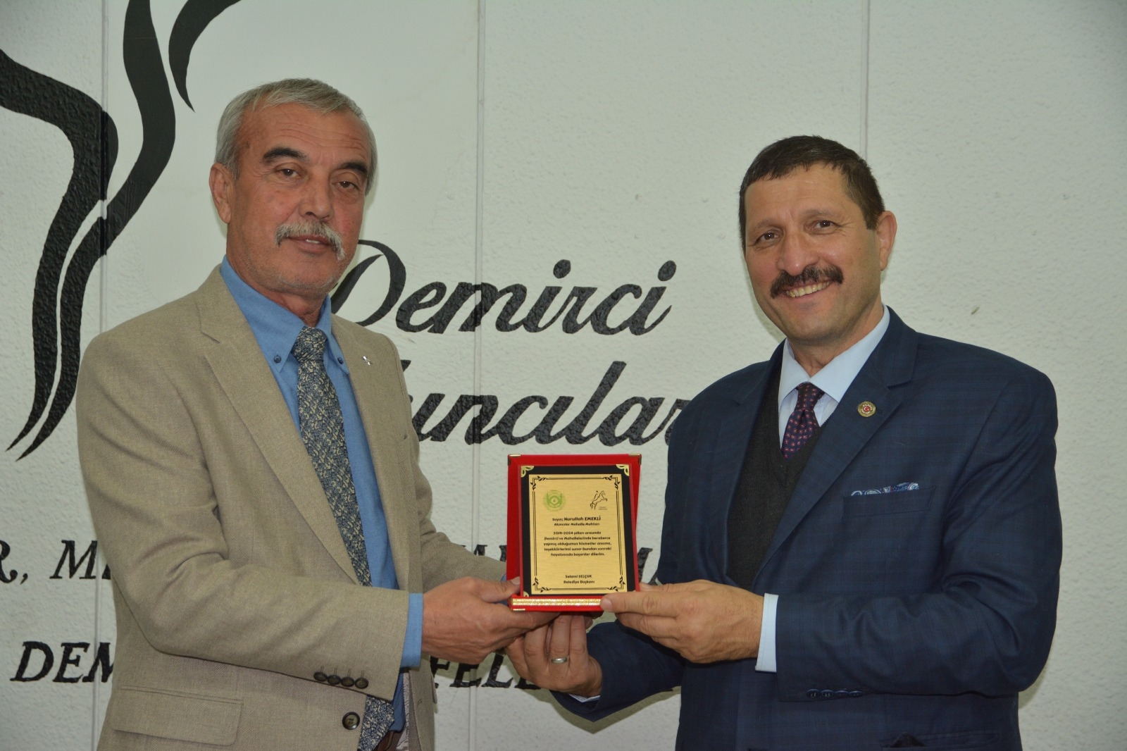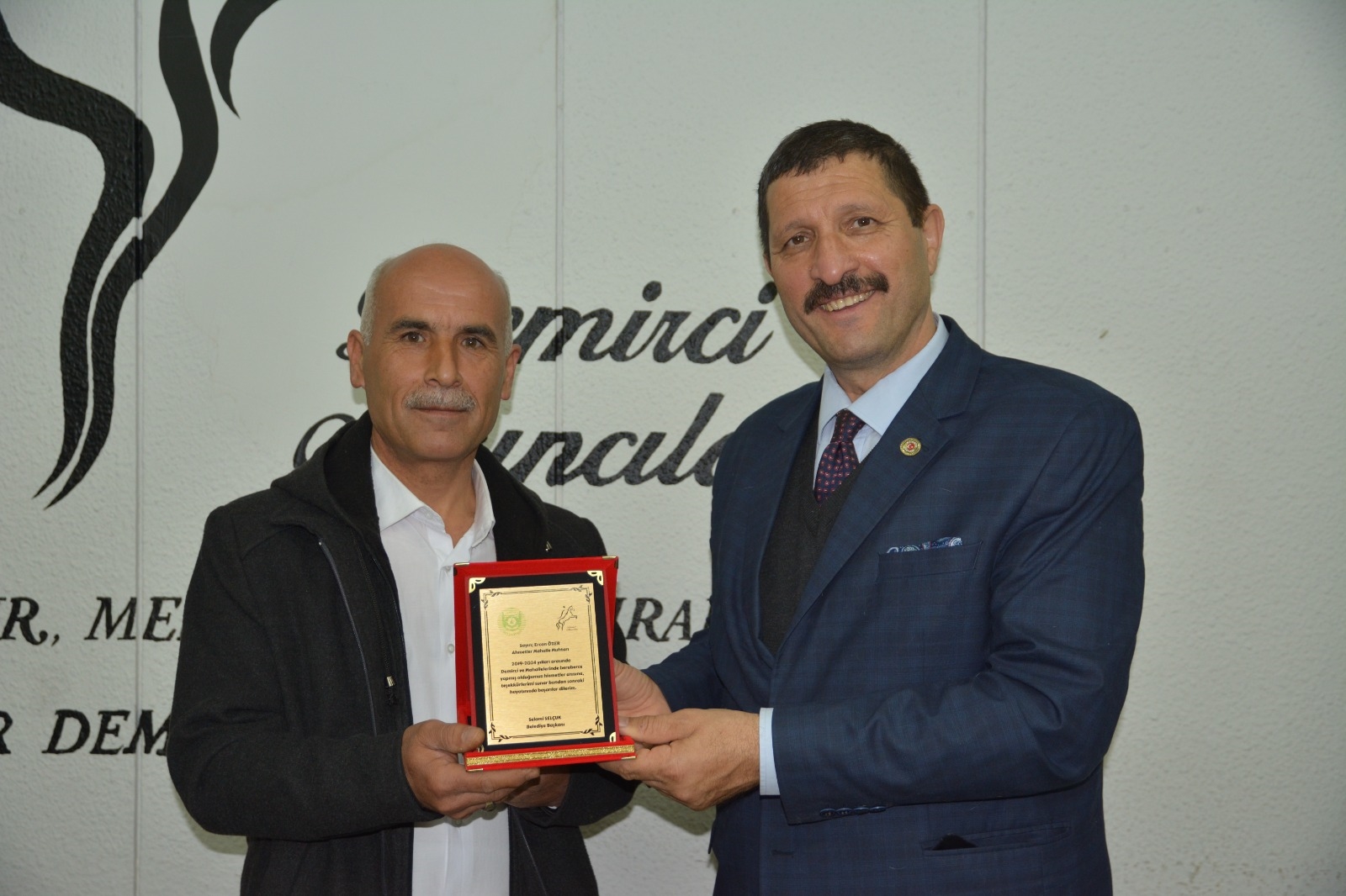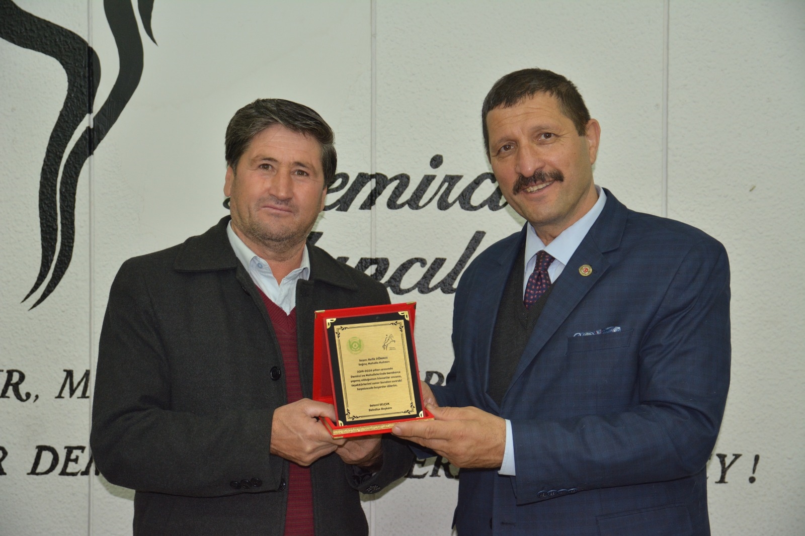 Demirci Belediye Başkanı Selami Selçuk, ilçe merkezi ve kırsal mahalle muhtarları ile bir araya gelerek teşekkür plaketi takdim etti.