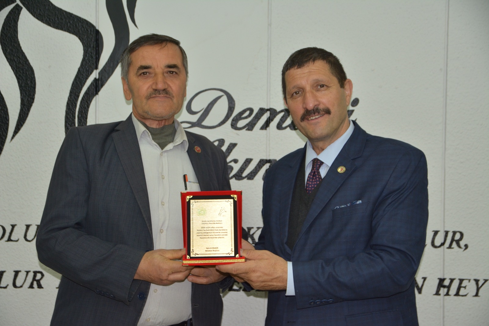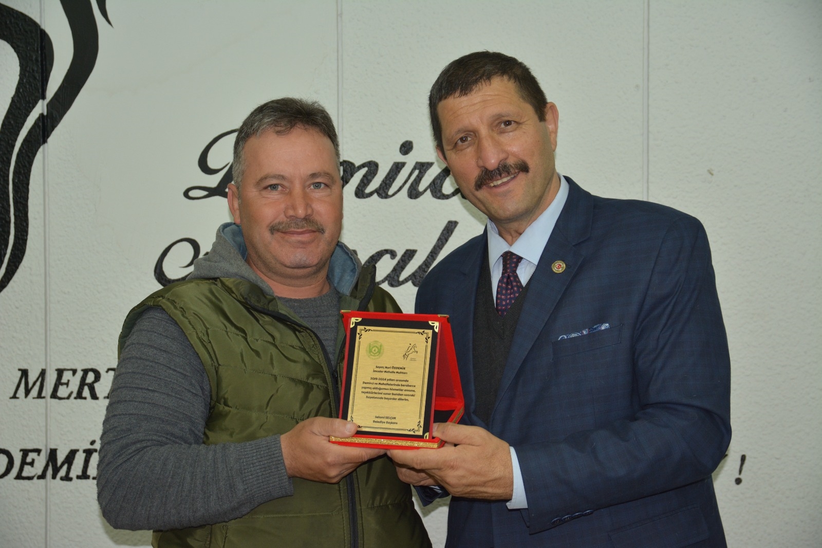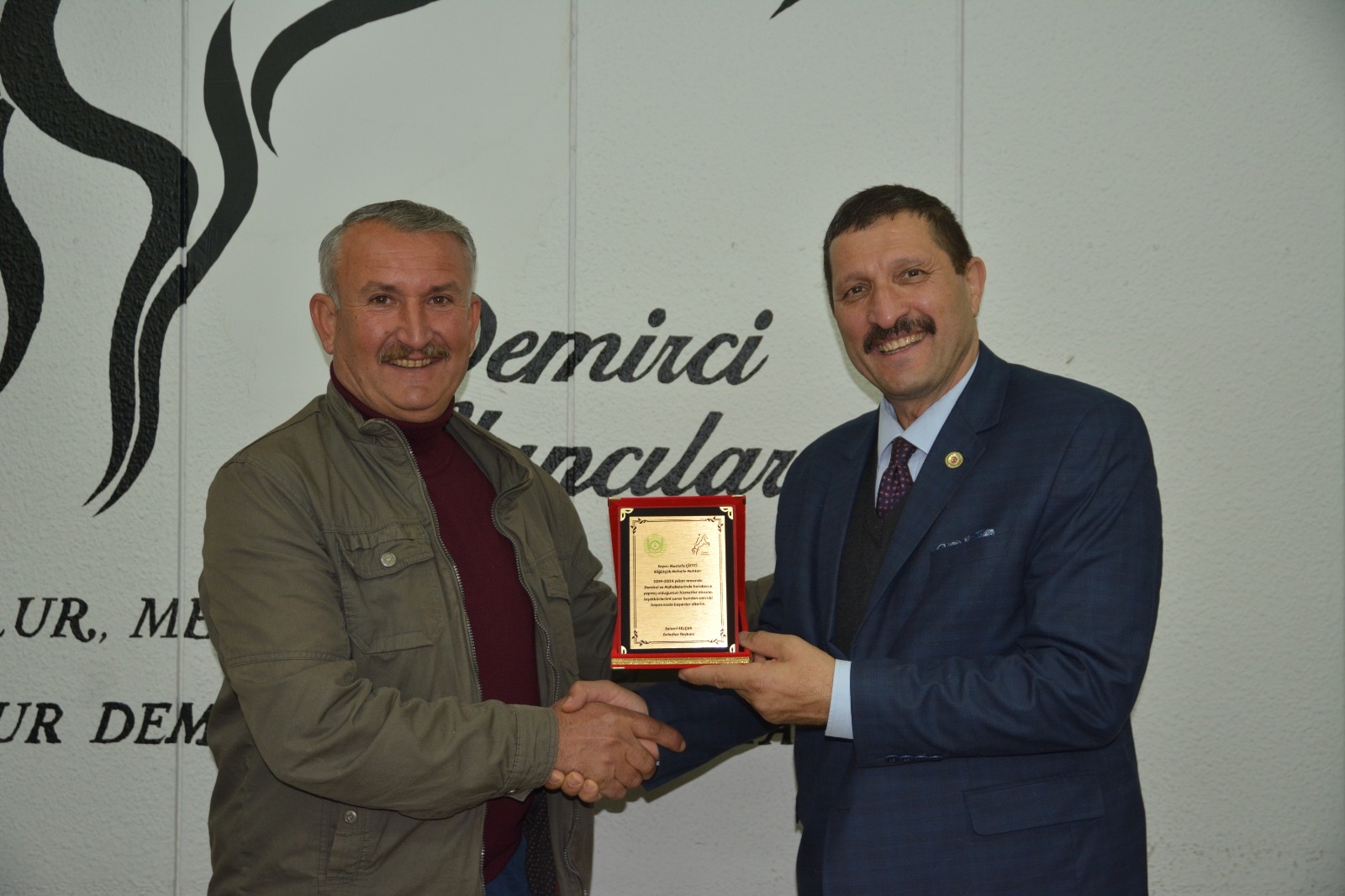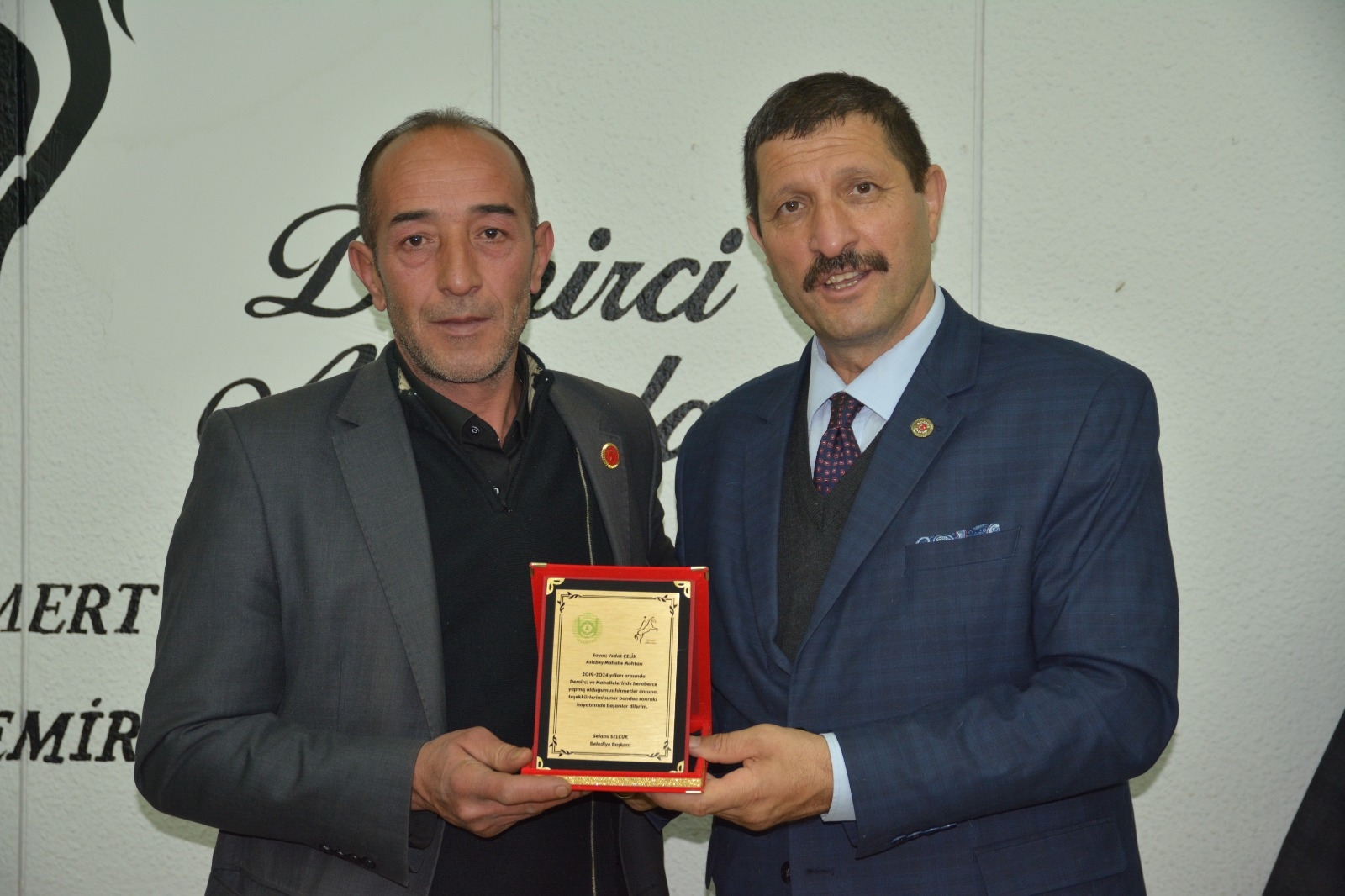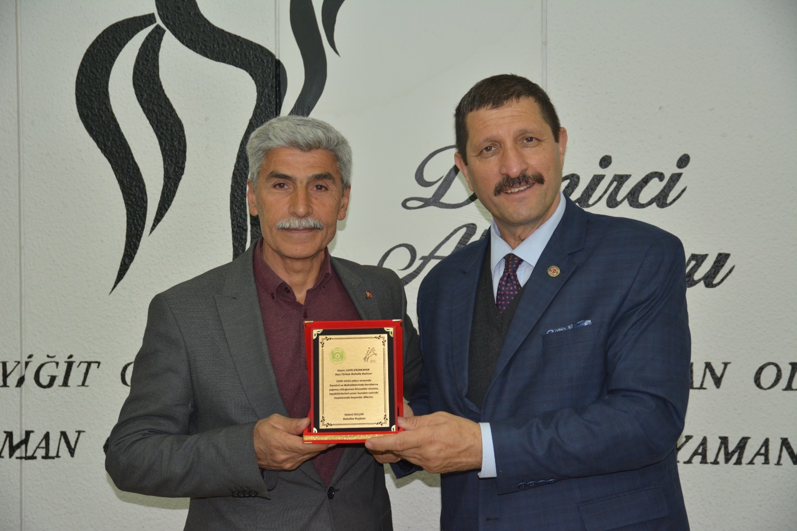 Demirci Belediye Başkanı Selami Selçuk, ilçe merkezi ve kırsal mahalle muhtarları ile bir araya gelerek teşekkür plaketi takdim etti.