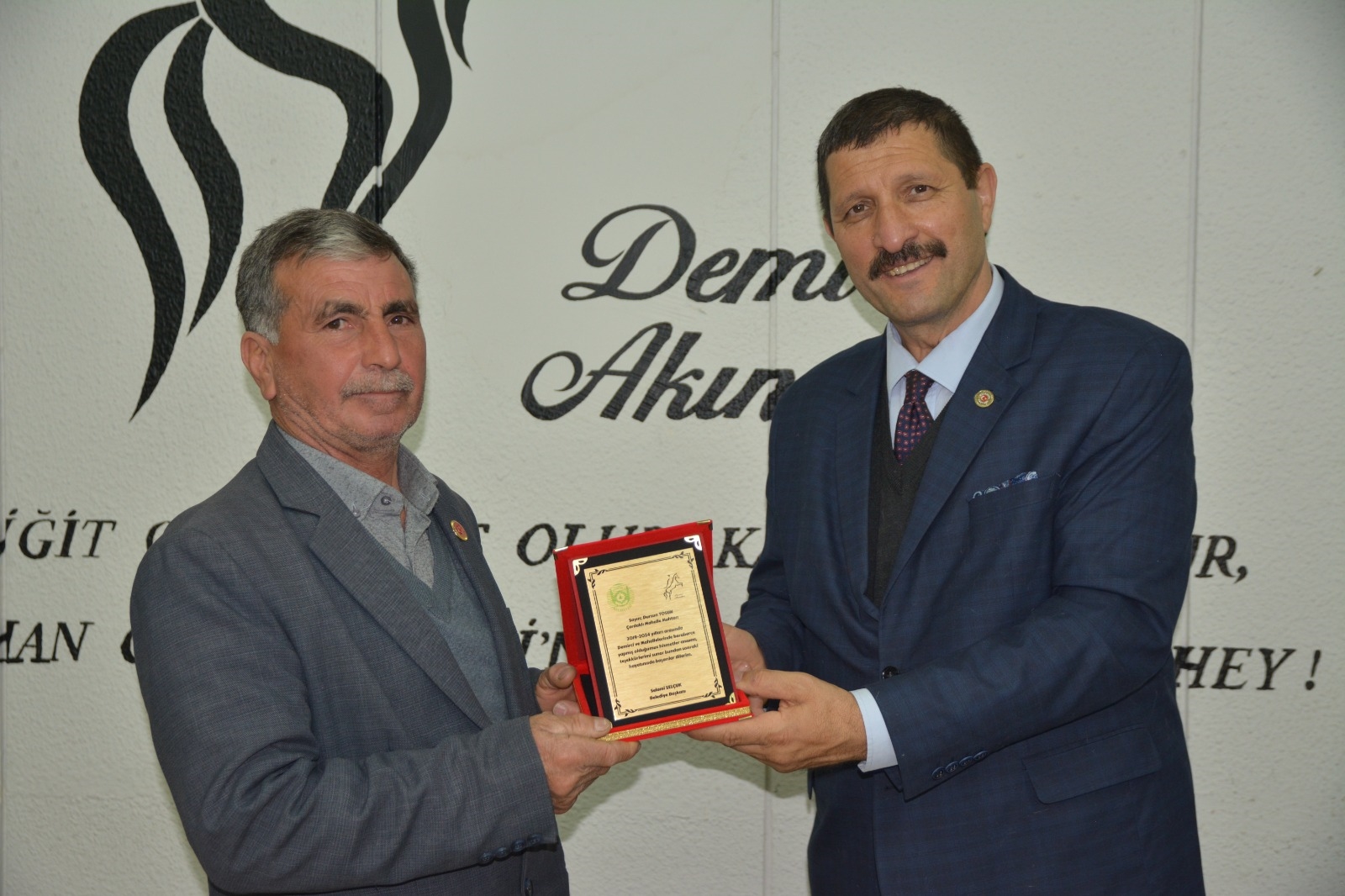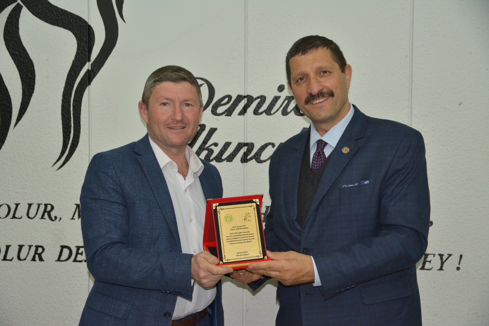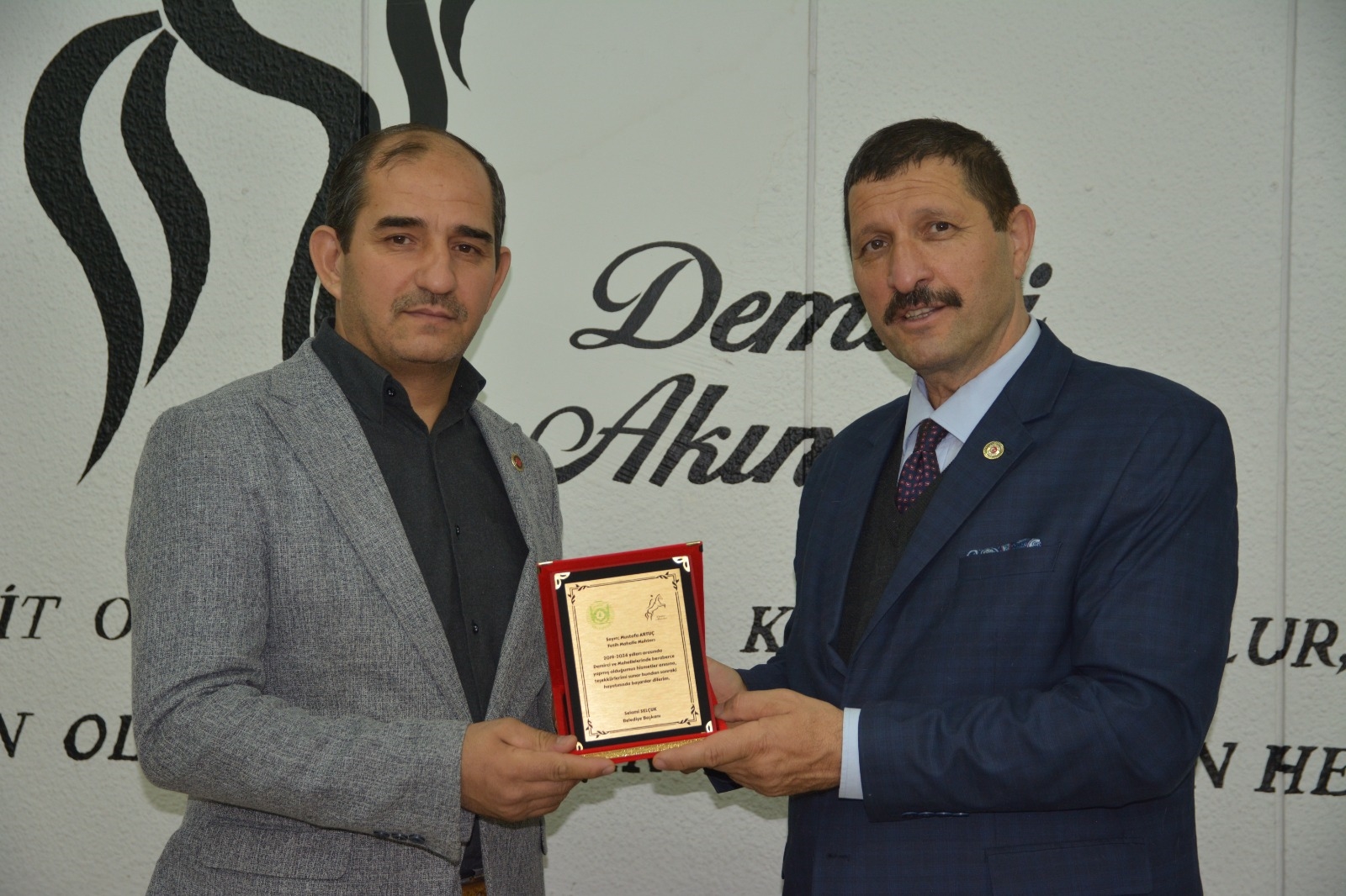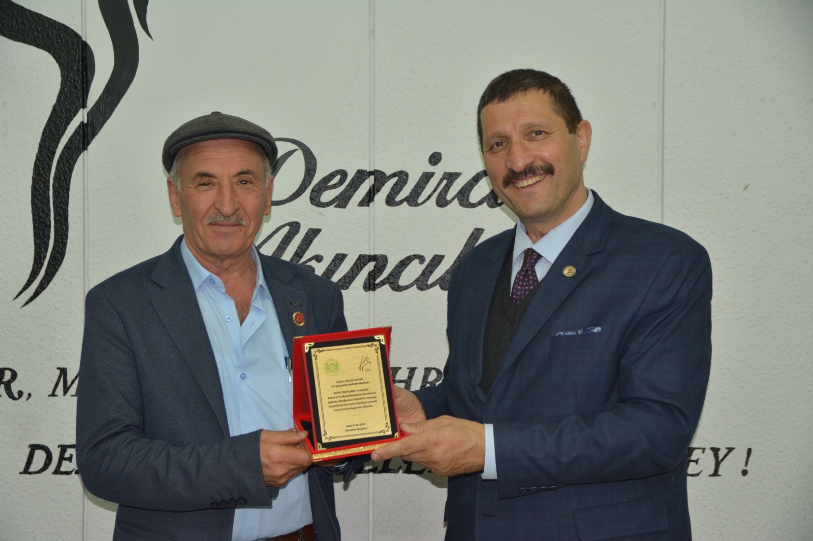 Demirci Belediye Başkanı Selami Selçuk, ilçe merkezi ve kırsal mahalle muhtarları ile bir araya gelerek teşekkür plaketi takdim etti.