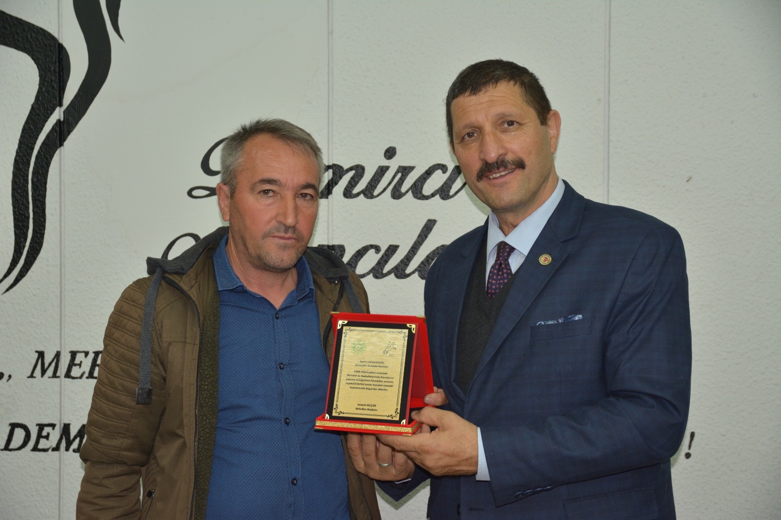Konuşmaların ardından Belediye Başkanı Selami Selçuk, mahalle muhtarlarına birlik ve beraberlik içindeki çalışmalarından dolayı Teşekkür plaketi takdim etti.