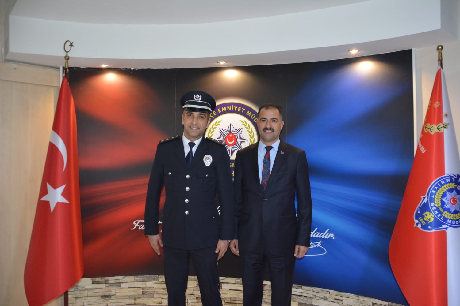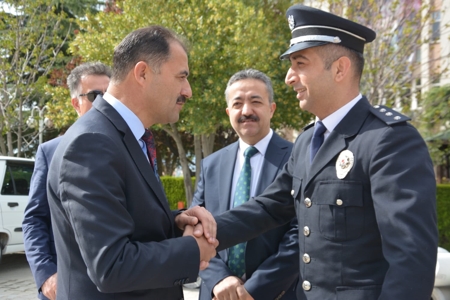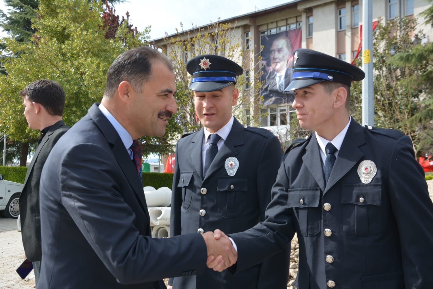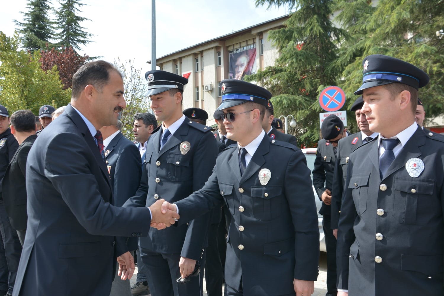 Törenin ardından Demirci Kaymakamı Adem Kaya, Belediye Başkanı Erkan Kara ve Cumhuriyet Savcısı Emre Aytaç ile birlikte İlçe Emniyet Müdürü Barış Kayar ve Emniyet Müdürlüğü personelini ziyaret ederek, günlerini kutladılar.