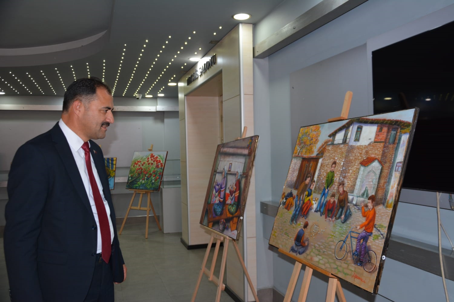 Mesir macunu korteji ve mesir saçımı törenin yapılmasının ardından Başkan Erkan Kara, Büyükşehir Belediyesi Lale fuaye alanına giderek ressam İsmail Çeşmeci’nin açtığı sergiyi ziyaret etti.