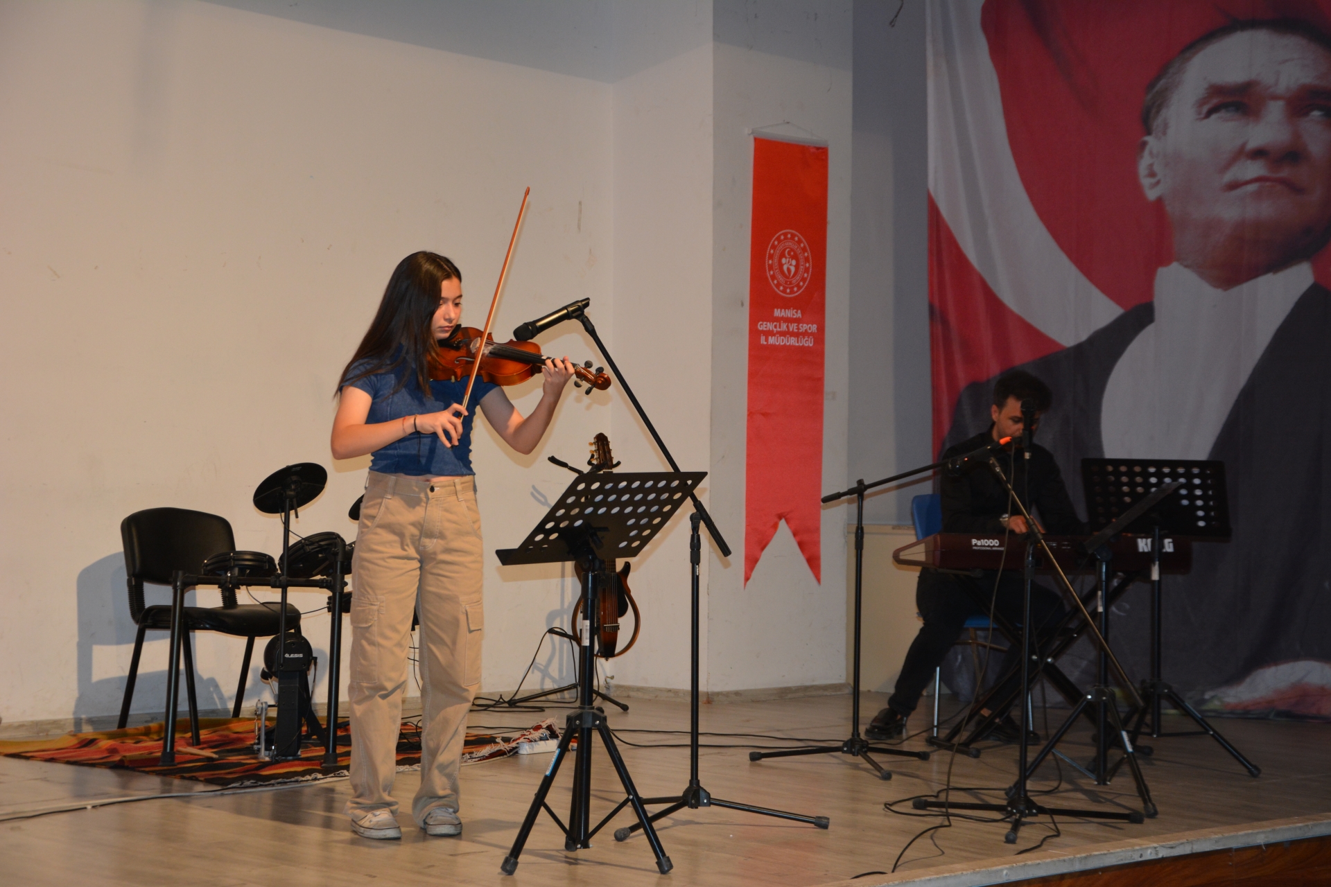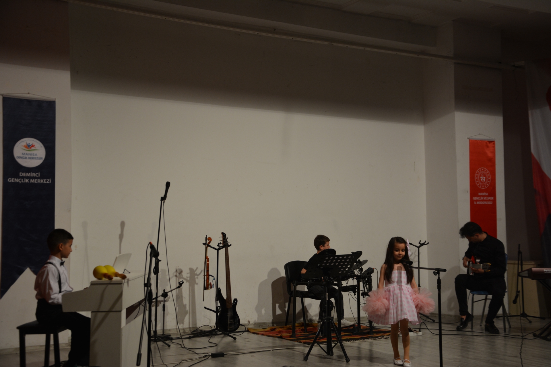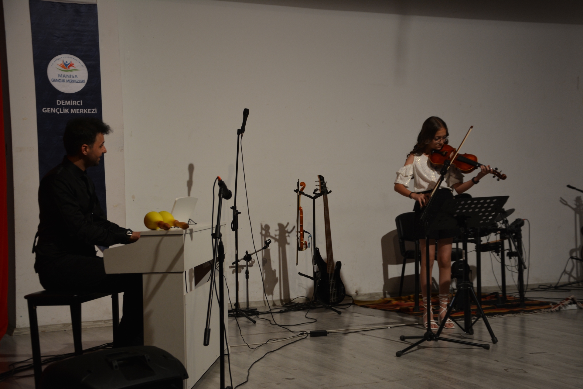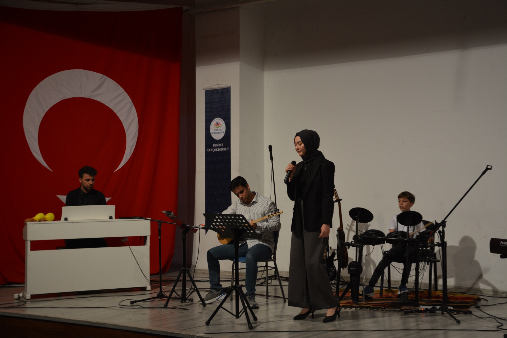 20 Mayıs 2024 – Pazartesi günü Mehmet Akif Ersoy Gençlik Merkezi konferans salonunda yapılan gençlik konserine Demirci Kaymakamı Âdem Kaya, eşi Halide Kaya, Belediye Başkanı Erkan Kara, İlçe Emniyet Müdürü Barış Kayar, Gençlik ve Spor ilçe Müdürü Bilal Yılmaz, İlçe Milli Eğitim Müdürü Bilal Çetinkaya, İlçe protokolü ve vatandaşlar katıldı.