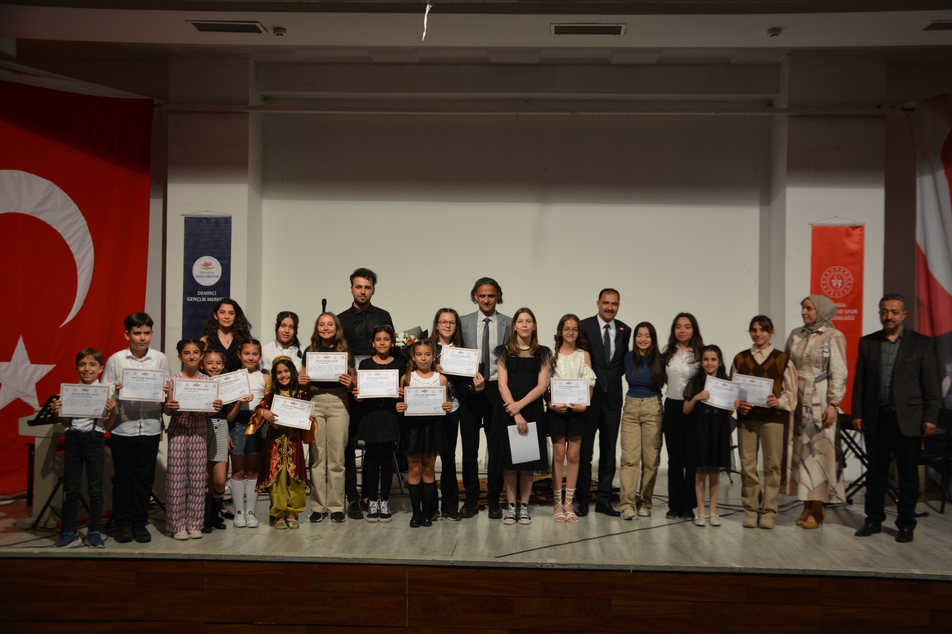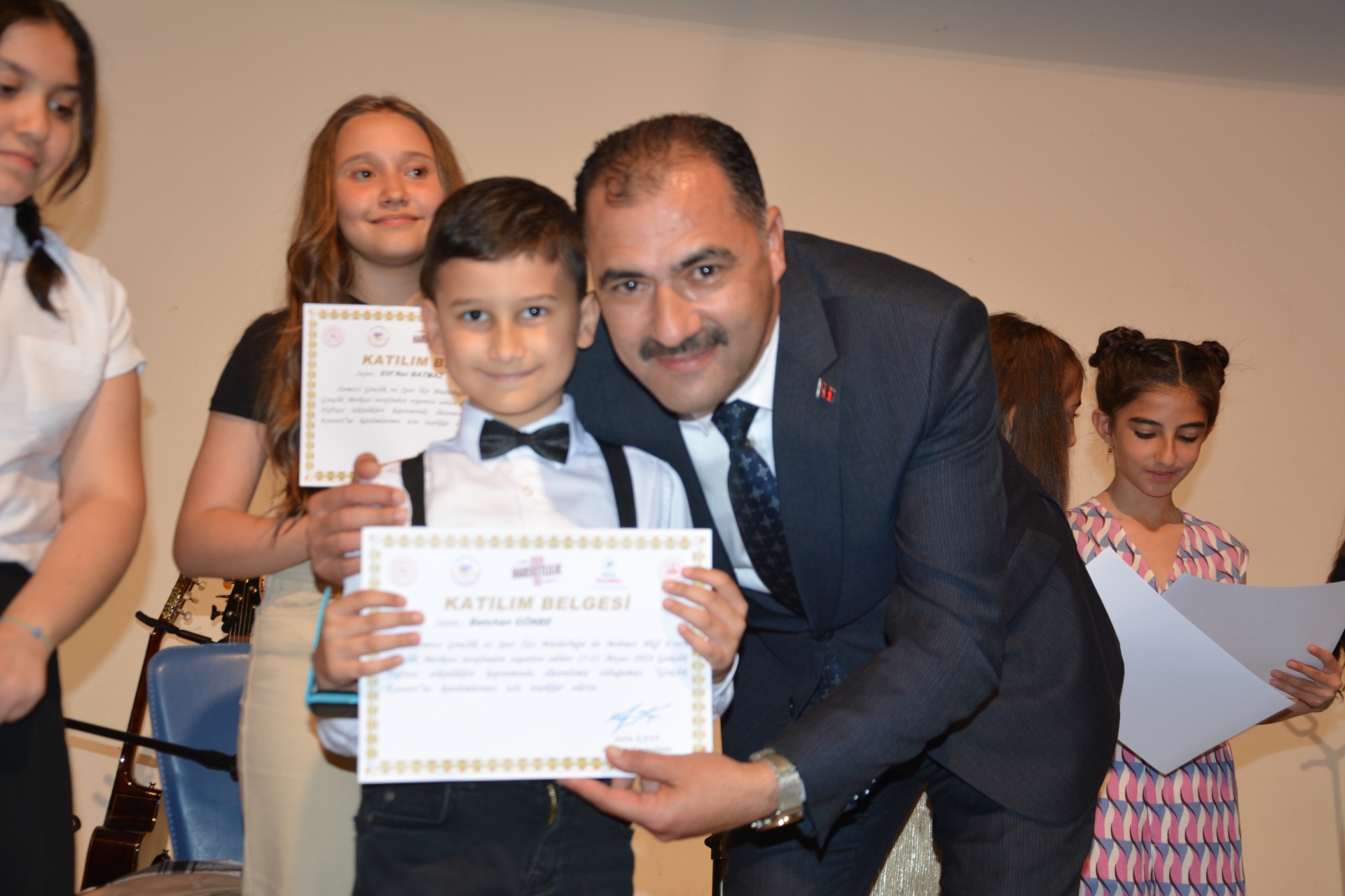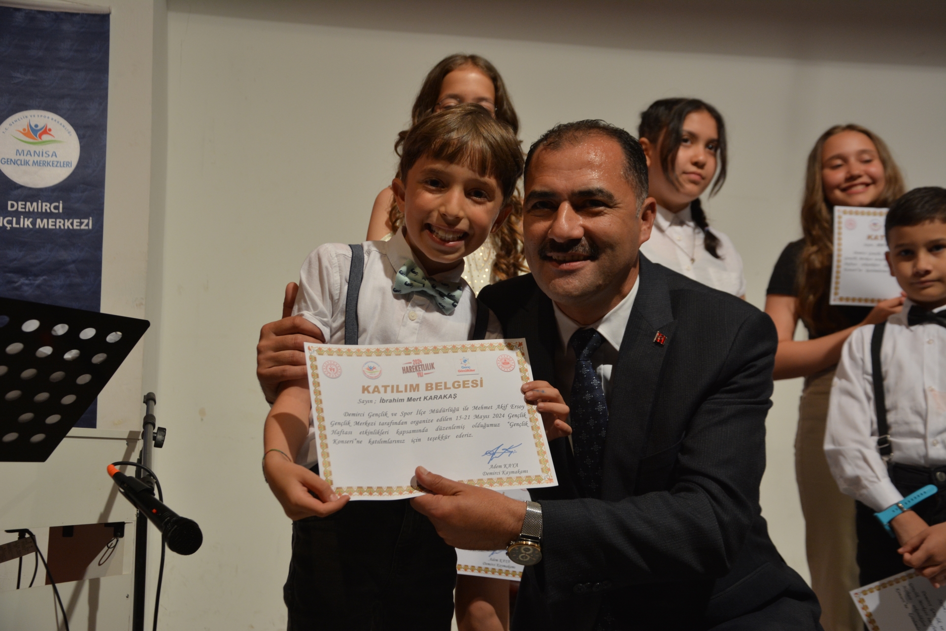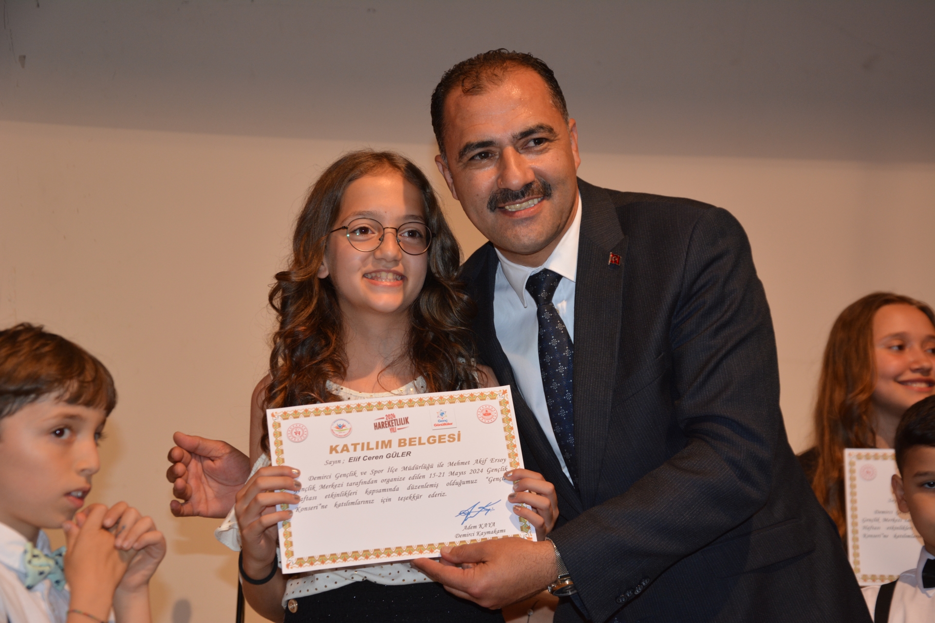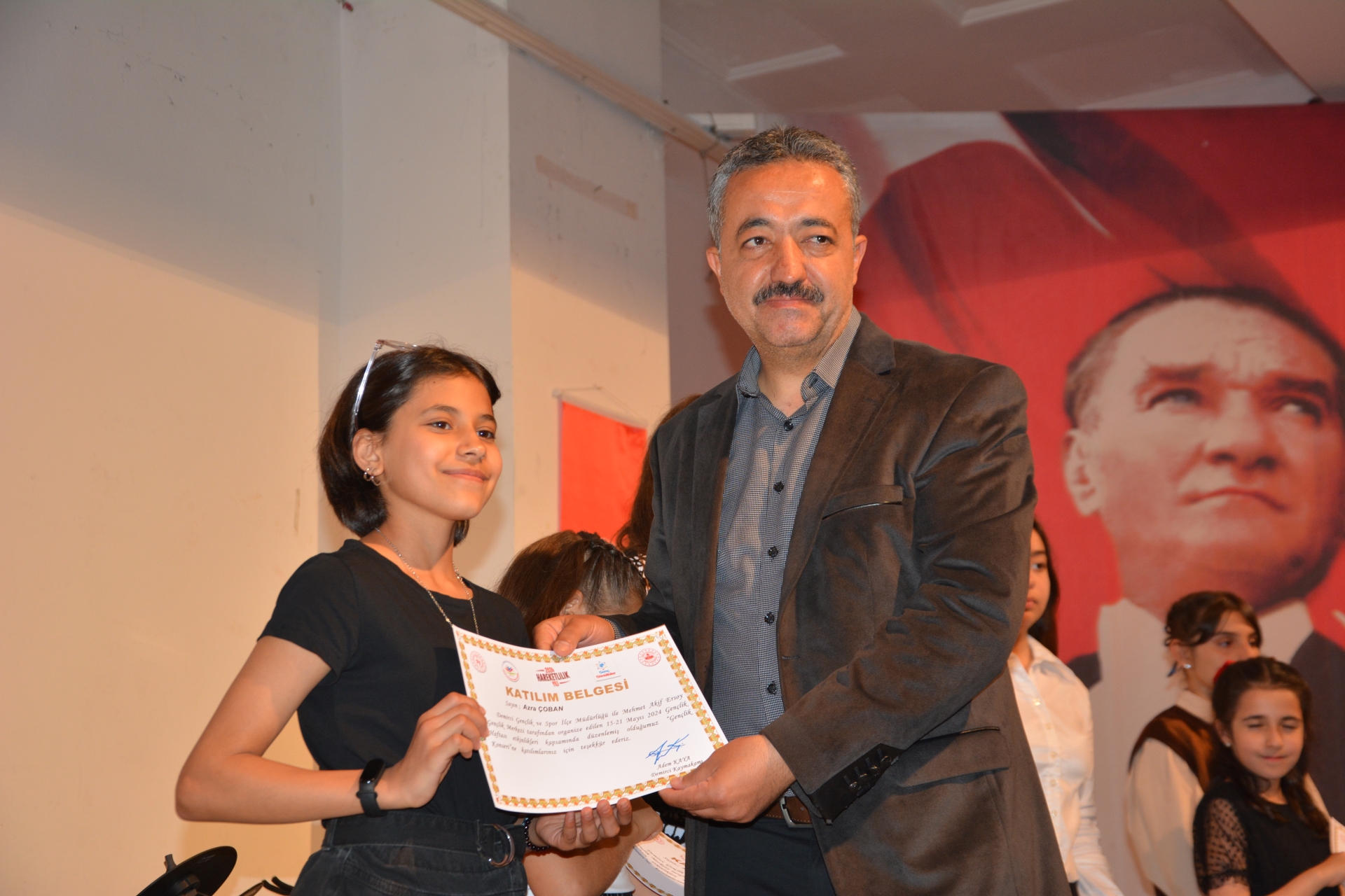 Programın sonunda Kaymakam Âdem Kaya ve Belediye Başkanı Erkan Kara konseri gerçekleştiren gençlere ve çocuklara katılımcı belgesi vererek tebrik ettiler.