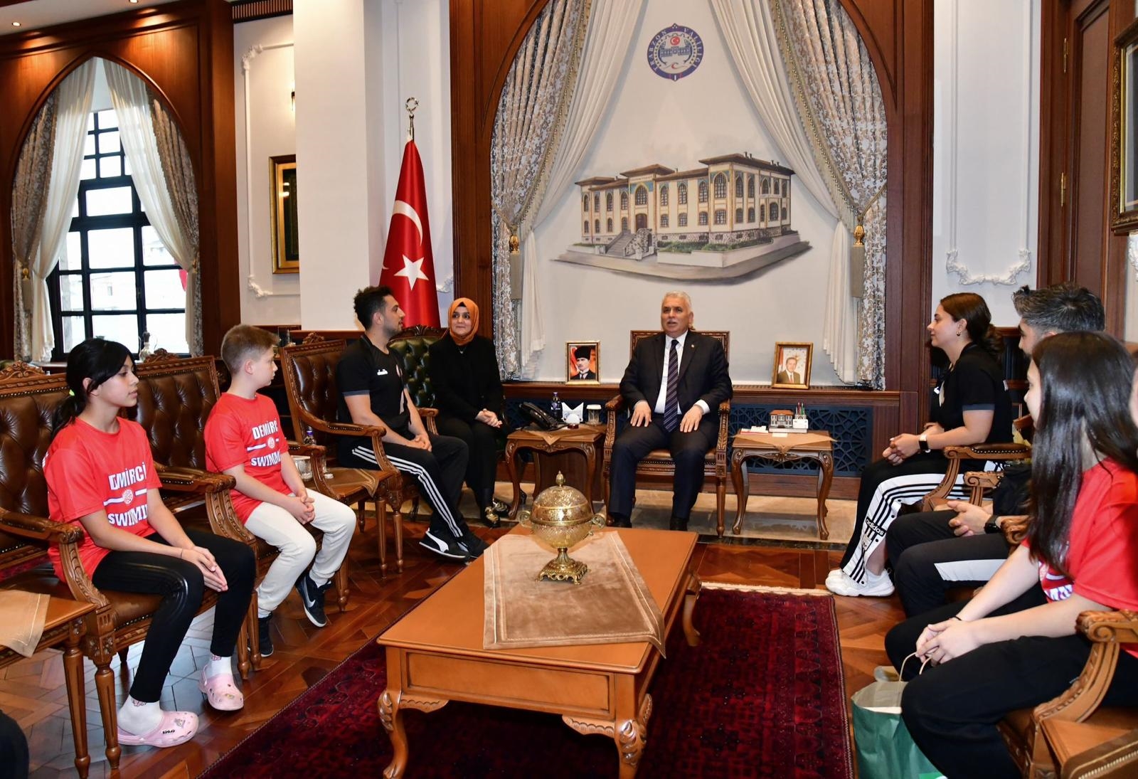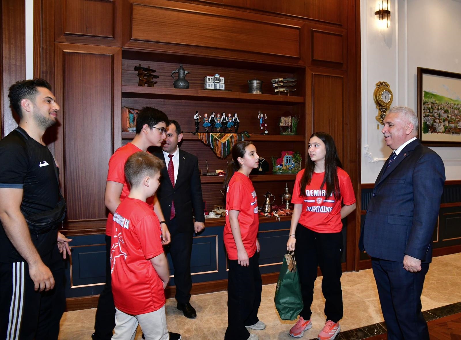 Belediye Başkanı Erkan Kara'da, Trabzon Valisi Aziz Yıldırım'a Demircili sporcuları makamında misafir ettiği için teşekkür ederek, sporcularımıza başarılar diledi.