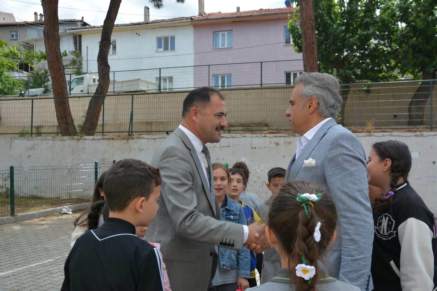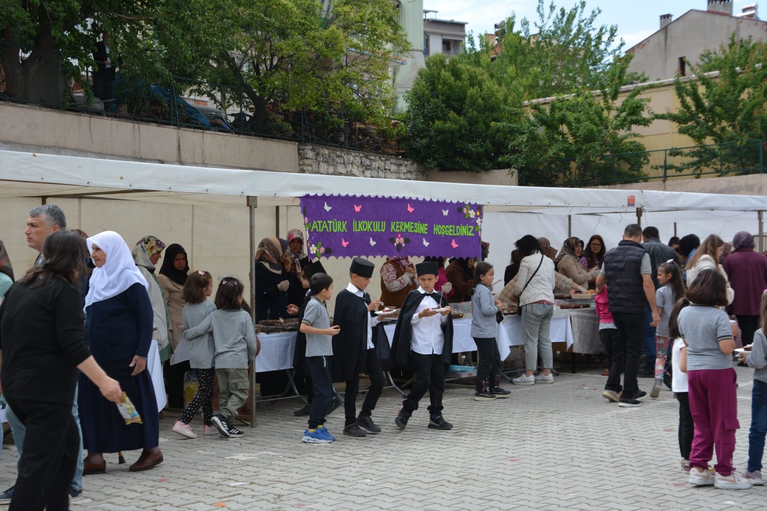 Okul bahçesinde gün boyu devam eden kermesi ziyaret eden Kaymakam Adem Kaya, Belediye Başkanı Erkan Kara ve İlçe Milli Eğitim Müdürü Bilal Çetinkaya'da öğrencilerin ve velilerin çalışmasına destek verdiler.