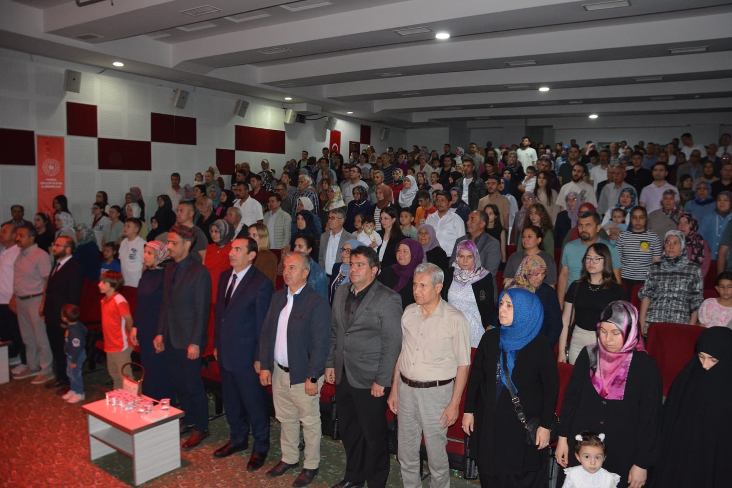 29 Mayıs 2024 / Çarşamba günü Mehmet Akif Ersoy Gençlik Merkezi konferans salonunda yapılan programa Demirci Kaymakamı Adem Kaya, eşi Halide Kaya, Belediye Başkan Yardımcısı İsmail Hakkı Gül, İlçe Milli Eğitim Müdürü Bilal Çetinkaya, İlçe kurum müdürleri, vatandaşlar ve aileler katıldı.