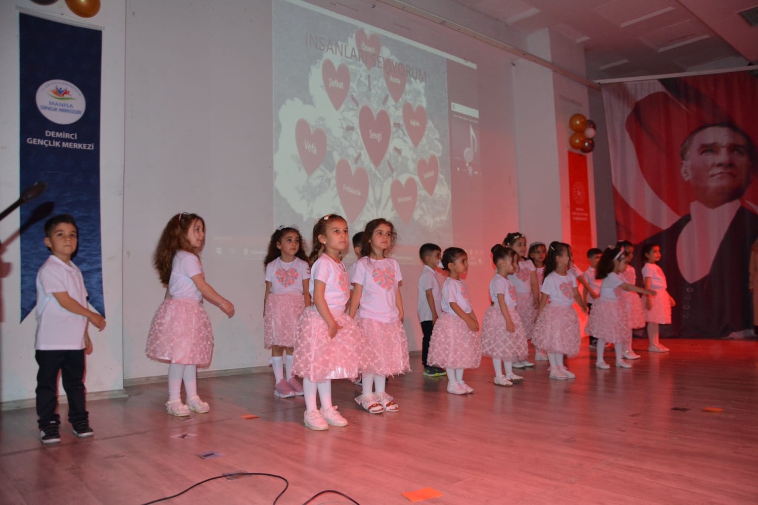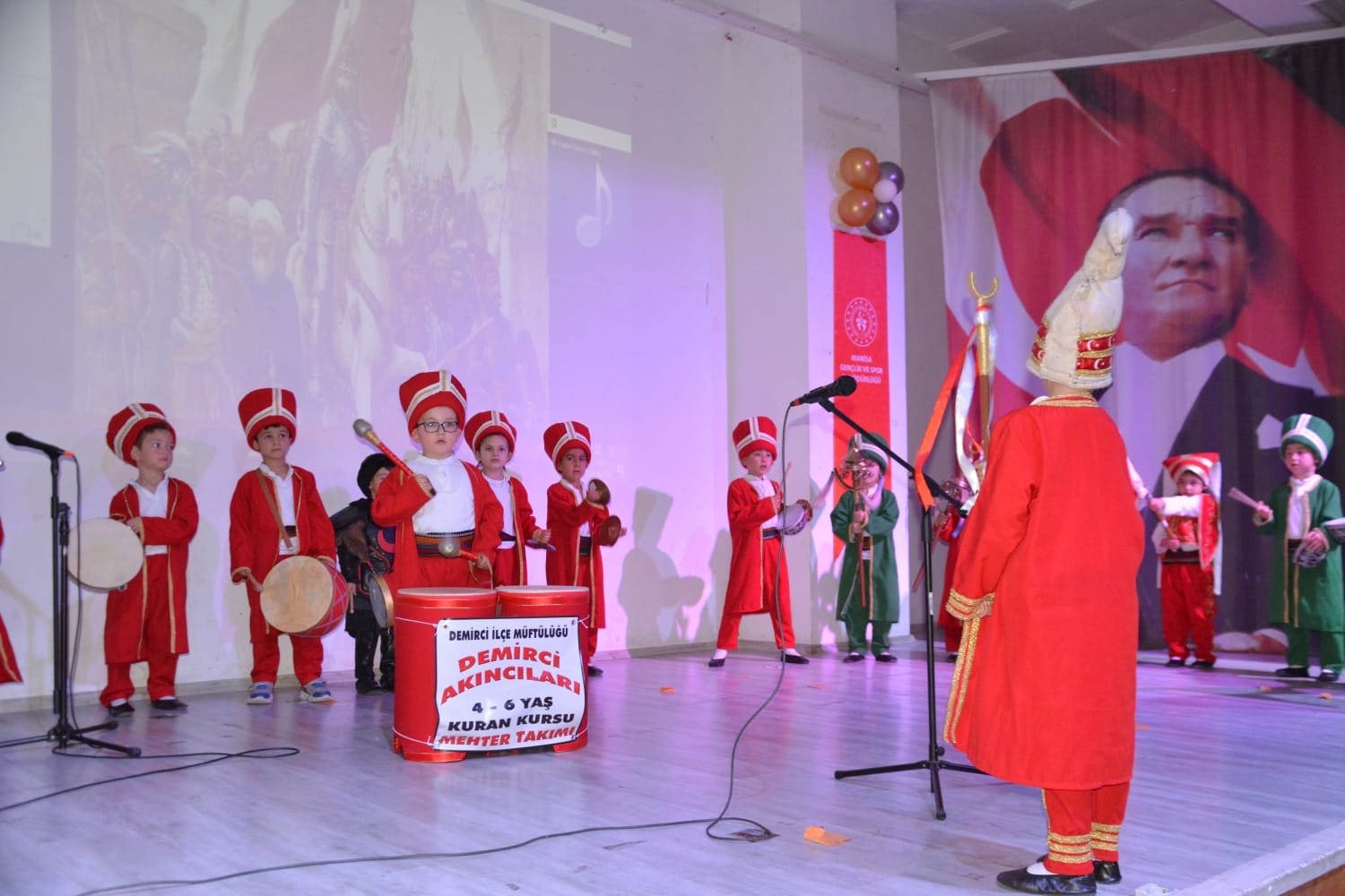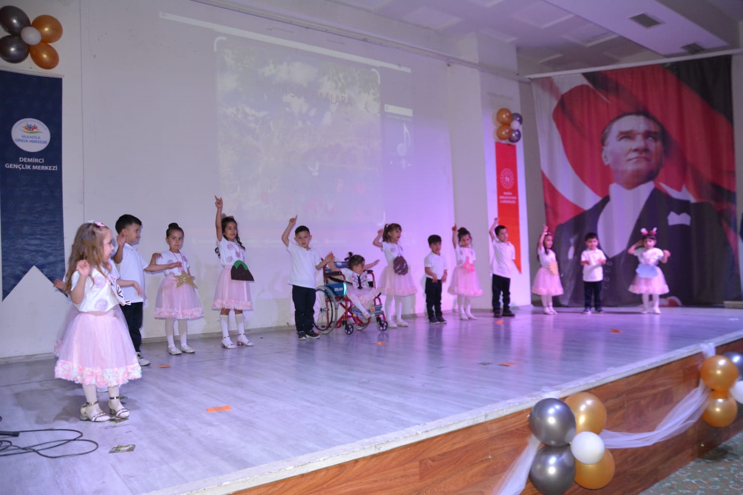 Demirci İlçe Müftülüğü organizasyonunda Demirci Akıncıları 4-6 yaş Kur'an Kursu'nun yıl sonu programı gerçekleştirildi.