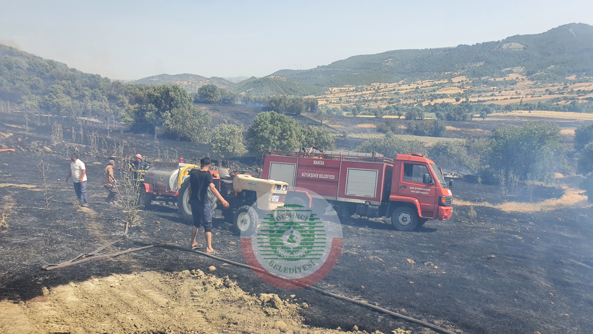 Vatandaşların ihbarı üzerine bölgeye Demirci Orman İşletme Müdürlüğü yangın söndürme ekipleri, Manisa Büyükşehir Belediyesi Demirci İtfaiye ekipleri ve Demirci Belediyesine ait su tankeri sevk edildi.