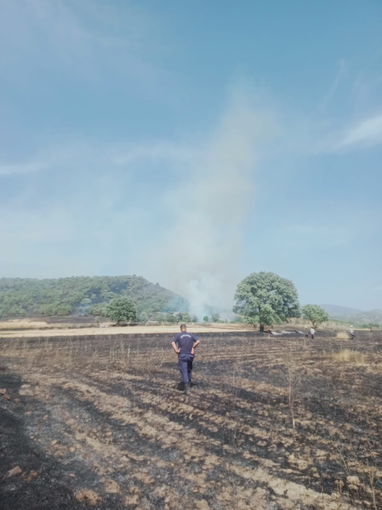 Yangında Kuzuköy mahallesine ait buğday arazilerinde ve kepez mevkiindeki meşe ormanı da zarar gördü.