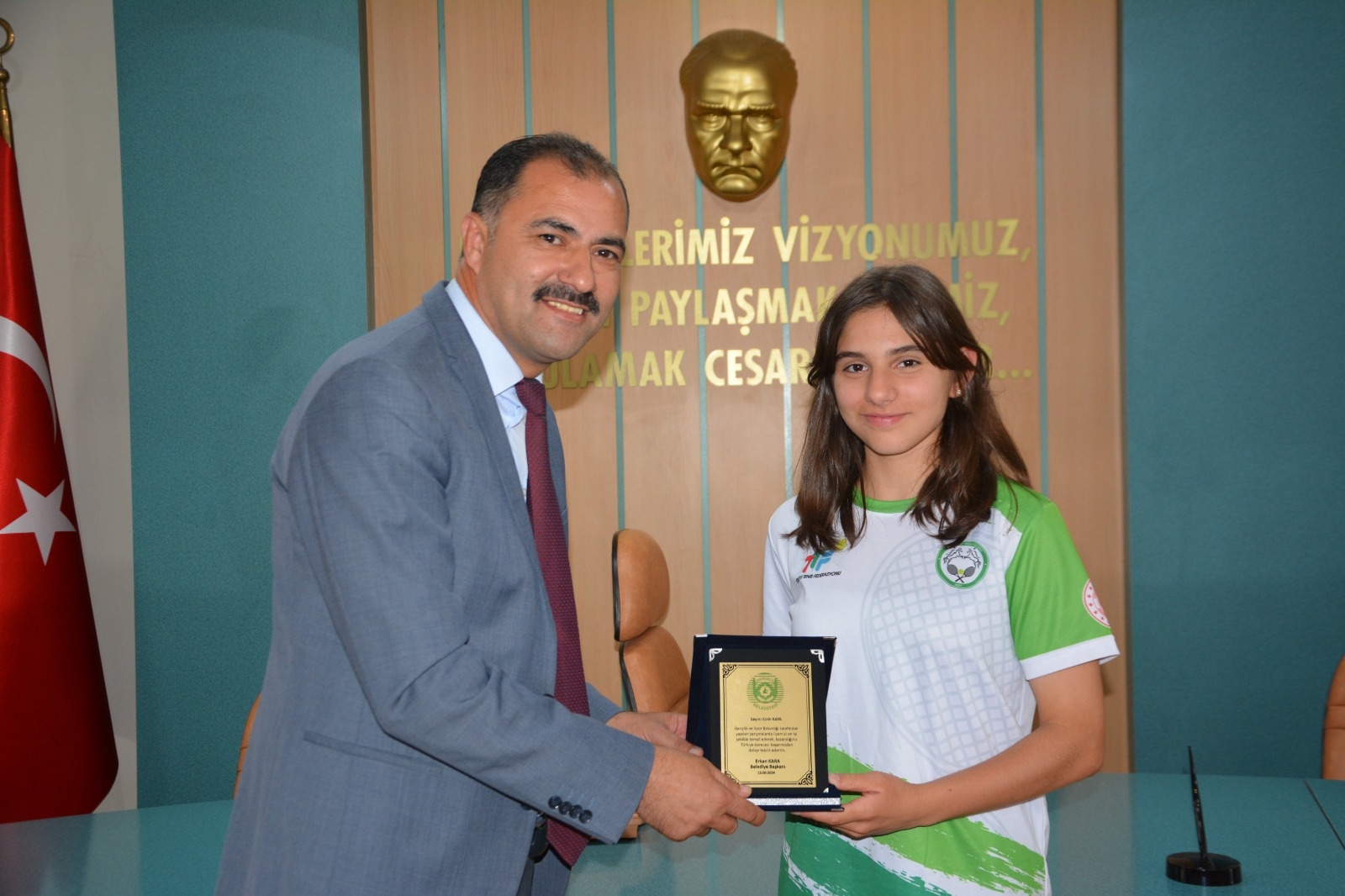 Belediye Başkanı Erkan Kara, spor müsabakalarında Türkiye derecesi alan gençleri ve öğrencileri ödüllendirdi.