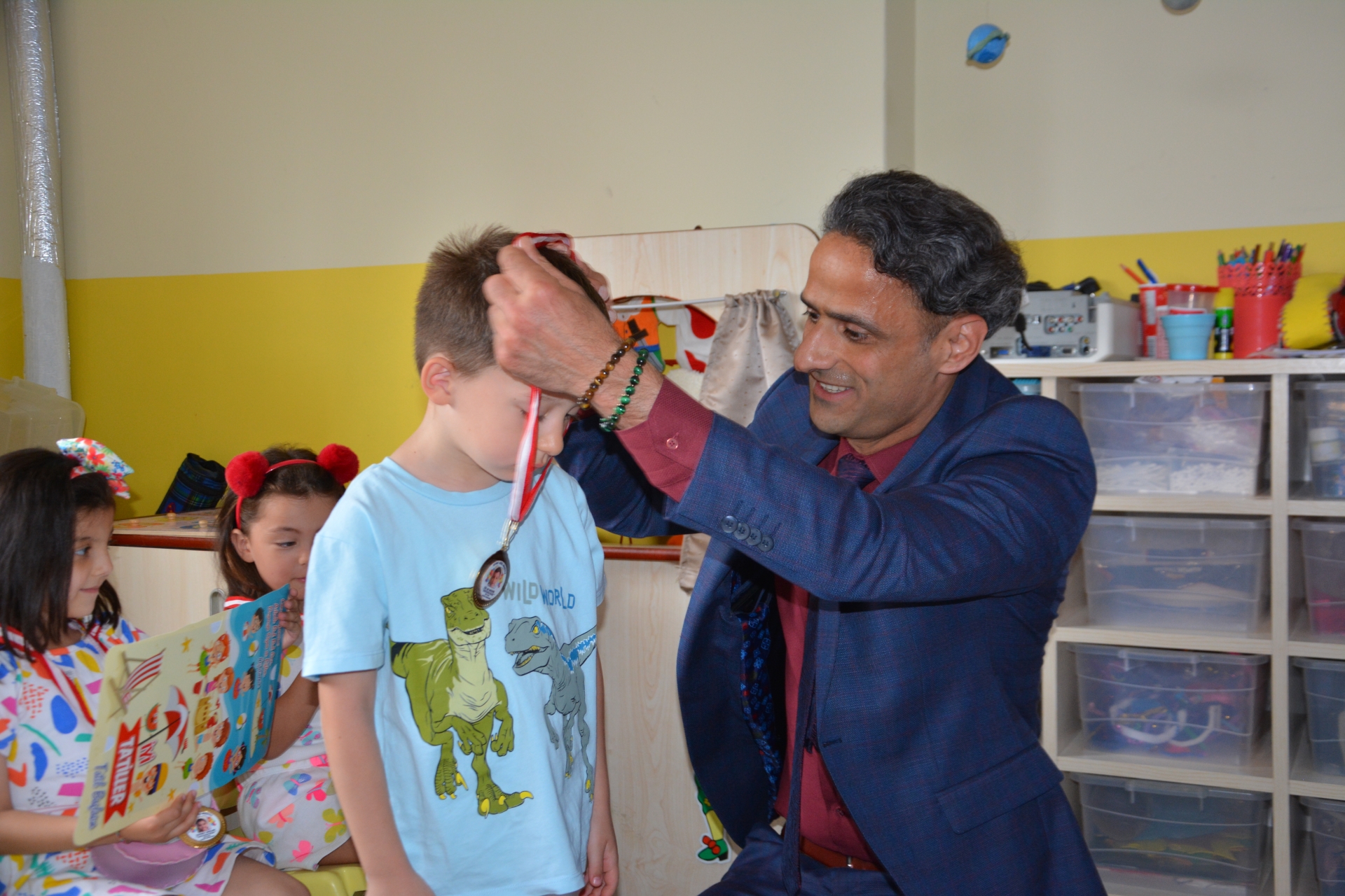 Öğrencilerin yakın ilgisi ile karşılaşan Başkan Erkan Kara, öğrencilere karnelerini verirken, iyi tatiller temennisinde bulundu.