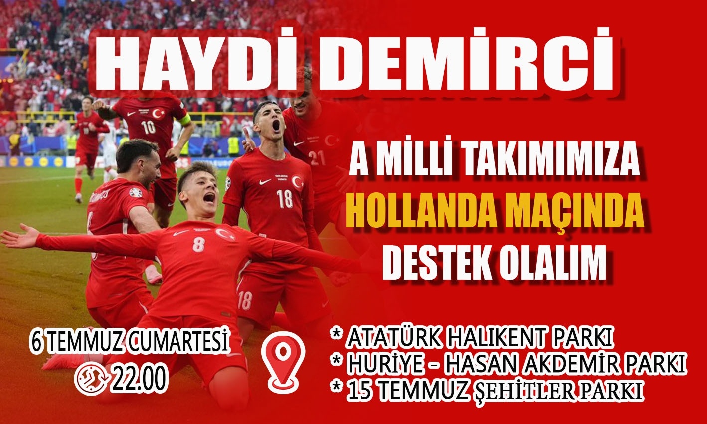 Demirci Belediyesi olarak milli maç heyecanı yine ilçemizdeki 3 parkta yaşanacak.