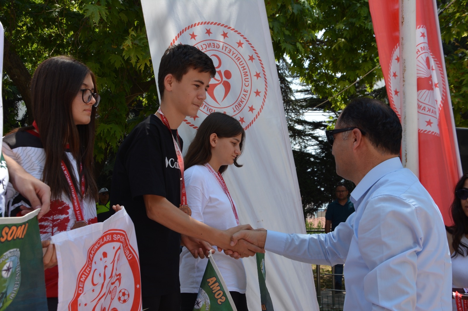 Konuşmaların ardından Kaymakamımız Adem Kaya, Belediye Başkanımız Erkan Kara ve Gençlik ve Spor İlçe Müdürü Bilal Yılmaz tarafından dereceye giren sporculara madalyaları takdim edildi.