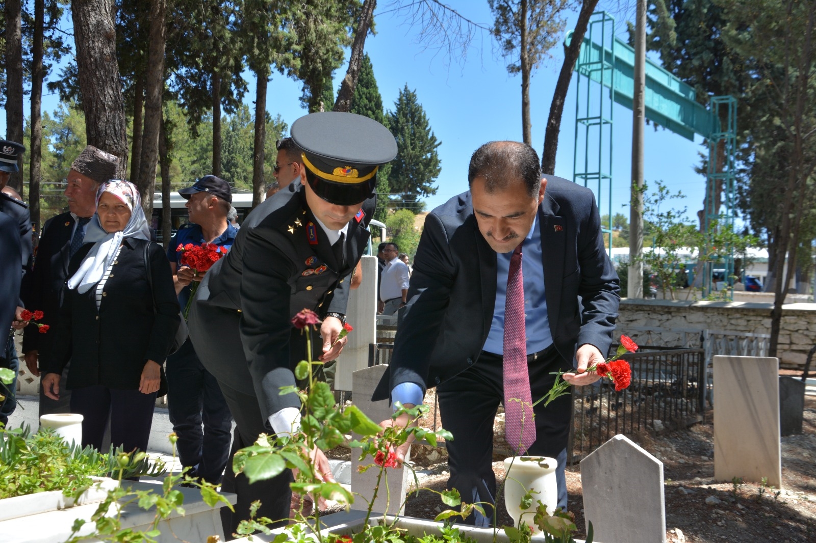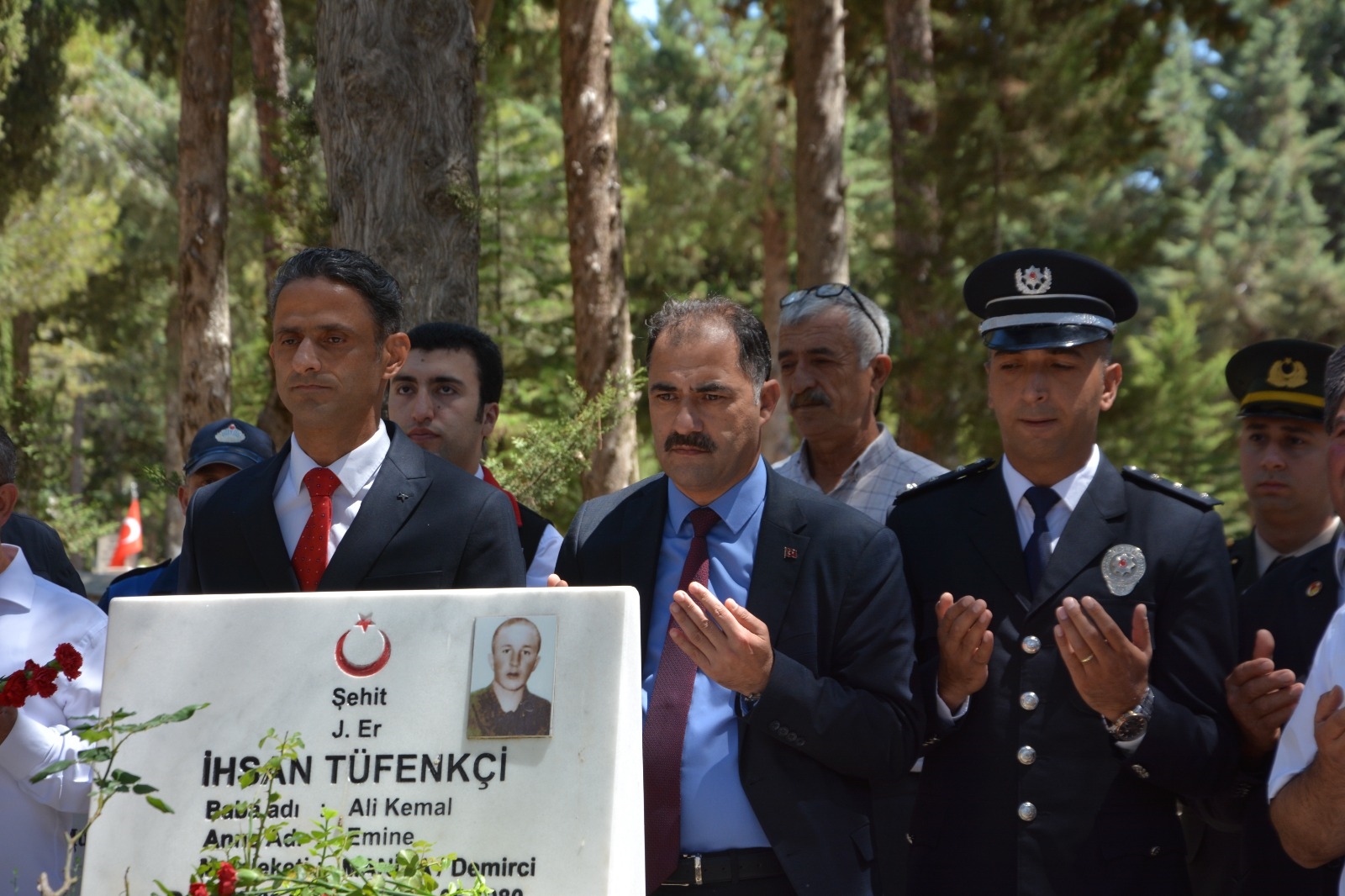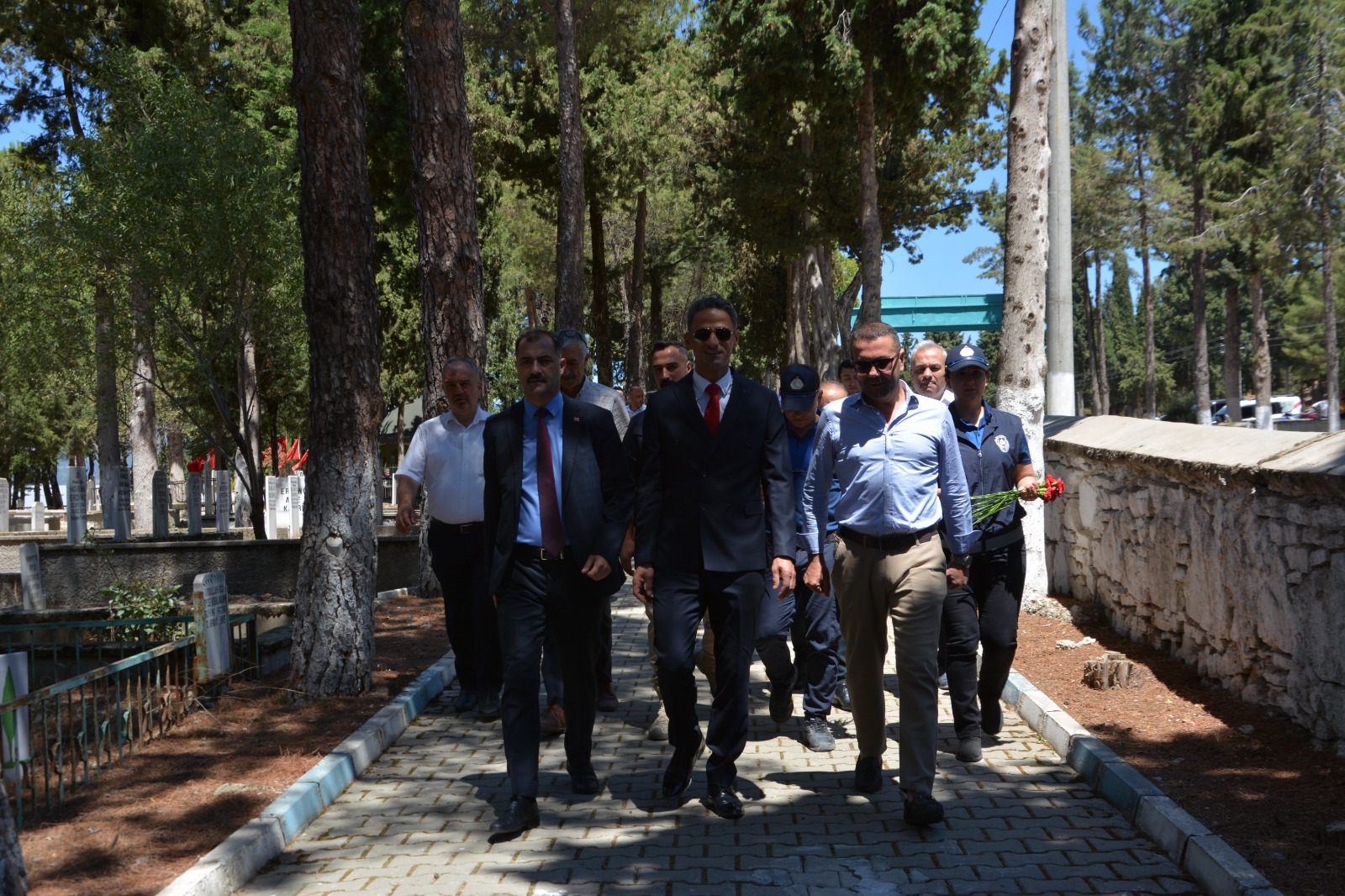 Demirci'de programlar çerçevesinde ilk olarak Kaymakamımız Adem Kaya, Belediye Başkanımız Erkan Kara, İlçe Protokolü, Şehit Yakınları ve Gaziler Şehit kabirlerini ziyaret ettiler.