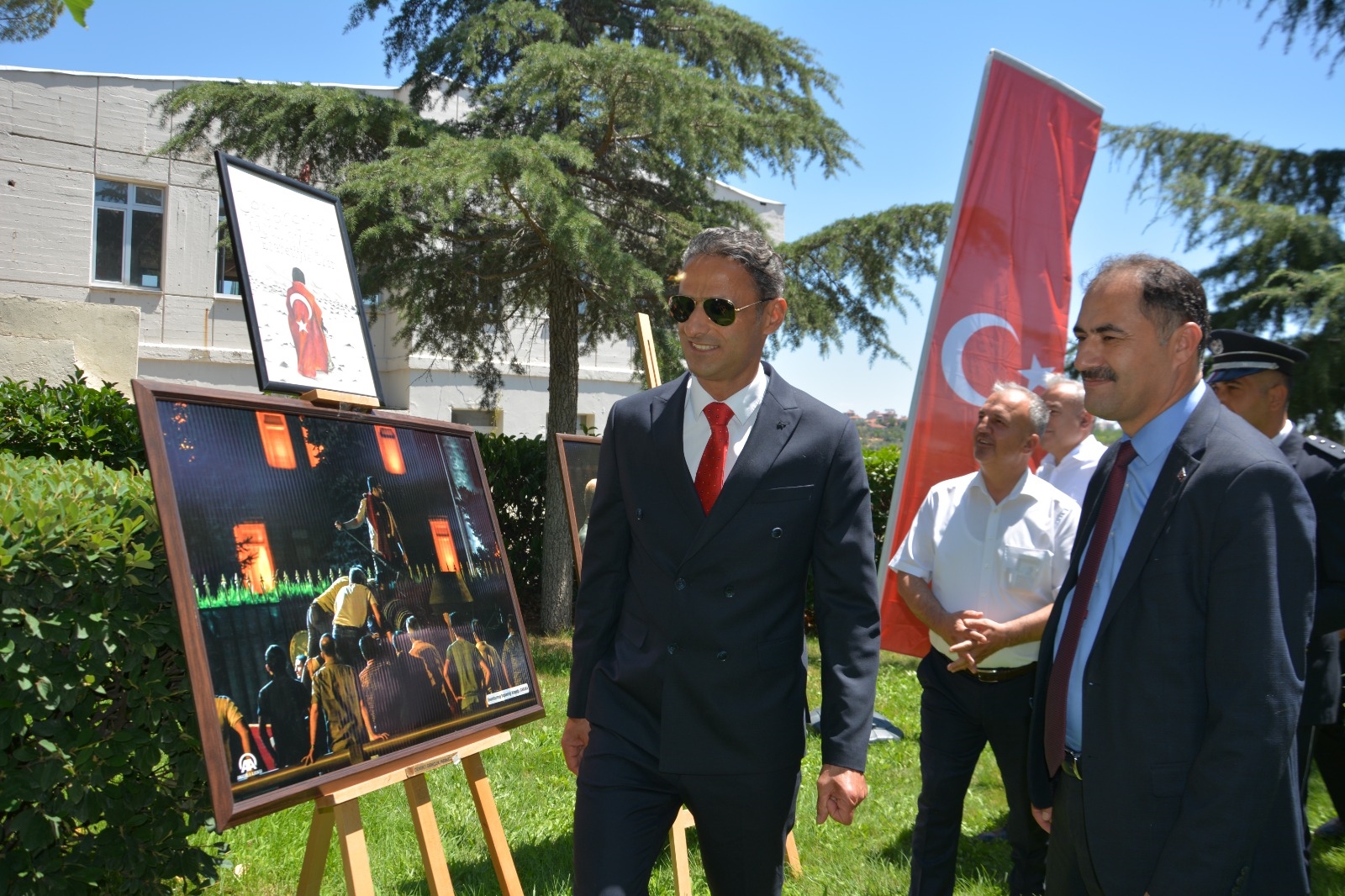 Namazın ardından 15 Temmuz Demokrasi ve Şehitler Meydanı belediye hizmet binası bahçesinde AA Fotoğraflarıyla 15 Temmuz ve Halk Eğitimi Merkezi tarafından hazırlanan resim sergisinin açılışı yapıldı.